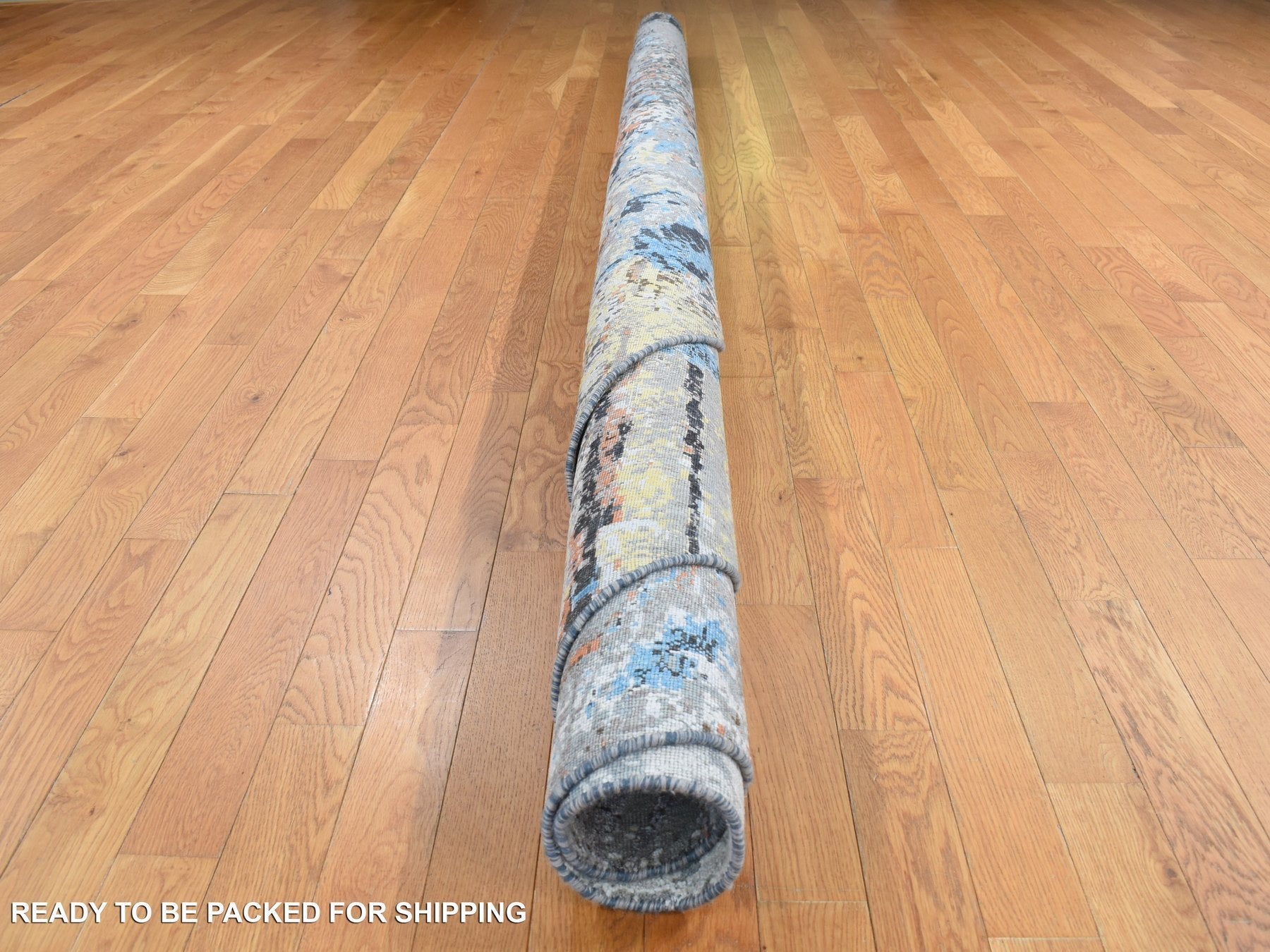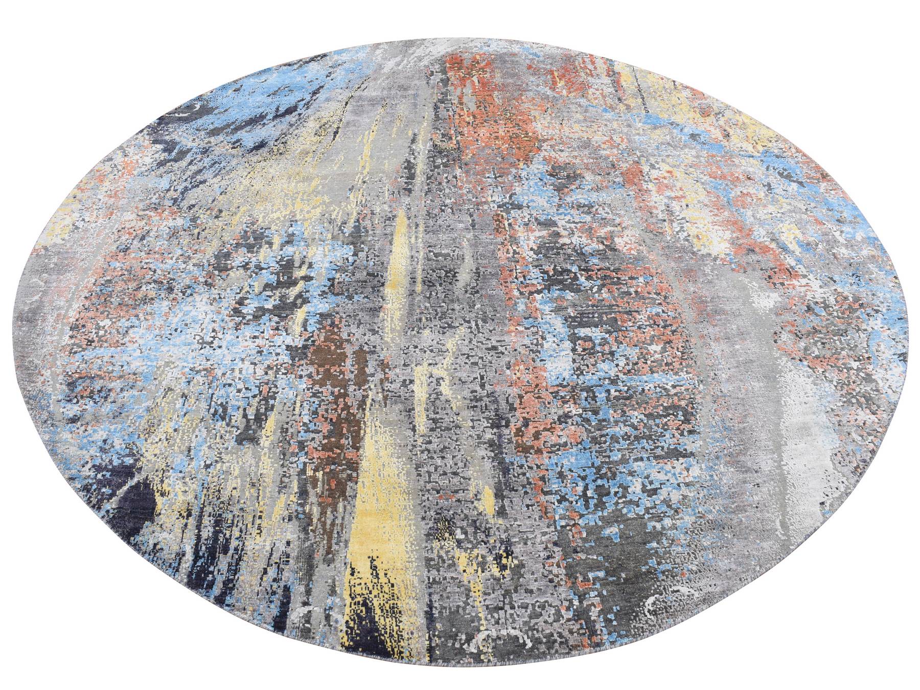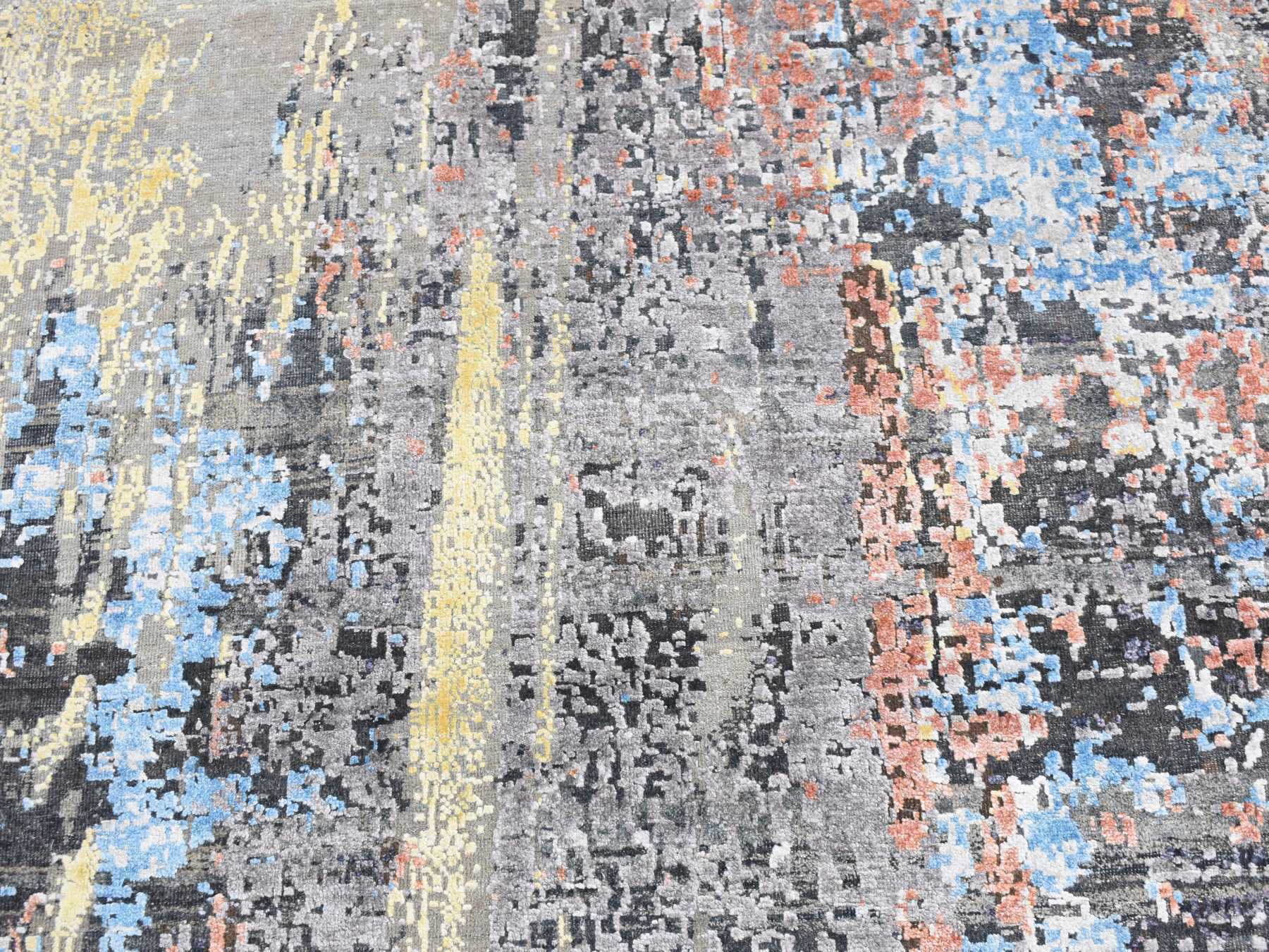 10'1" x 10'1" New Hand Knotted Grey Wool & Silk Round Oriental Rug - MOA10287739