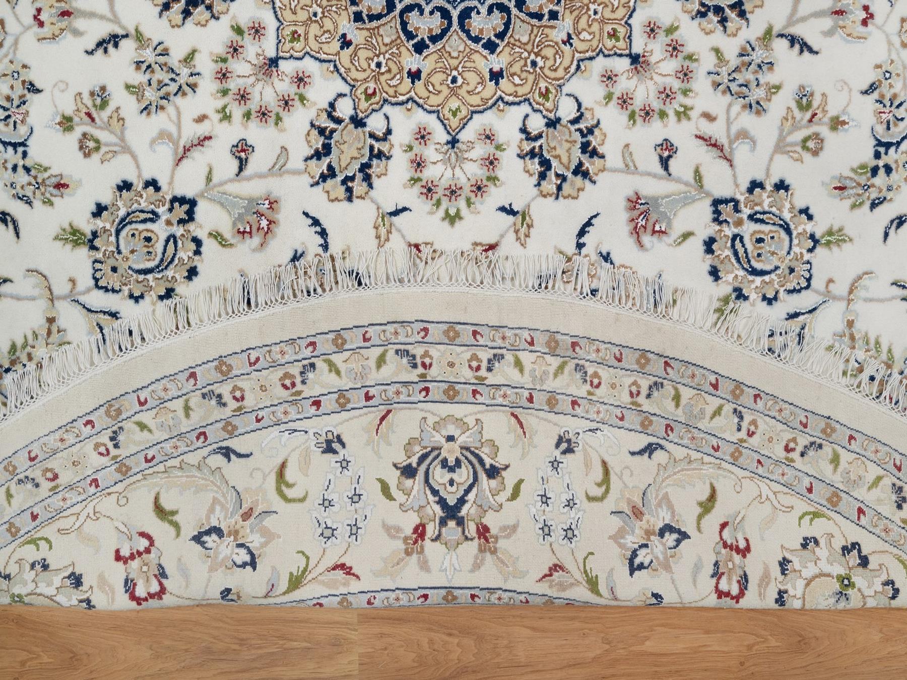9'10" x 9'10" New Hand Knotted Ivory Wool & Silk Round Oriental Rug - MOA10291624