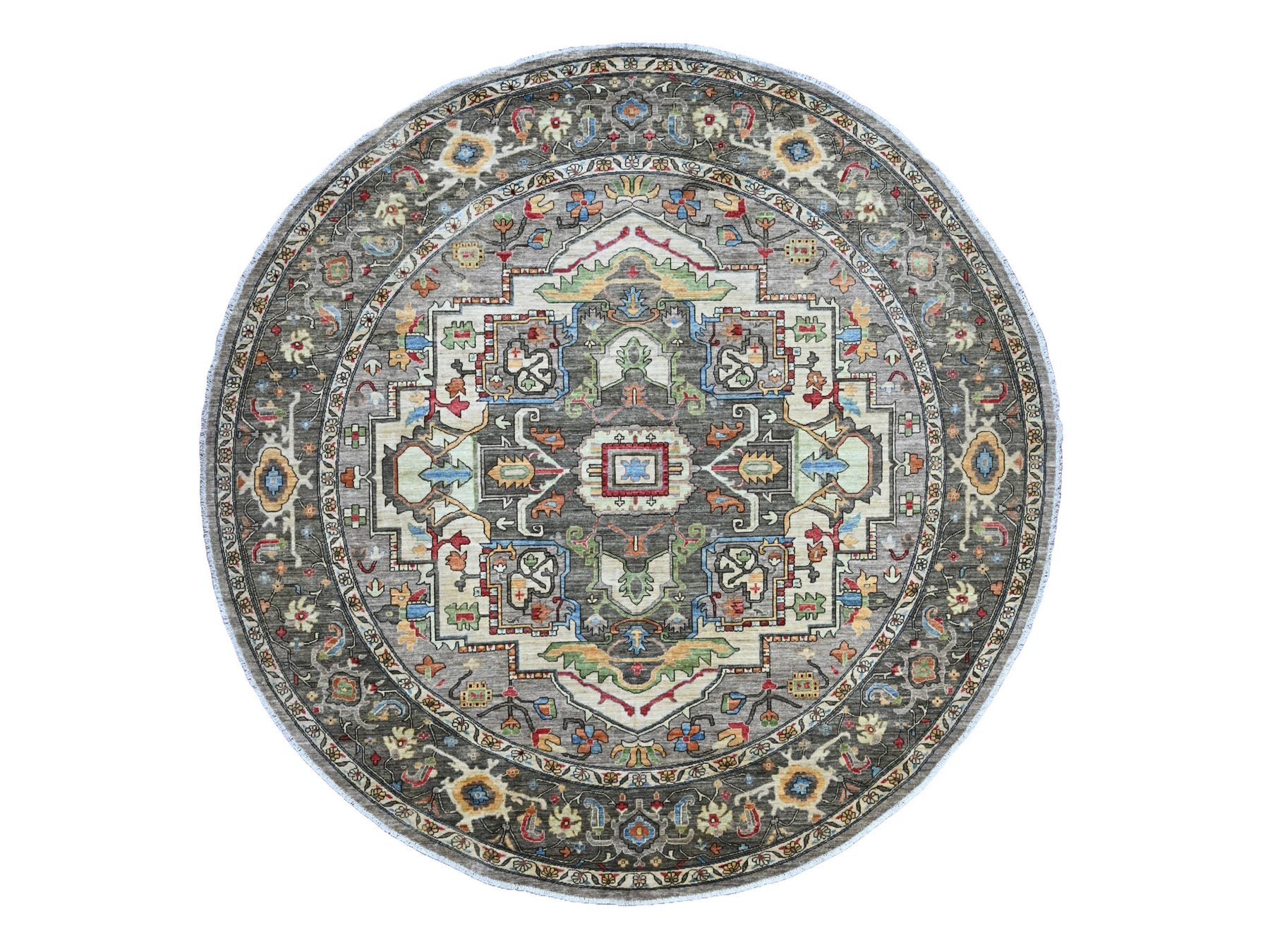 9'11" x 9'11" New Hand Knotted Grey Wool Round Oriental Rug - MOA10289800