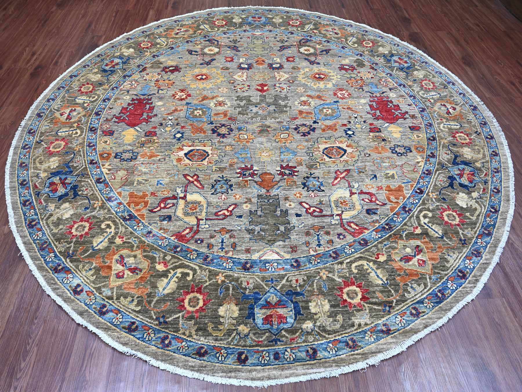 9'11" x 9'11" New Hand Knotted Grey Wool Round Oriental Rug - MOA10289984