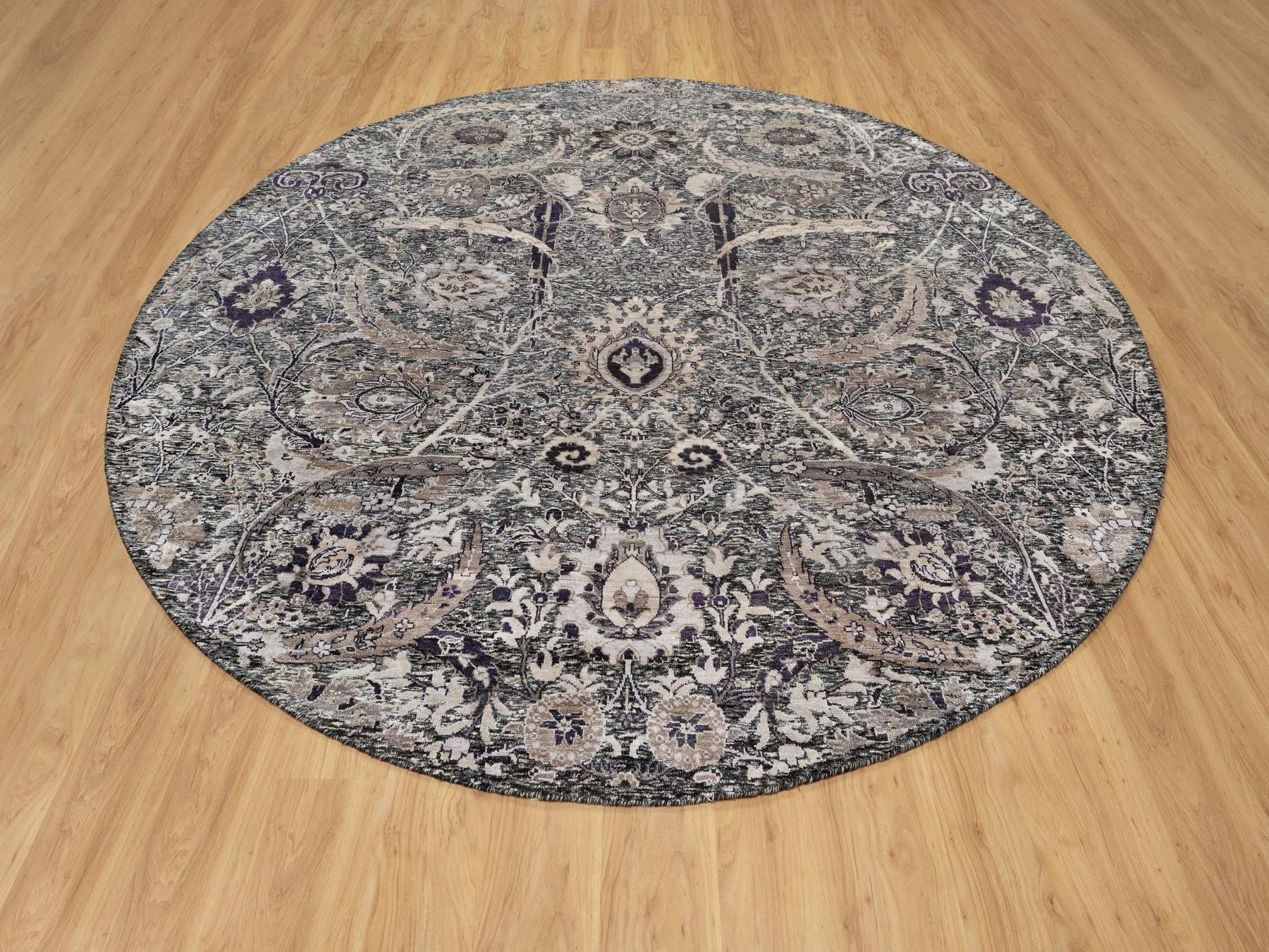 9'6" x 9'6" New Hand Knotted Brown Wool & Silk Round Oriental Rug - MOA10290958