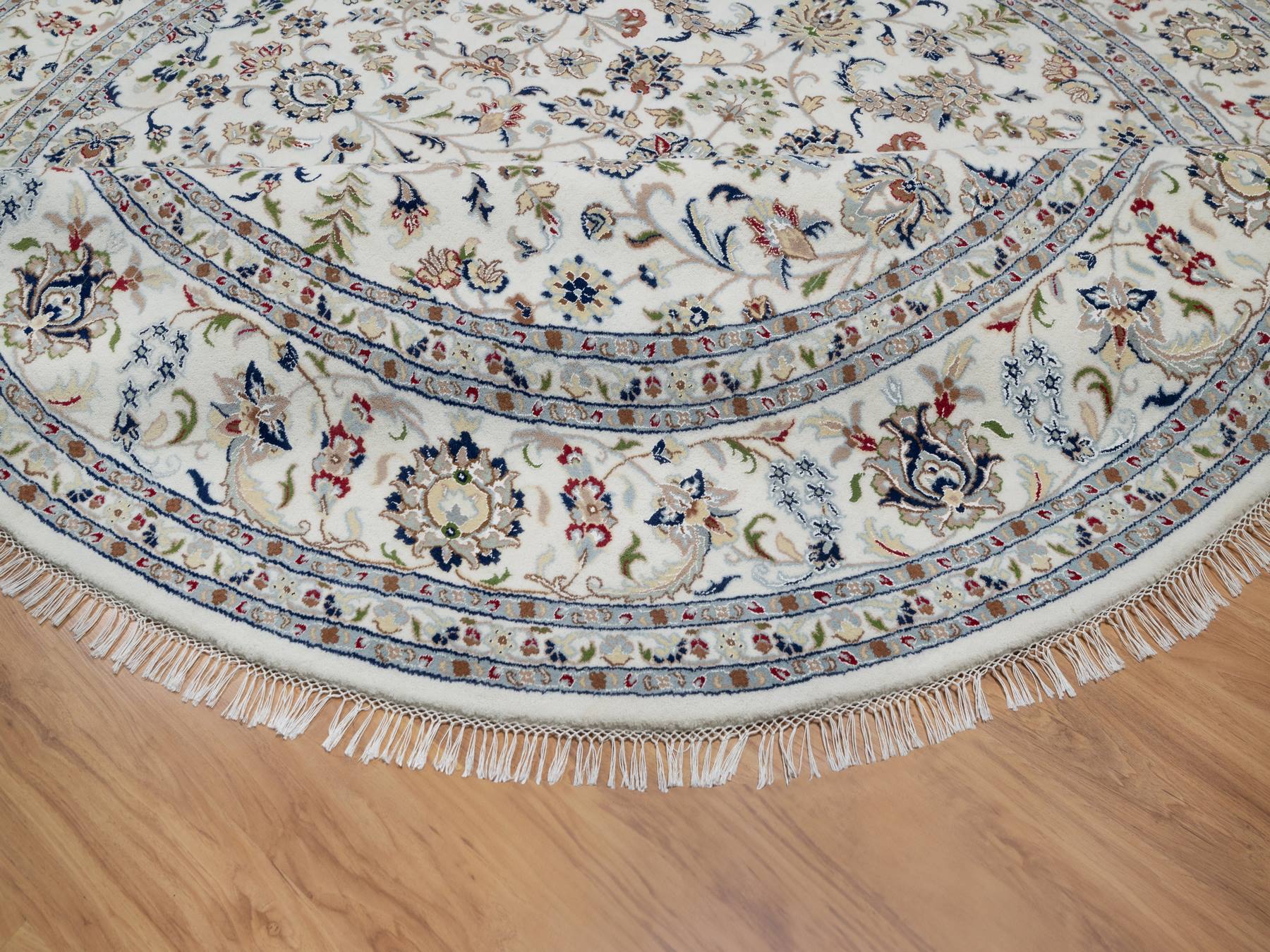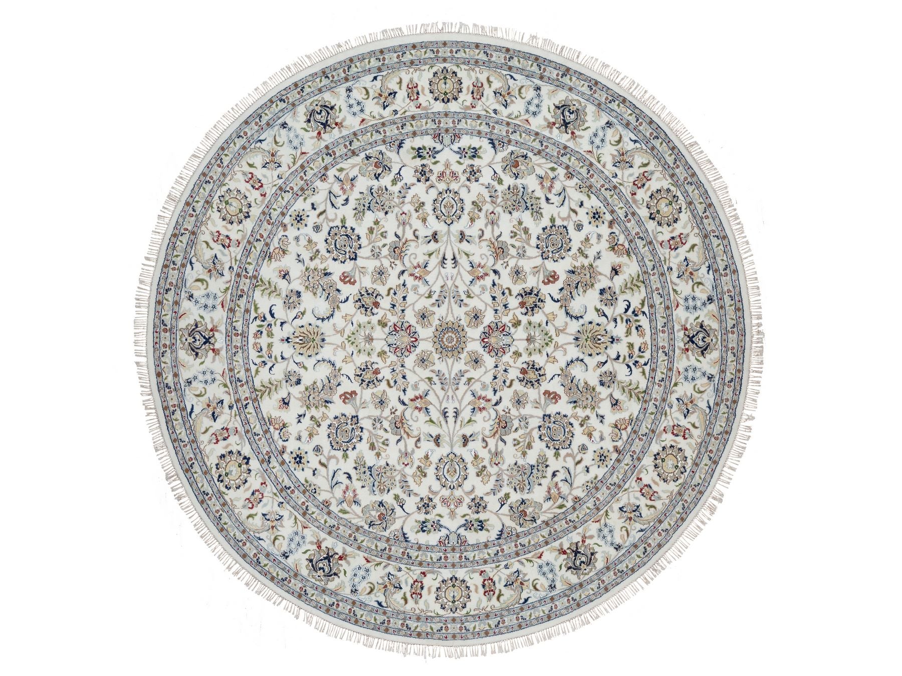 9'8" x 9'8" New Hand Knotted Ivory Wool & Silk Round Oriental Rug - MOA10291075