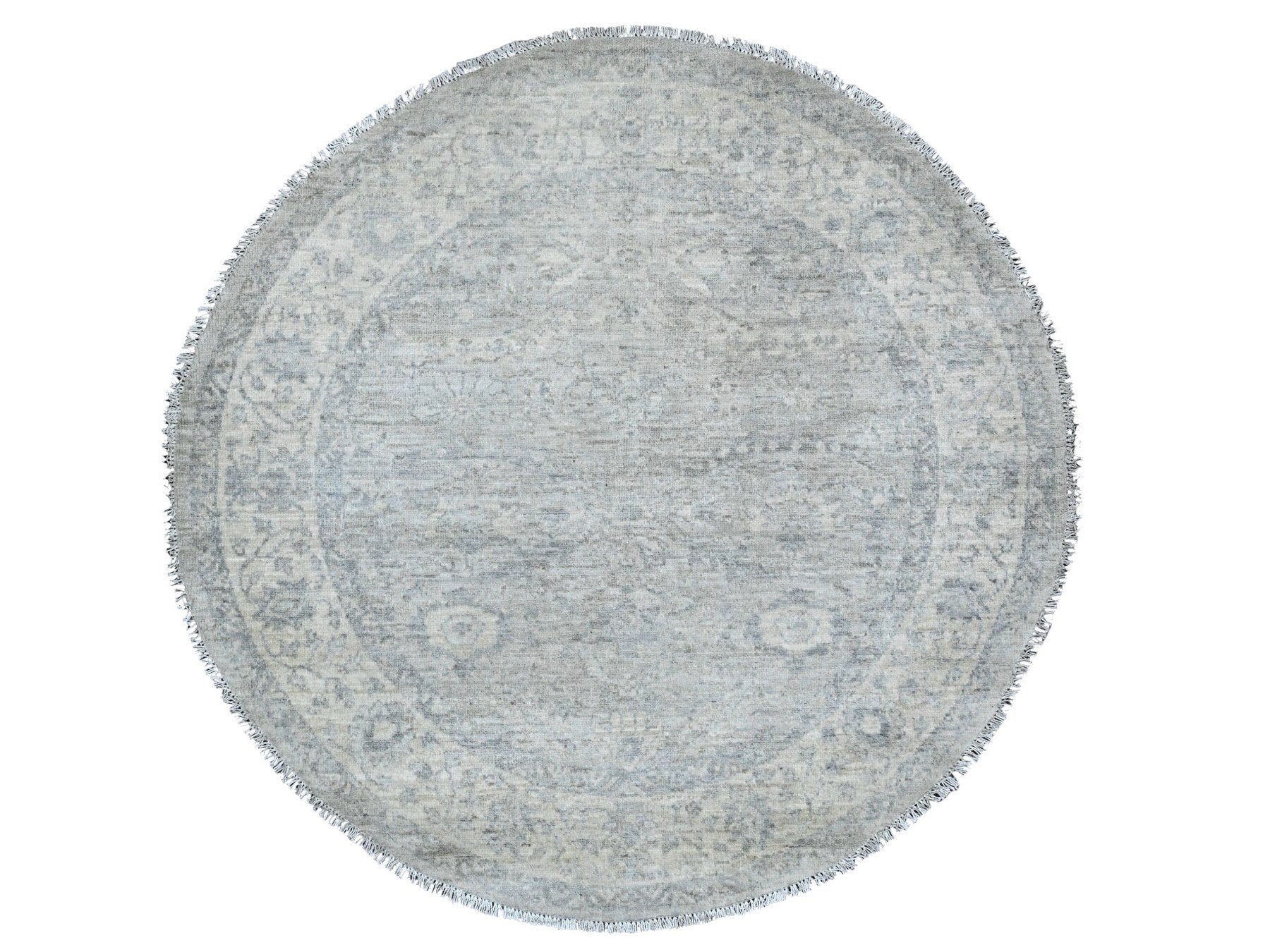 3'11" x 4'0" New Hand Knotted Grey Wool Round Oriental Rug - MOA10289998