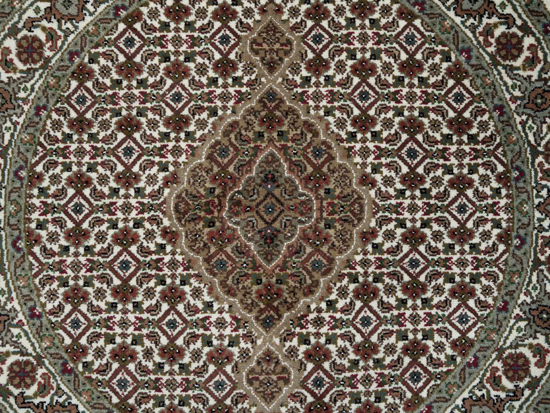 3'4" x 3'4" New Hand Knotted Ivory Wool Round Oriental Rug - MOA10265788