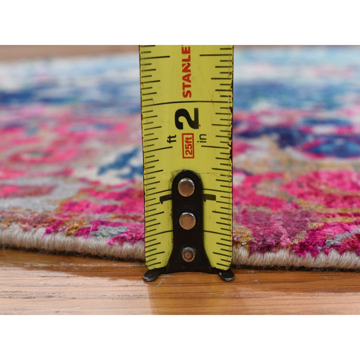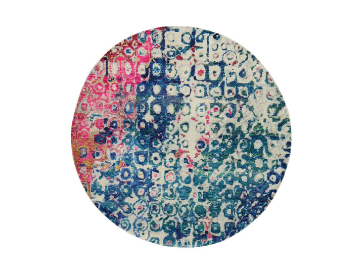 4'0" x 4'0" New Hand Knotted Blue Sari Silk Round Oriental Rug - MOA10278182
