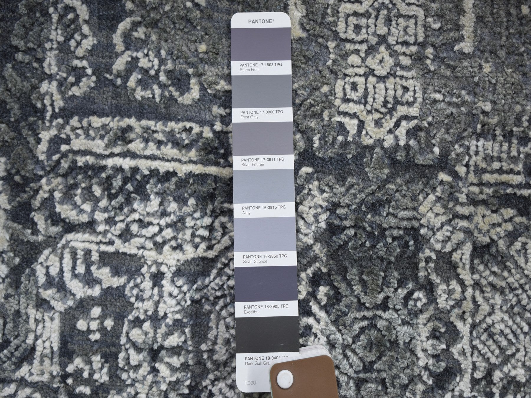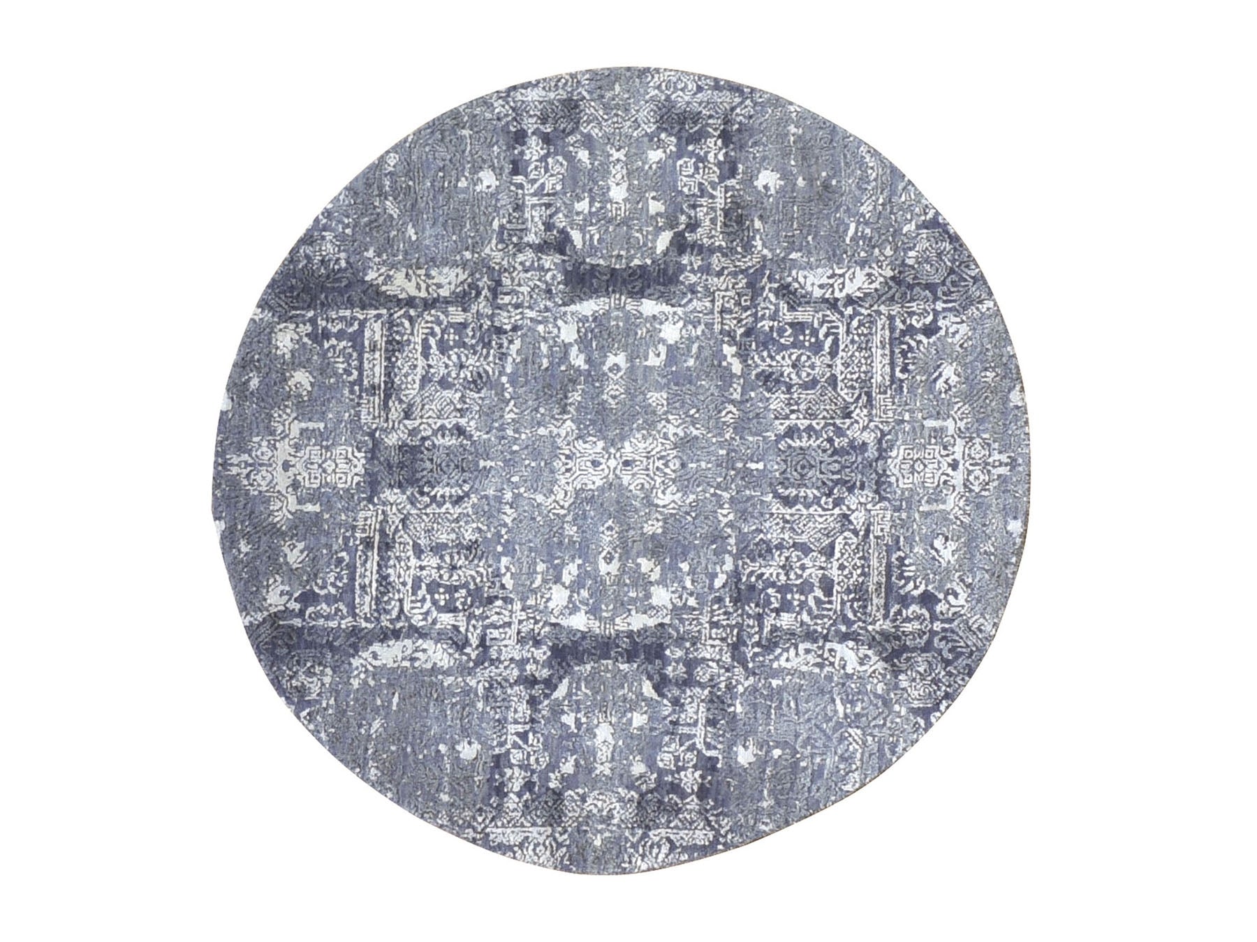 4'0" x 4'0" New Hand Knotted Grey Wool & Silk Round Oriental Rug - MOA10259025