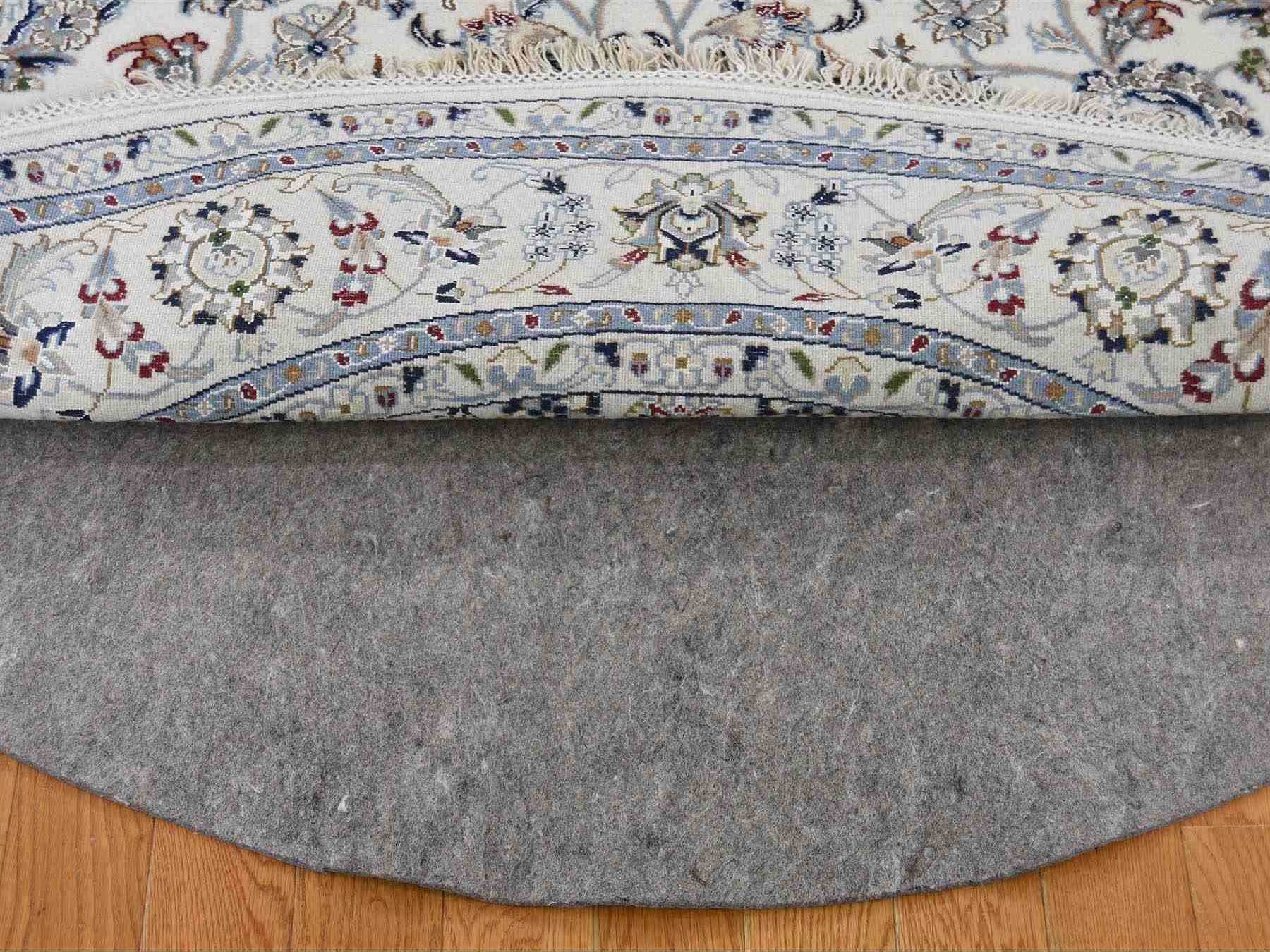 4'2" x 4'2" New Hand Knotted Ivory Wool & Silk Round Oriental Rug - MOA10259413
