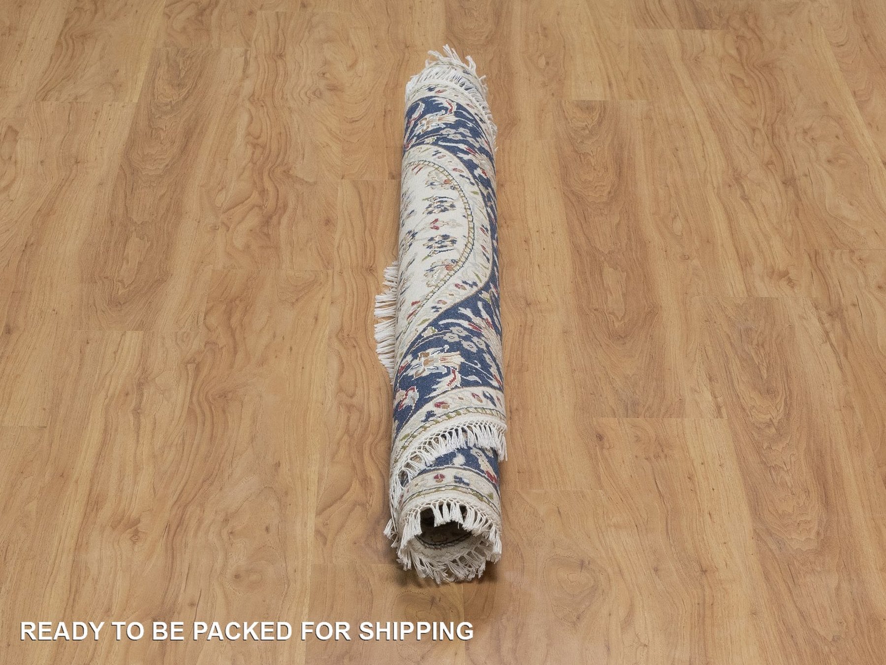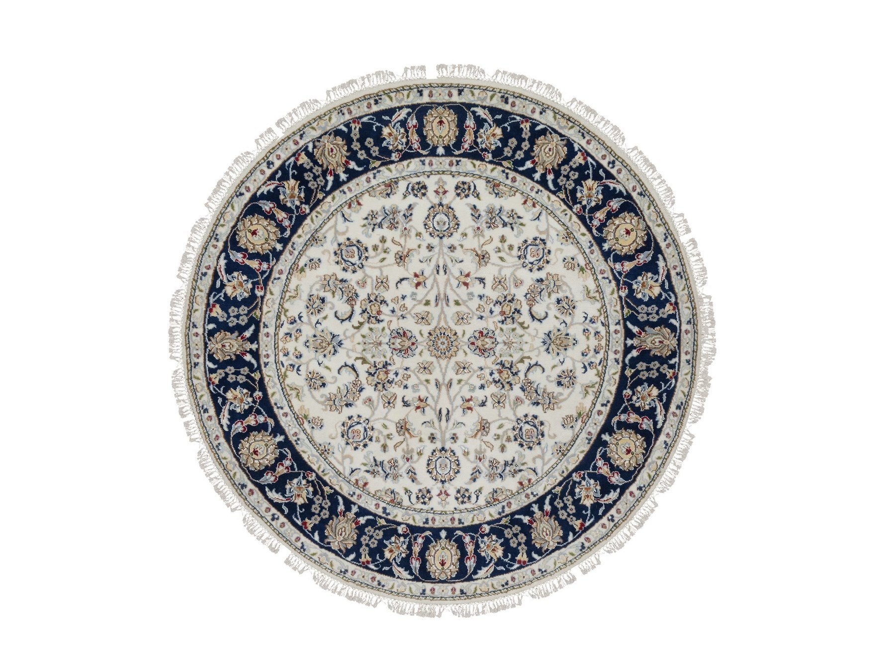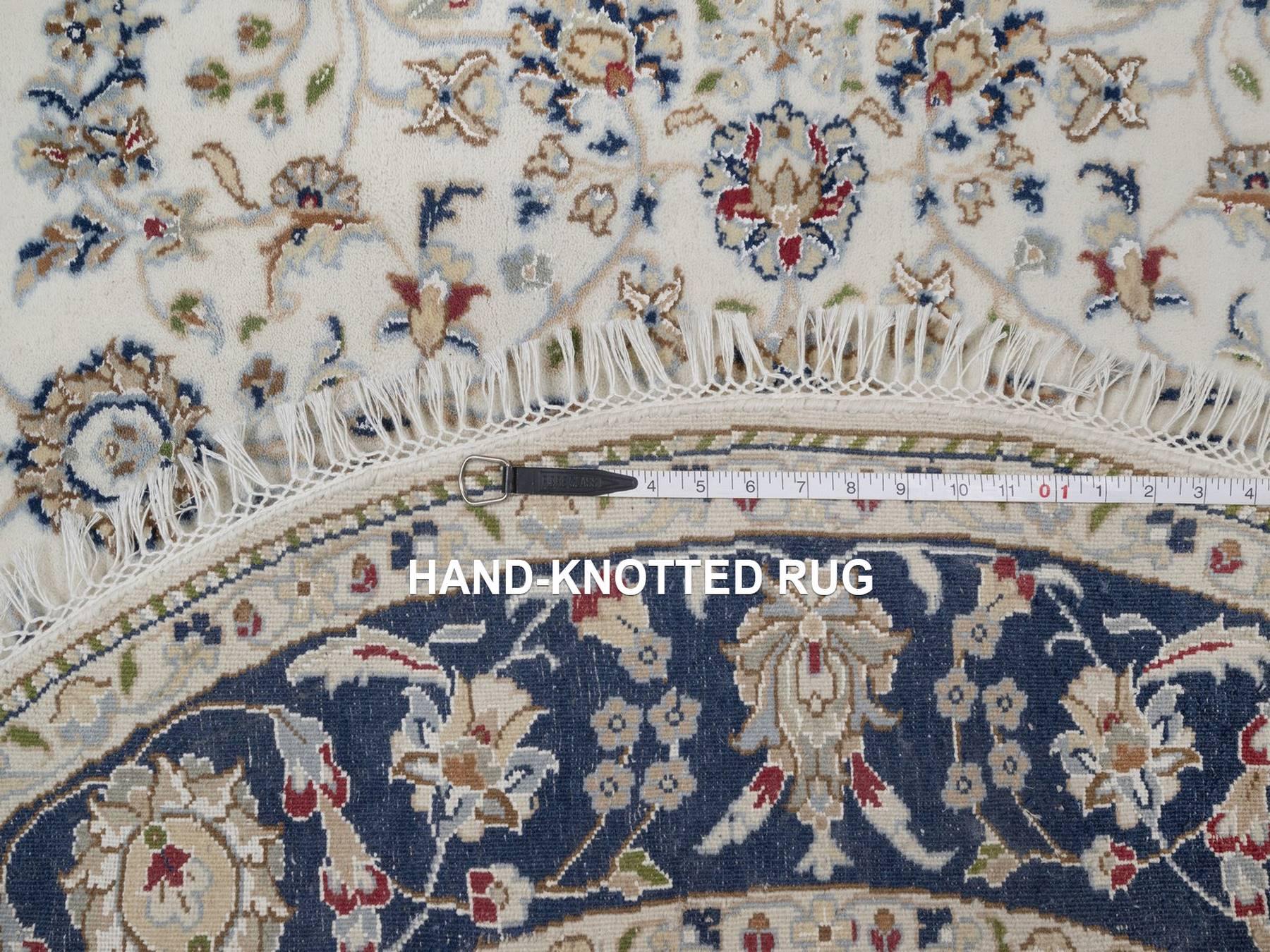 4'10" x 4'11" New Hand Knotted Ivory Wool & Silk Round Oriental Rug - MOA10291580