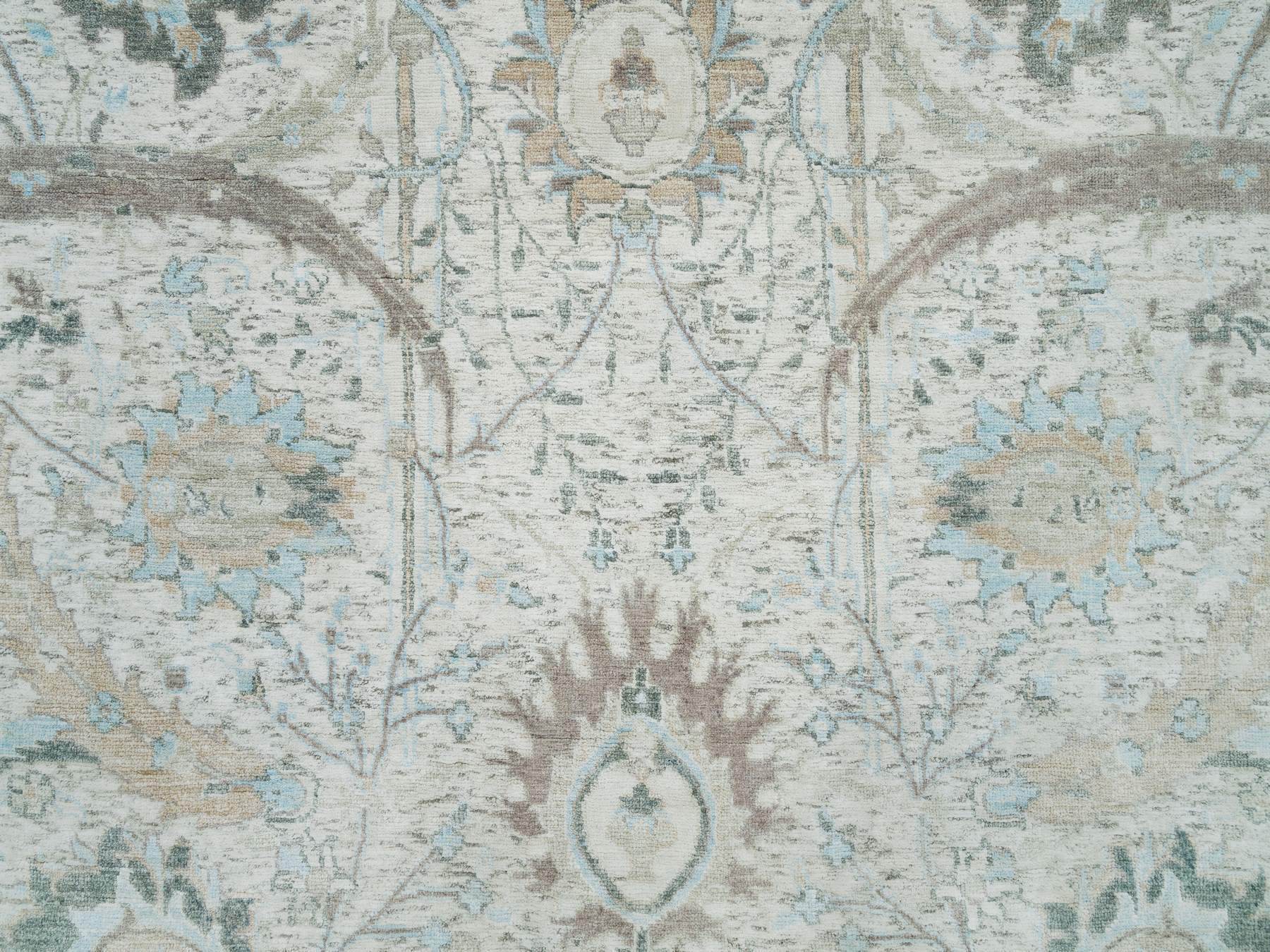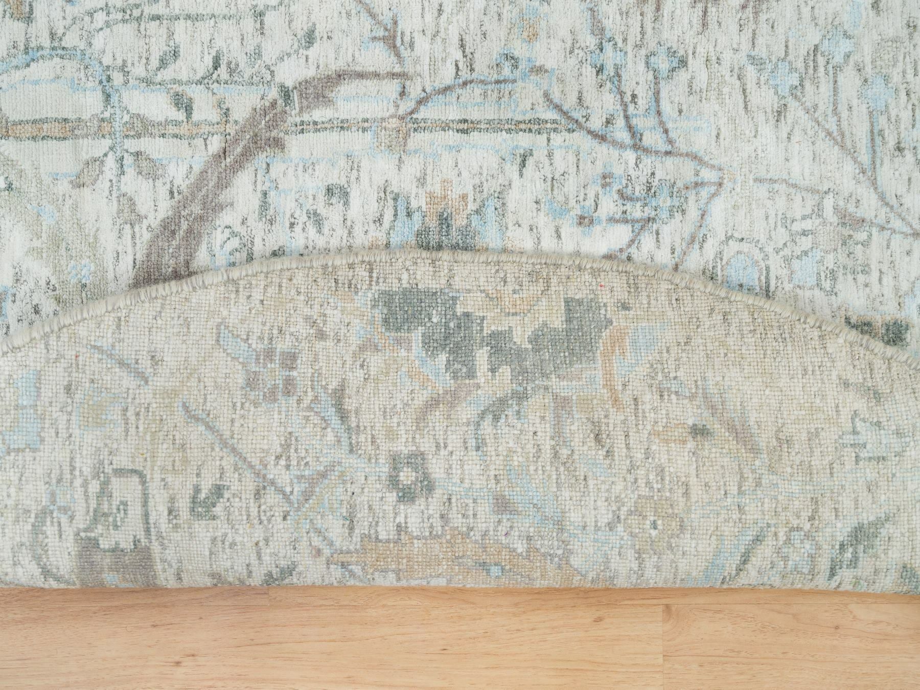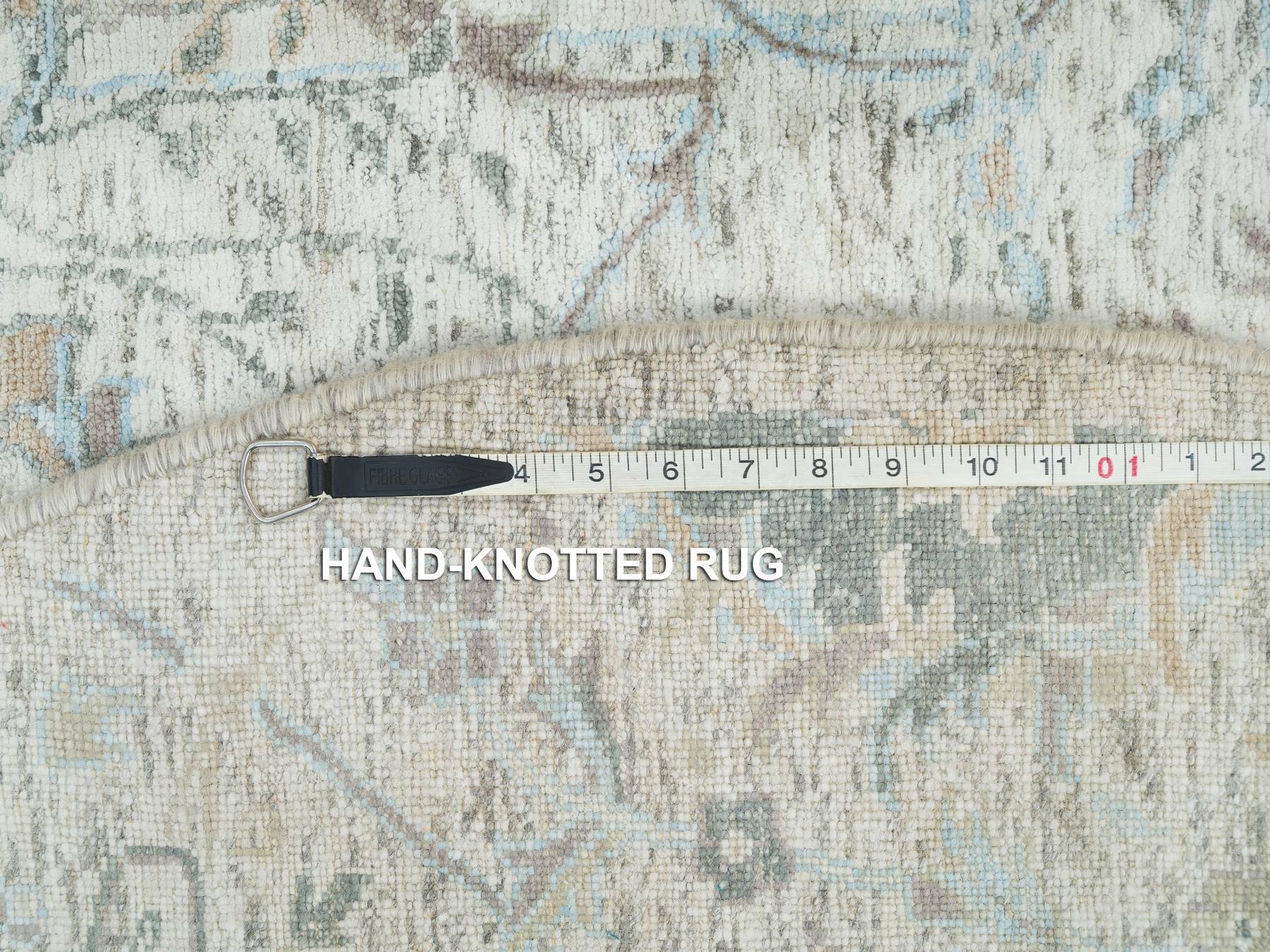 5'0" x 5'0" New Hand Knotted Ivory Wool & Silk Round Oriental Rug - MOA10265934