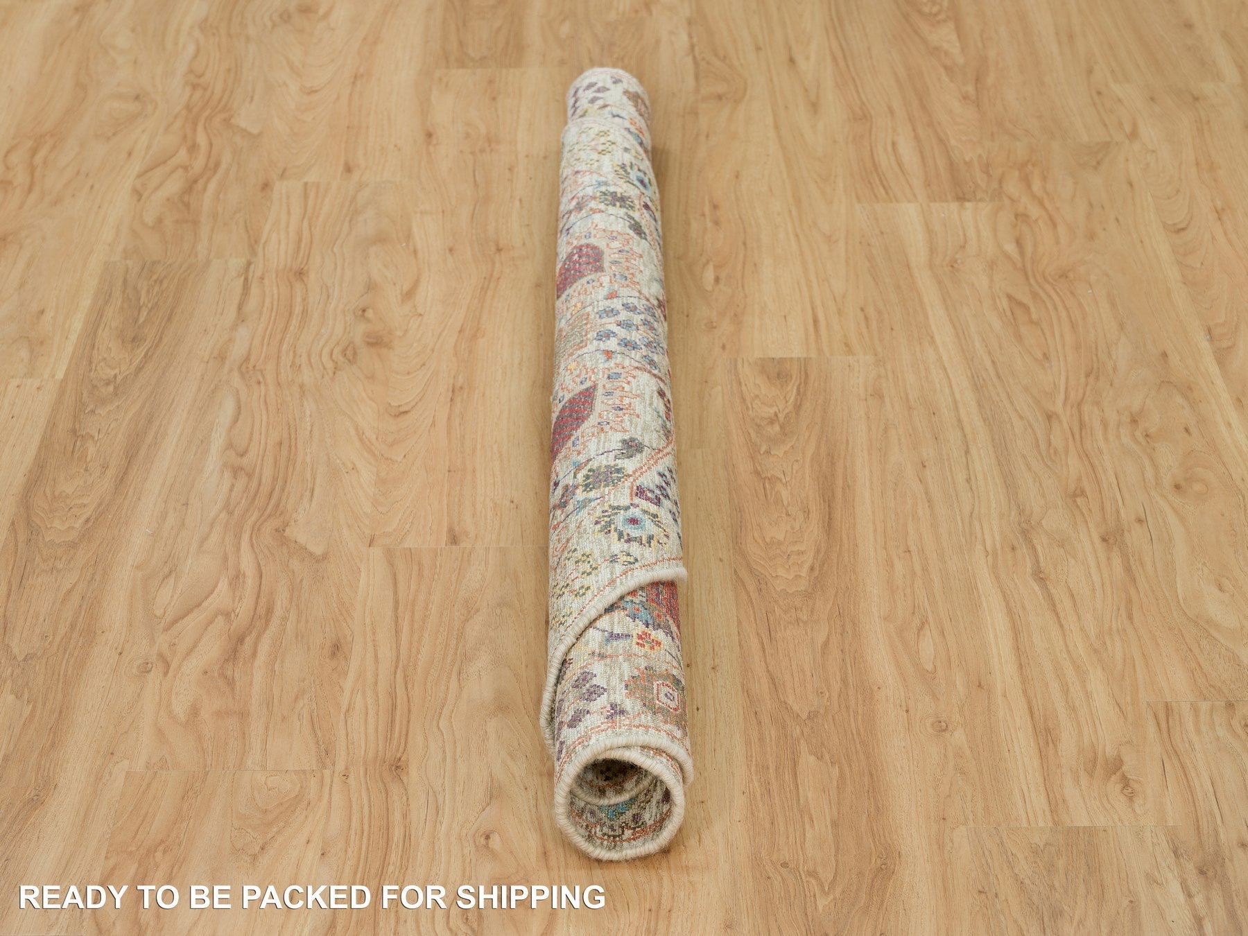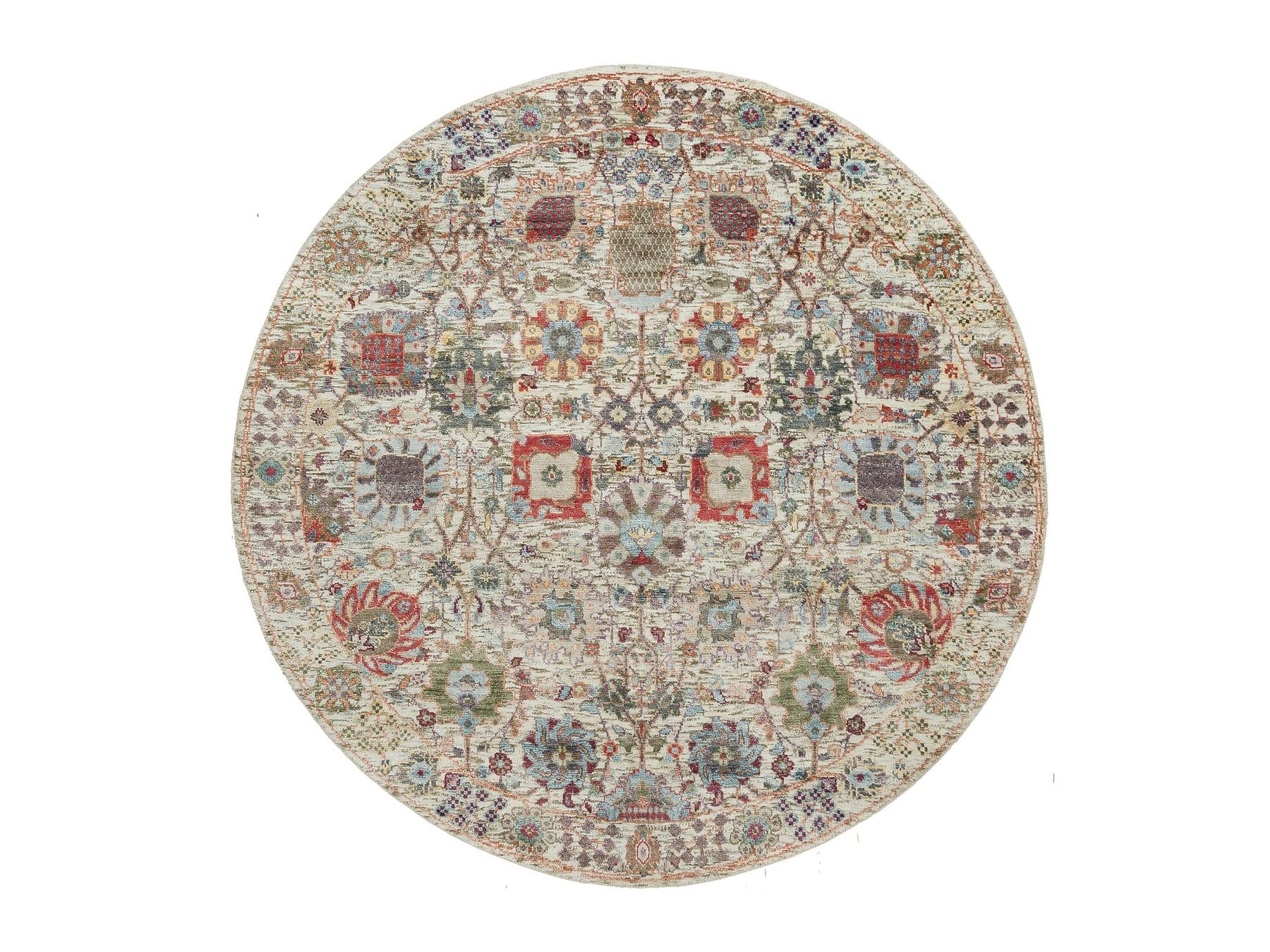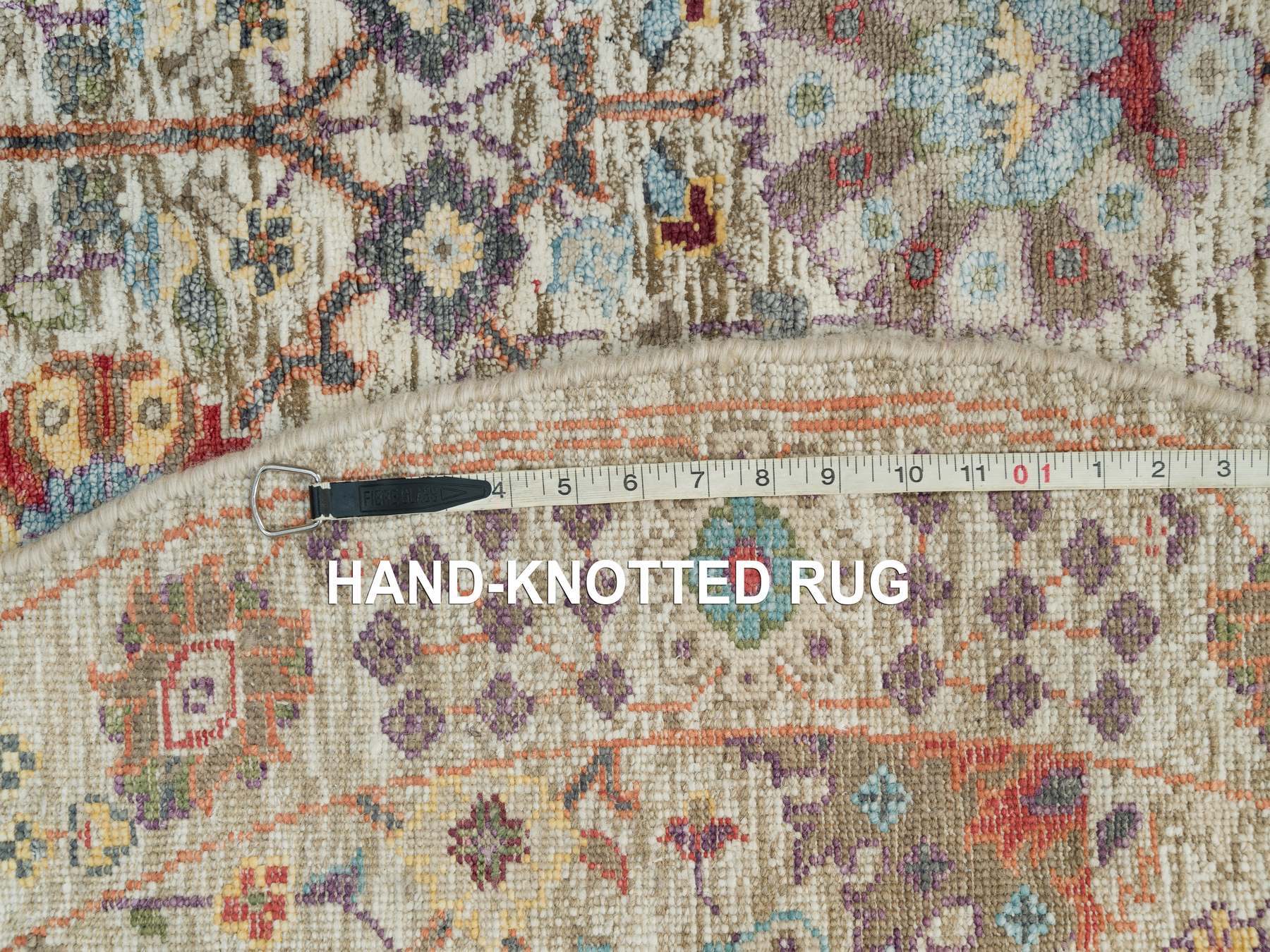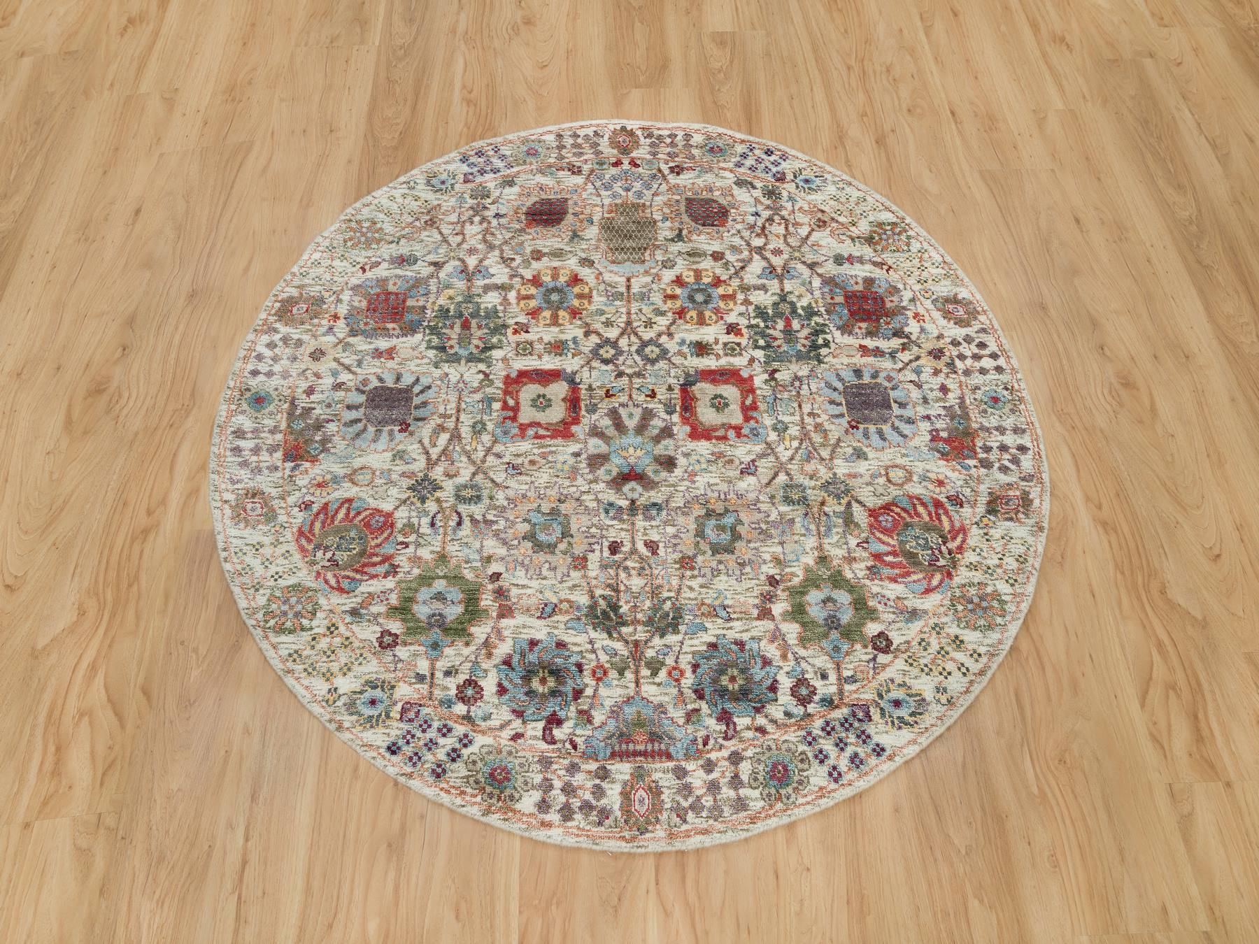 5'0" x 5'0" New Hand Knotted Ivory Wool & Silk Round Oriental Rug - MOA10290259