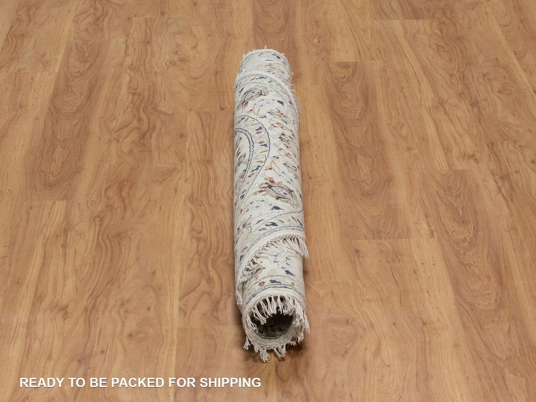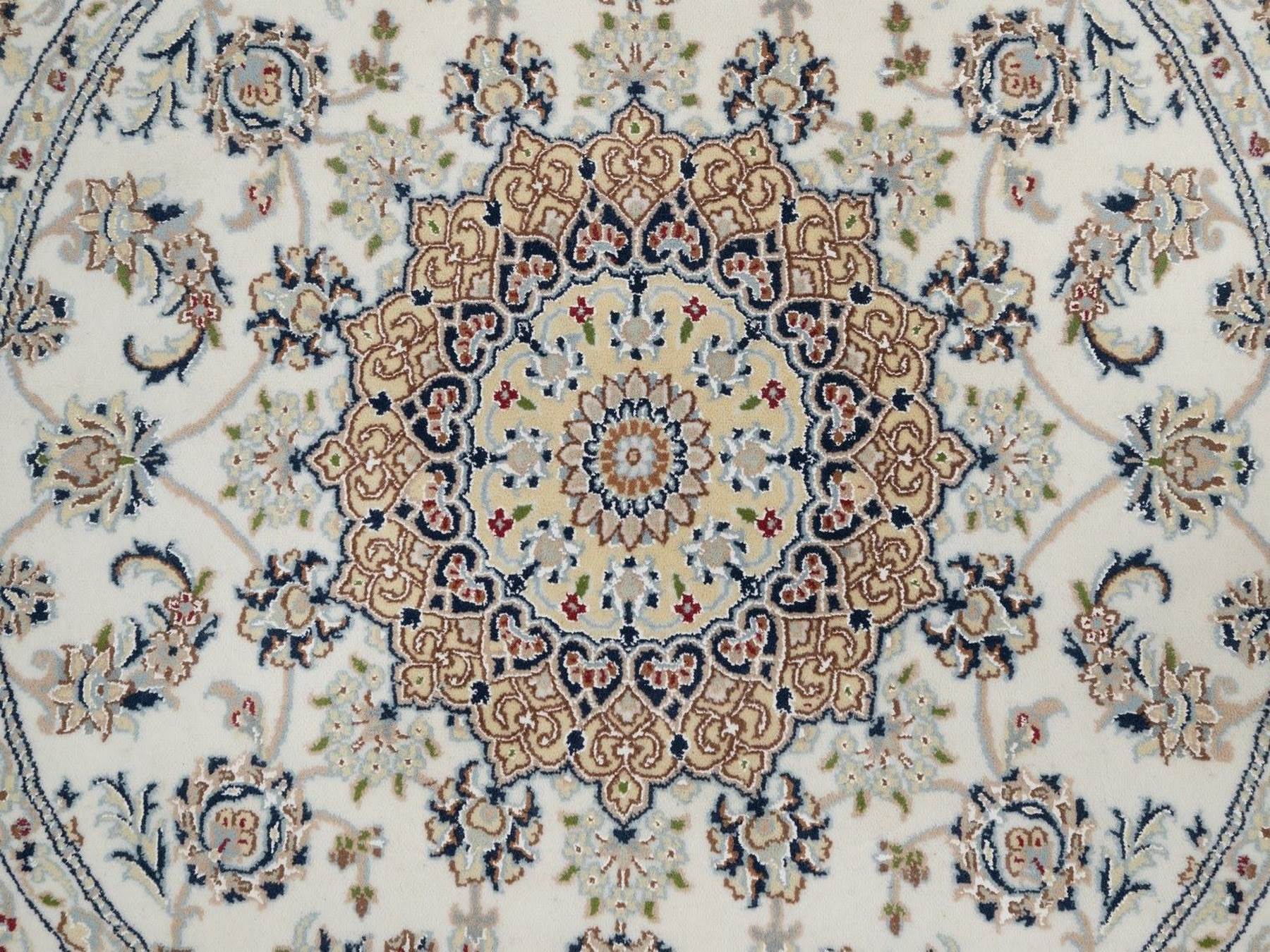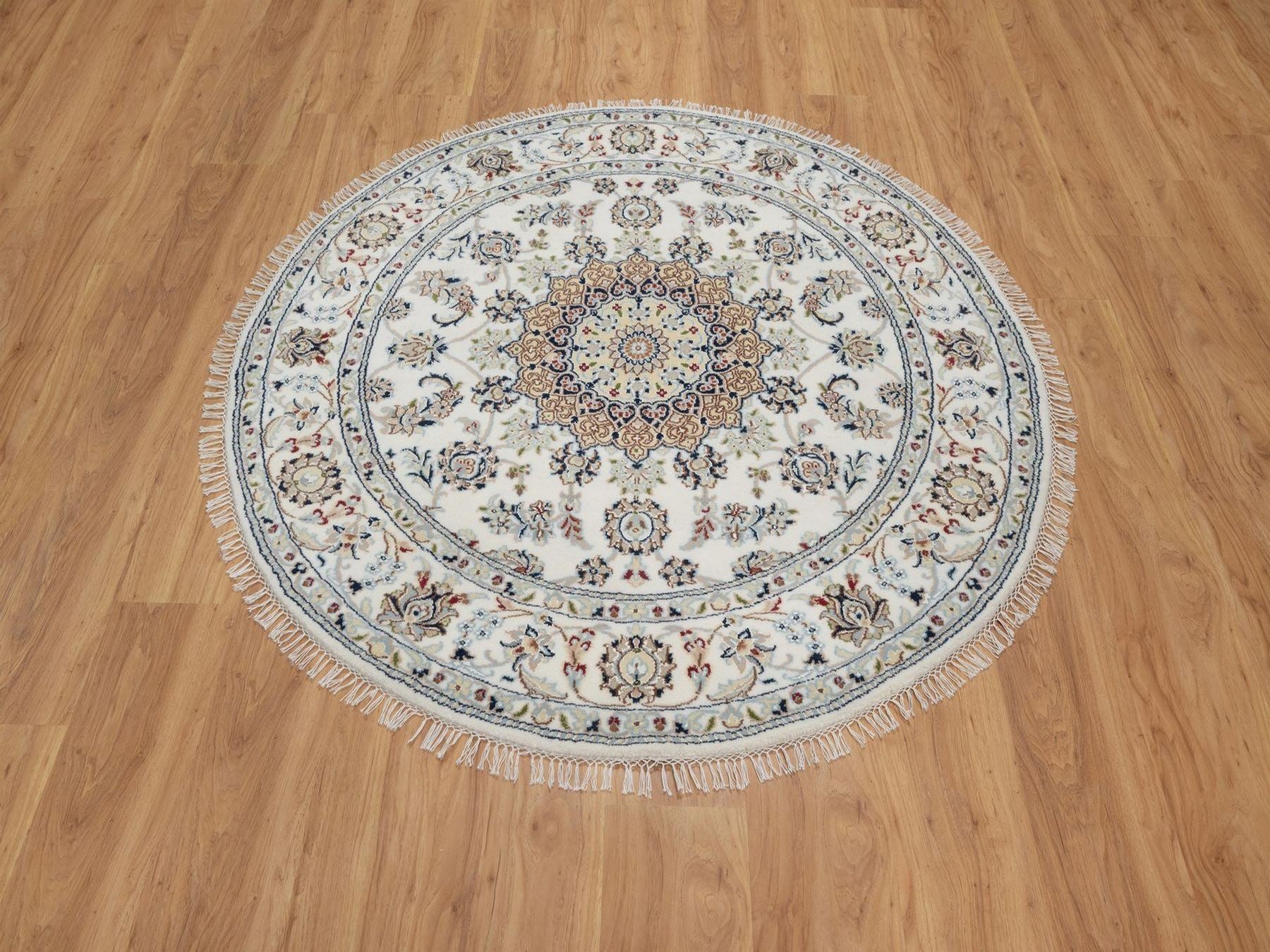 5'0" x 5'0" New Hand Knotted Ivory Wool & Silk Round Oriental Rug - MOA10291565