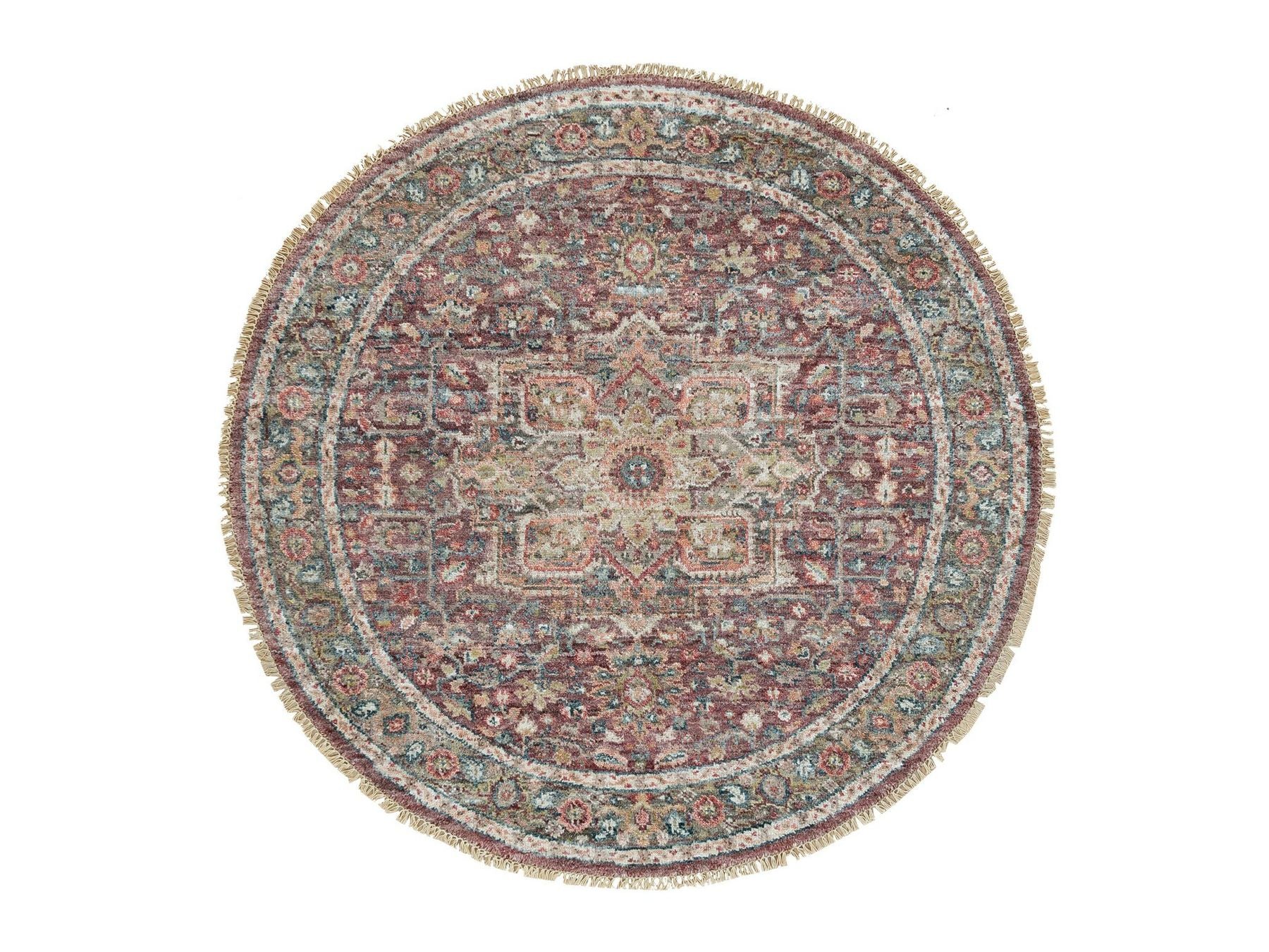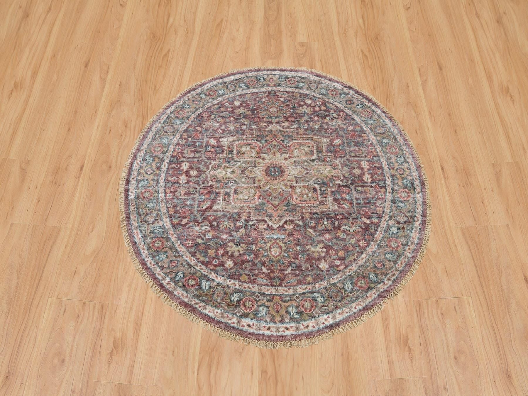 5'0" x 5'0" New Hand Knotted Red Wool Round Oriental Rug - MOA10290142