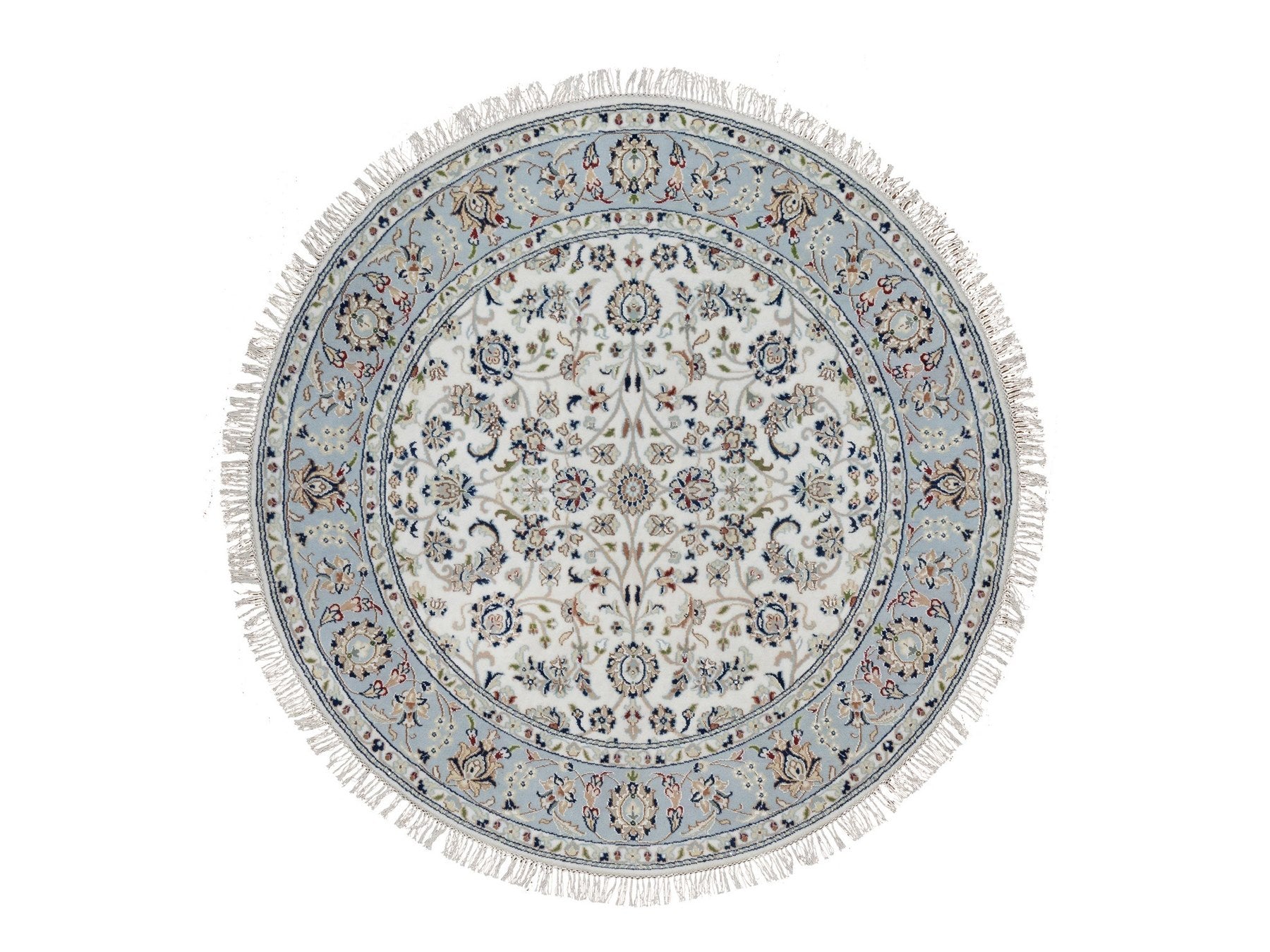 5'1" x 5'1" New Hand Knotted Ivory Wool & Silk Round Oriental Rug - MOA10291563
