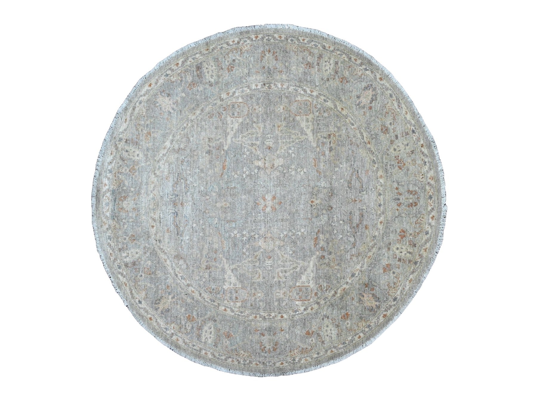 5'10" x 6'0" New Hand Knotted Blue Wool Round Oriental Rug - MOA10220342