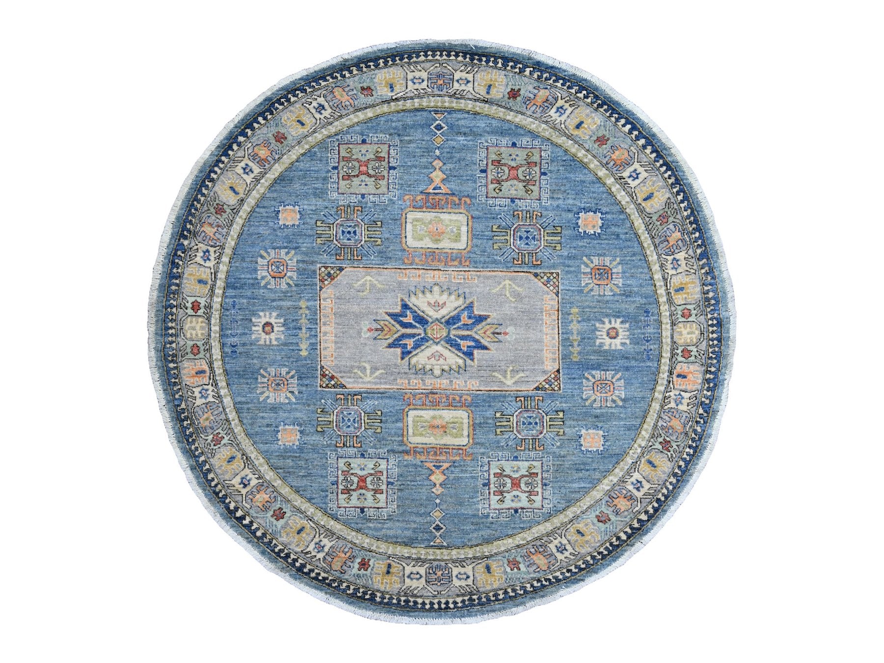 5'10" x 6'1" New Hand Knotted Blue Wool Round Oriental Rug - MOA10220393