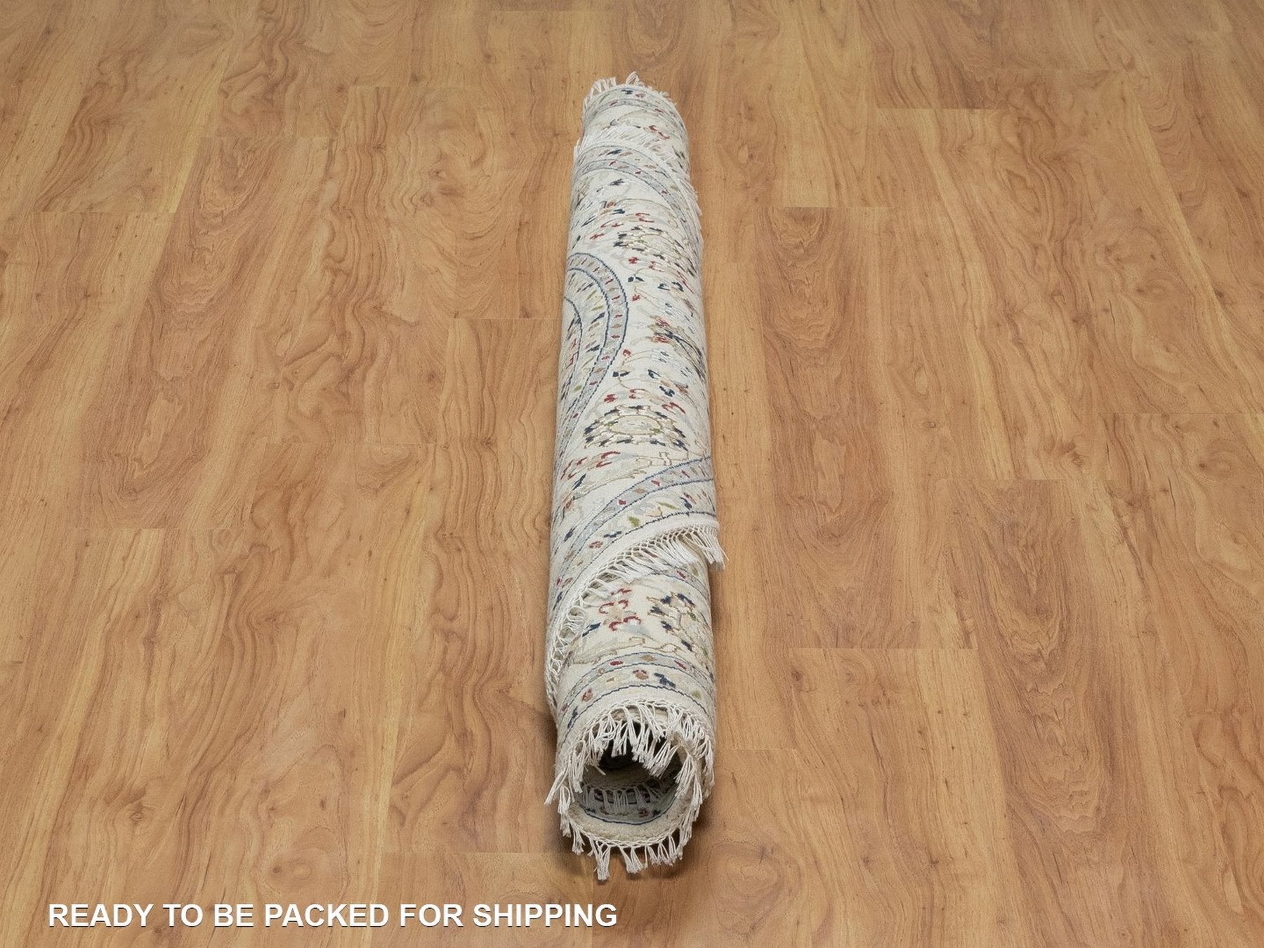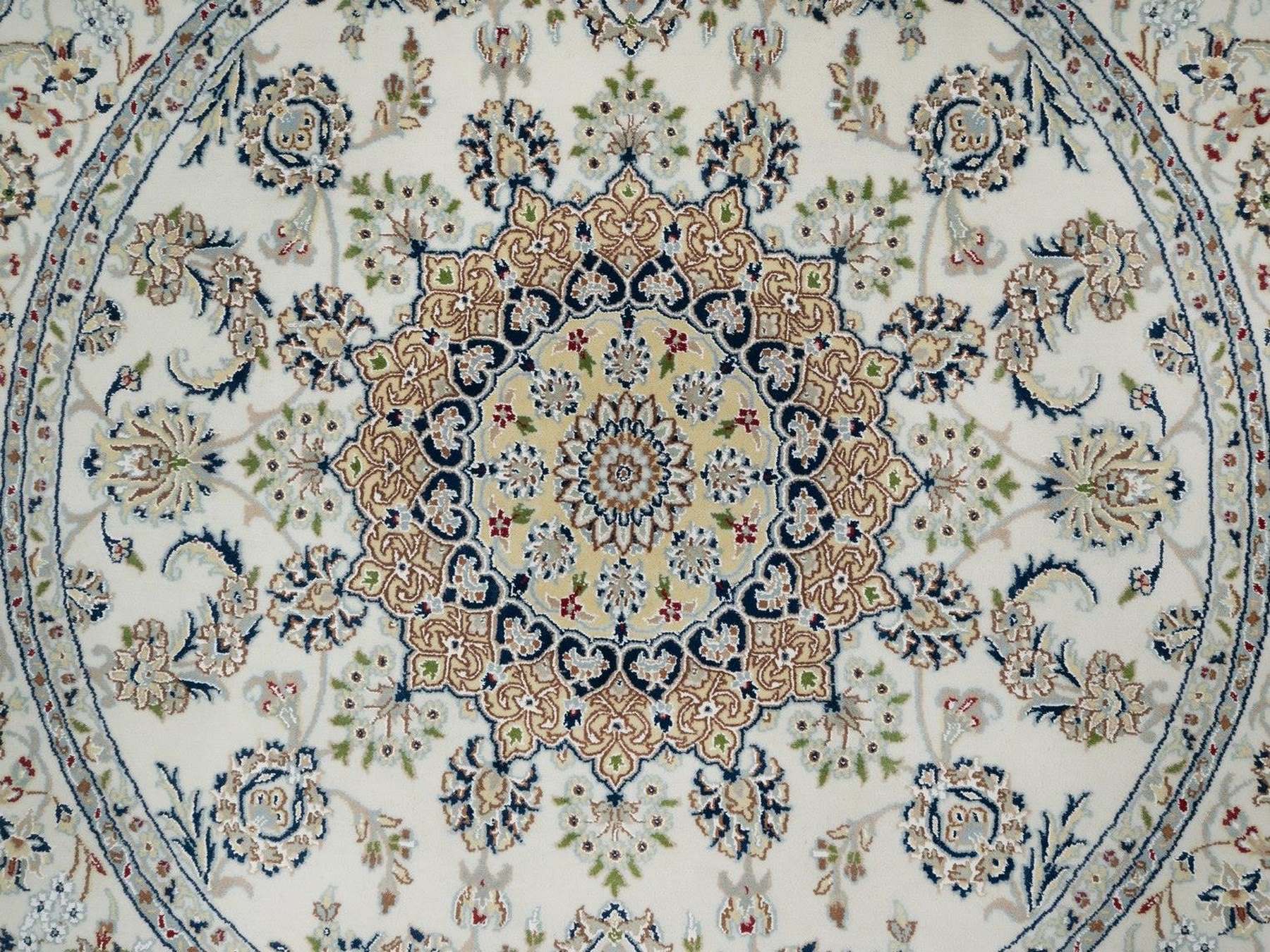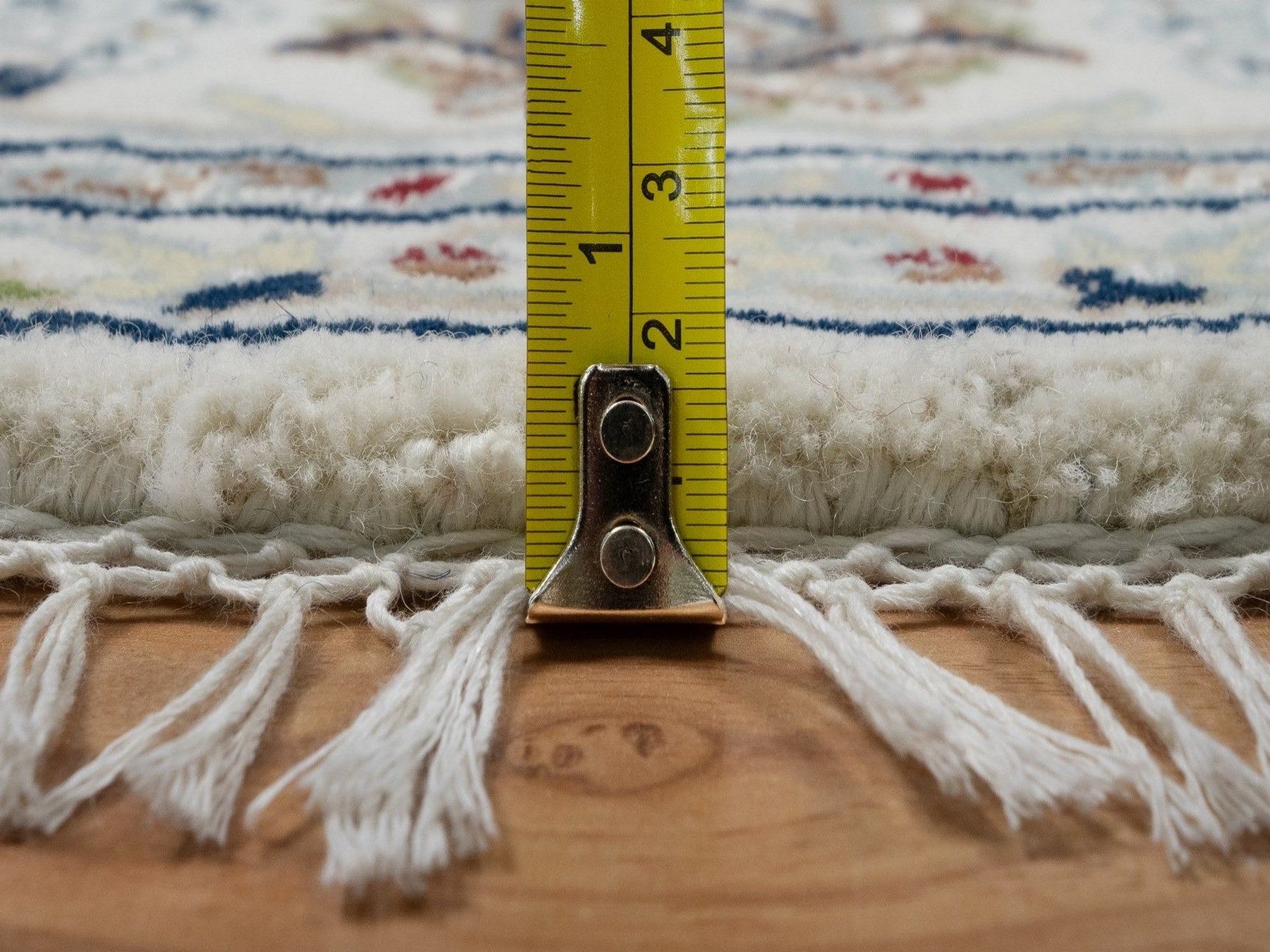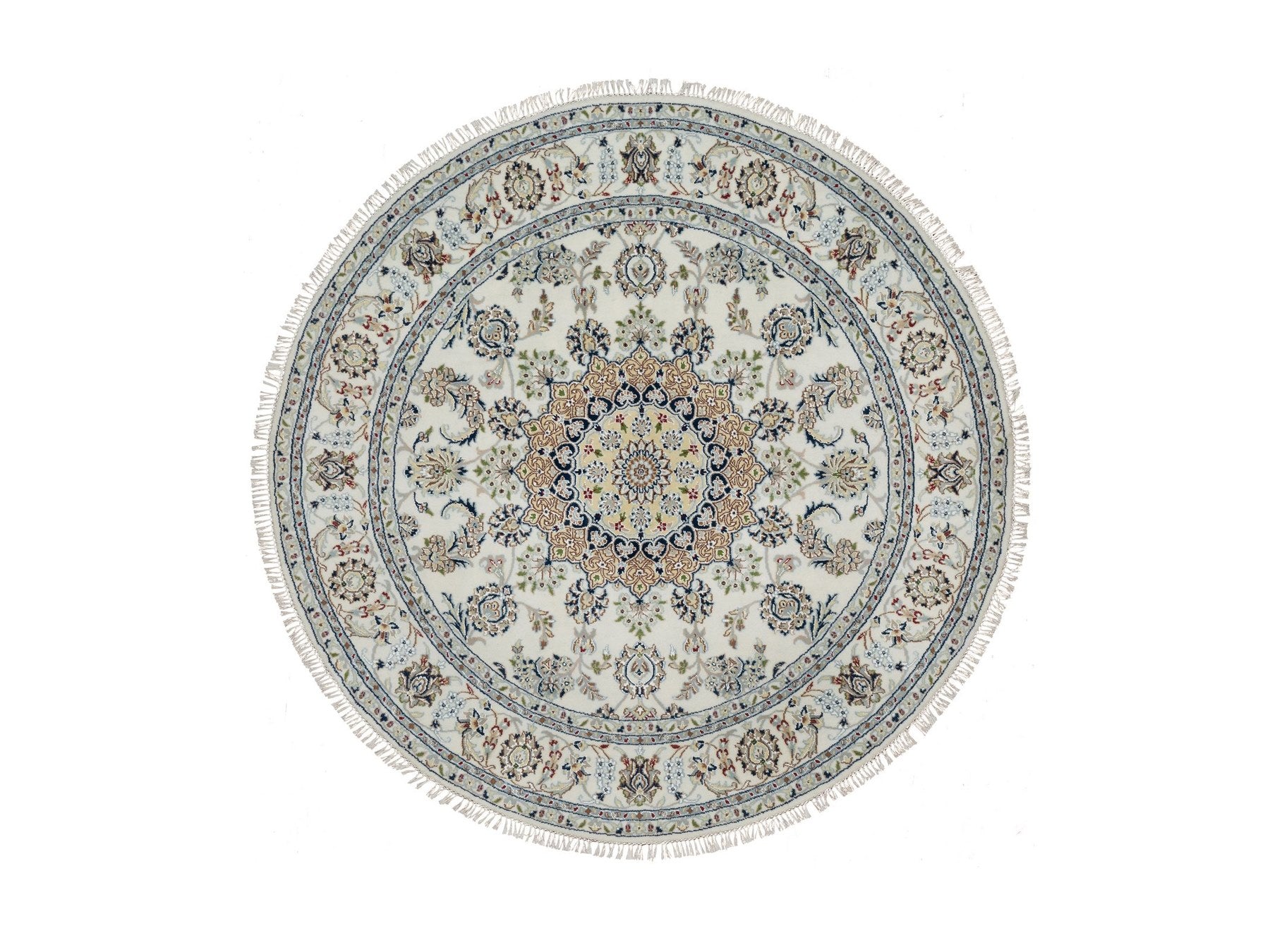 5'11" x 5'11" New Hand Knotted Ivory Wool & Silk Round Oriental Rug - MOA10291561