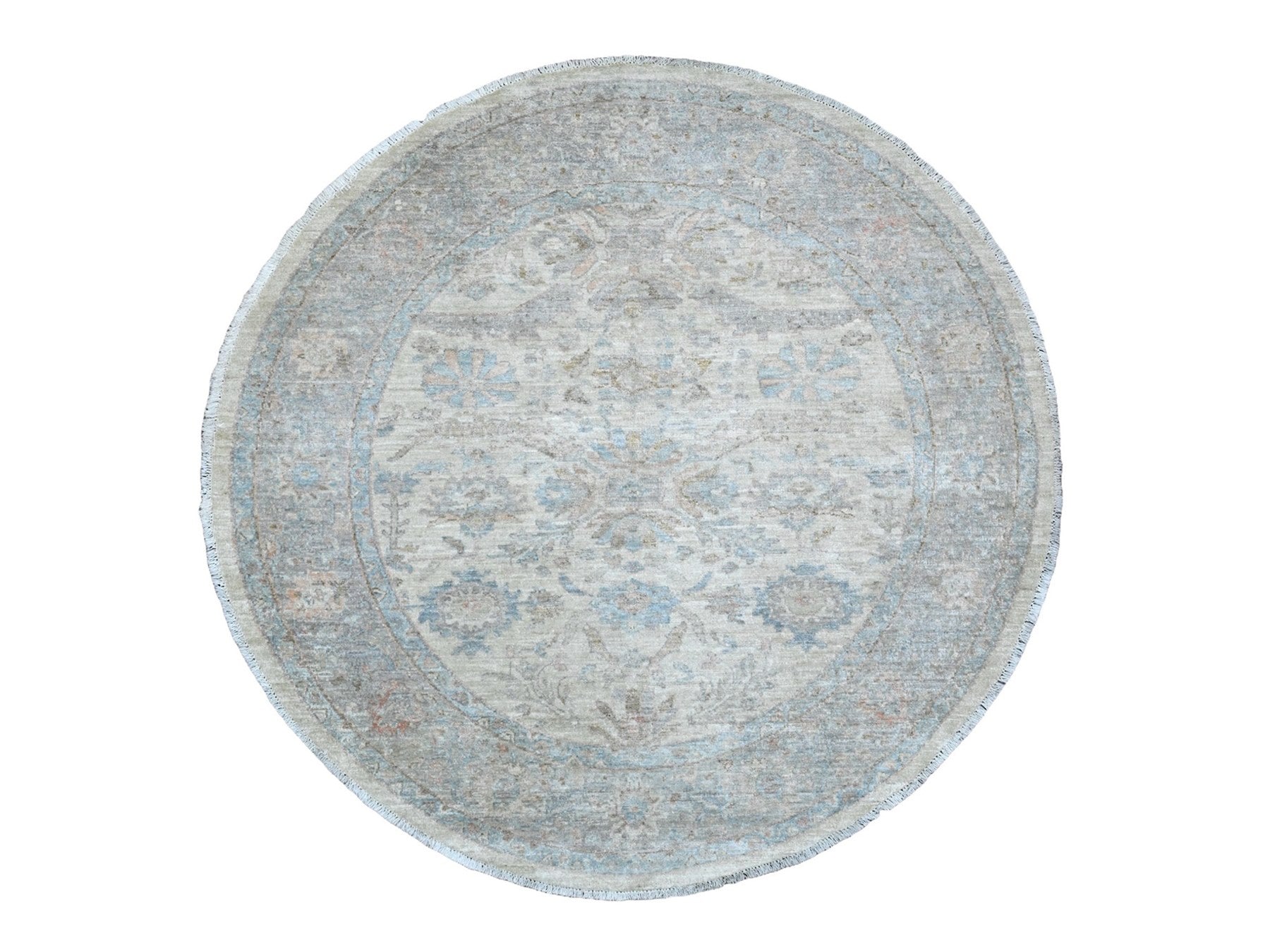 5'8" x 5'9" New Hand Knotted Ivory Wool Round Oriental Rug - MOA10289996
