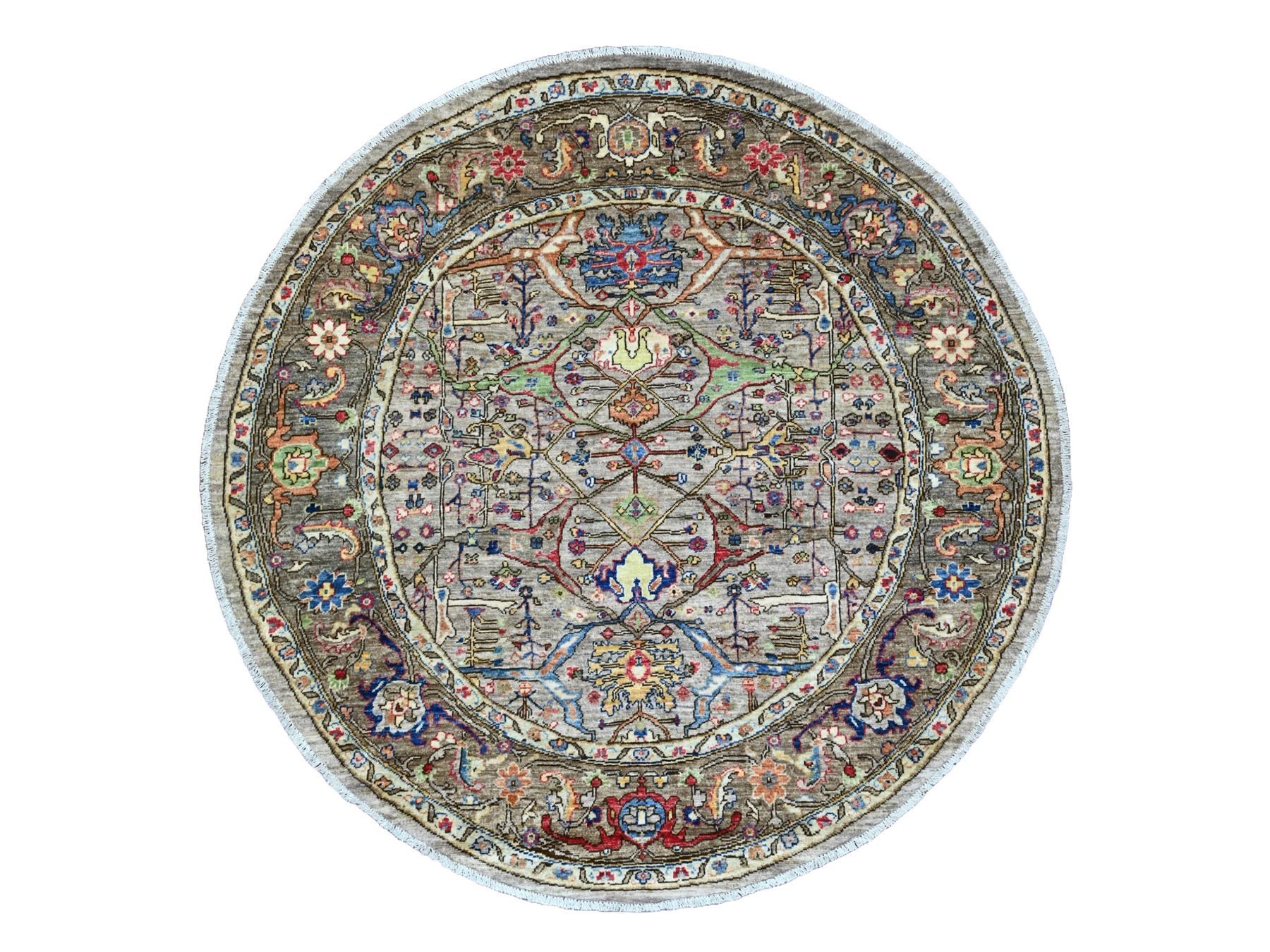 5'9" x 5'11" New Hand Knotted Grey Wool Round Oriental Rug - MOA10289842