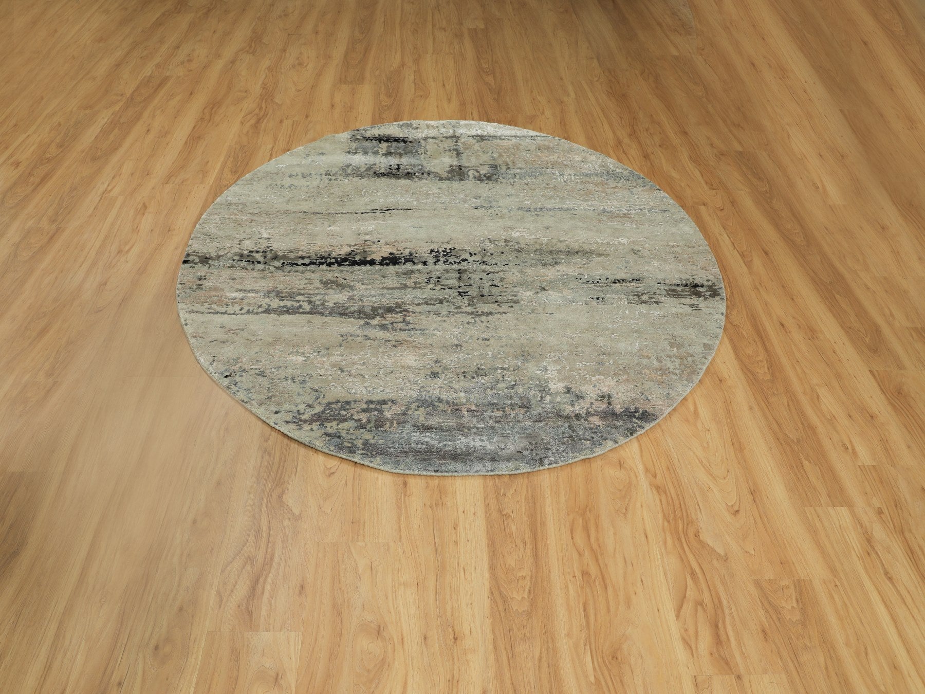 6'0" x 6'0" New Hand Knotted Beige Wool & Silk Round Oriental Rug - MOA10258883