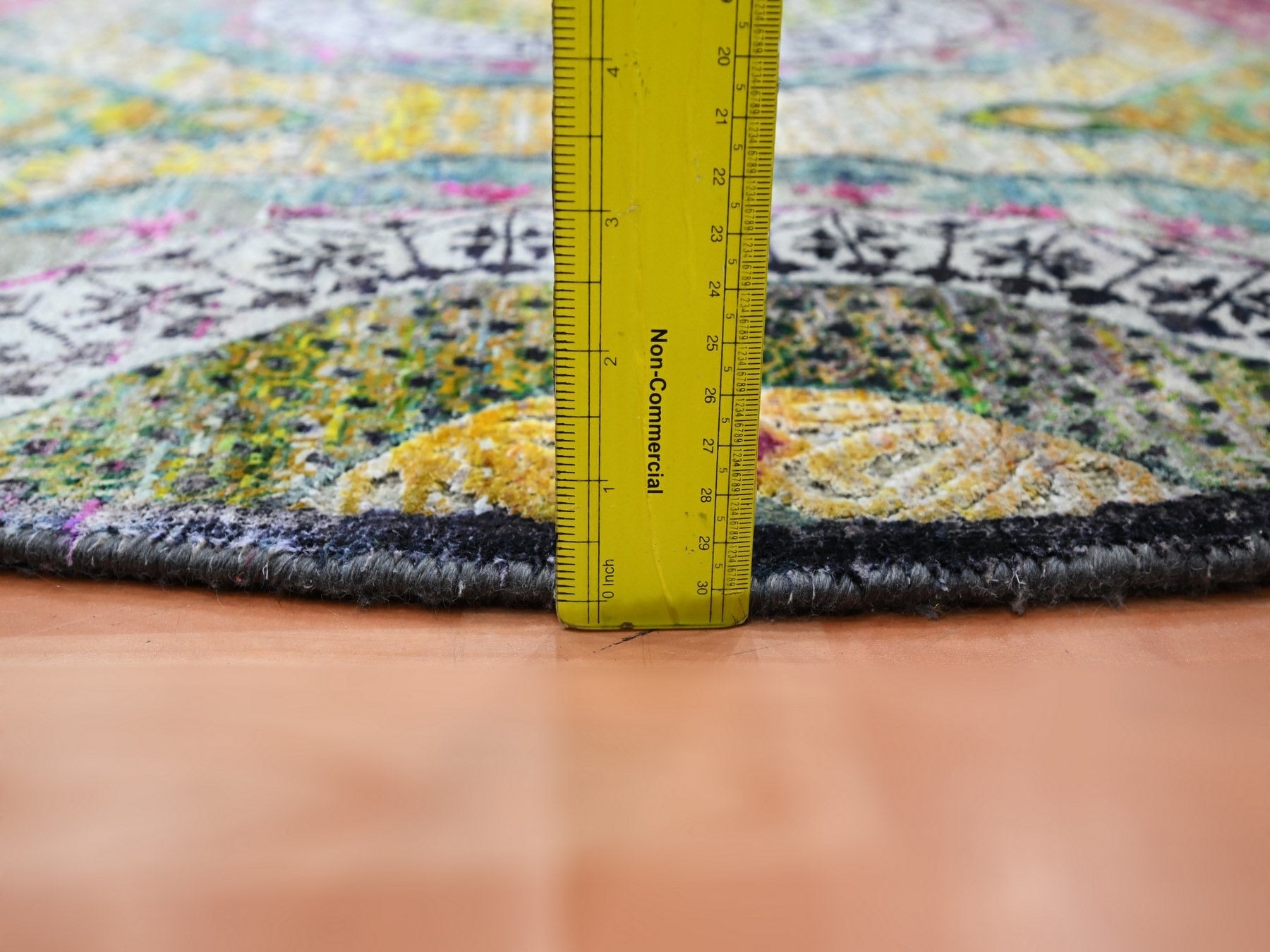 6'0" x 6'1" New Hand Knotted Yellow Wool & Silk Round Oriental Rug - MOA10275553
