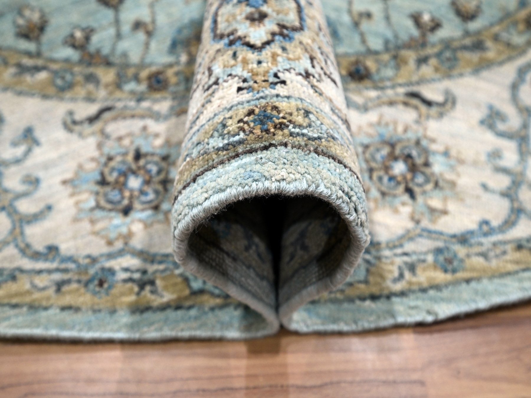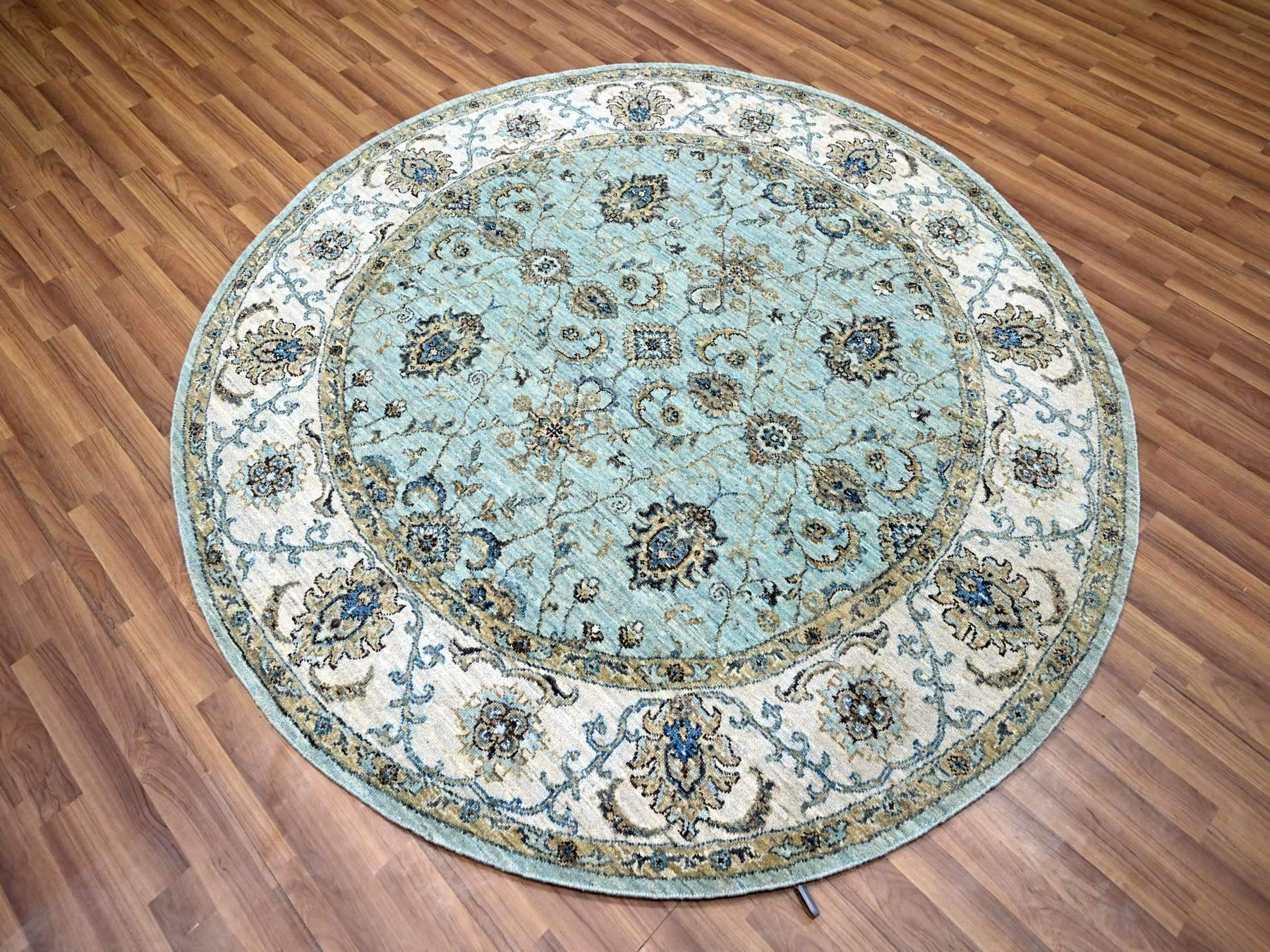 6'1" x 6'1" New Hand Knotted Blue Wool Round Oriental Rug - MOA10276139