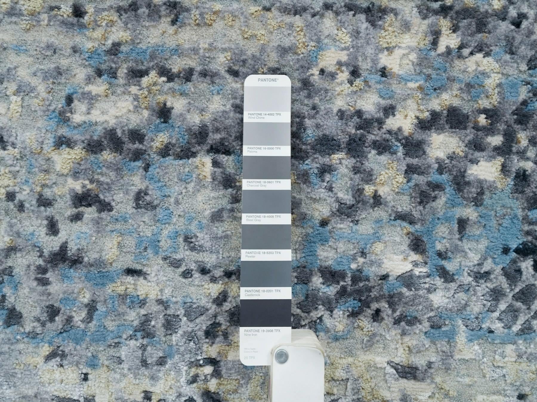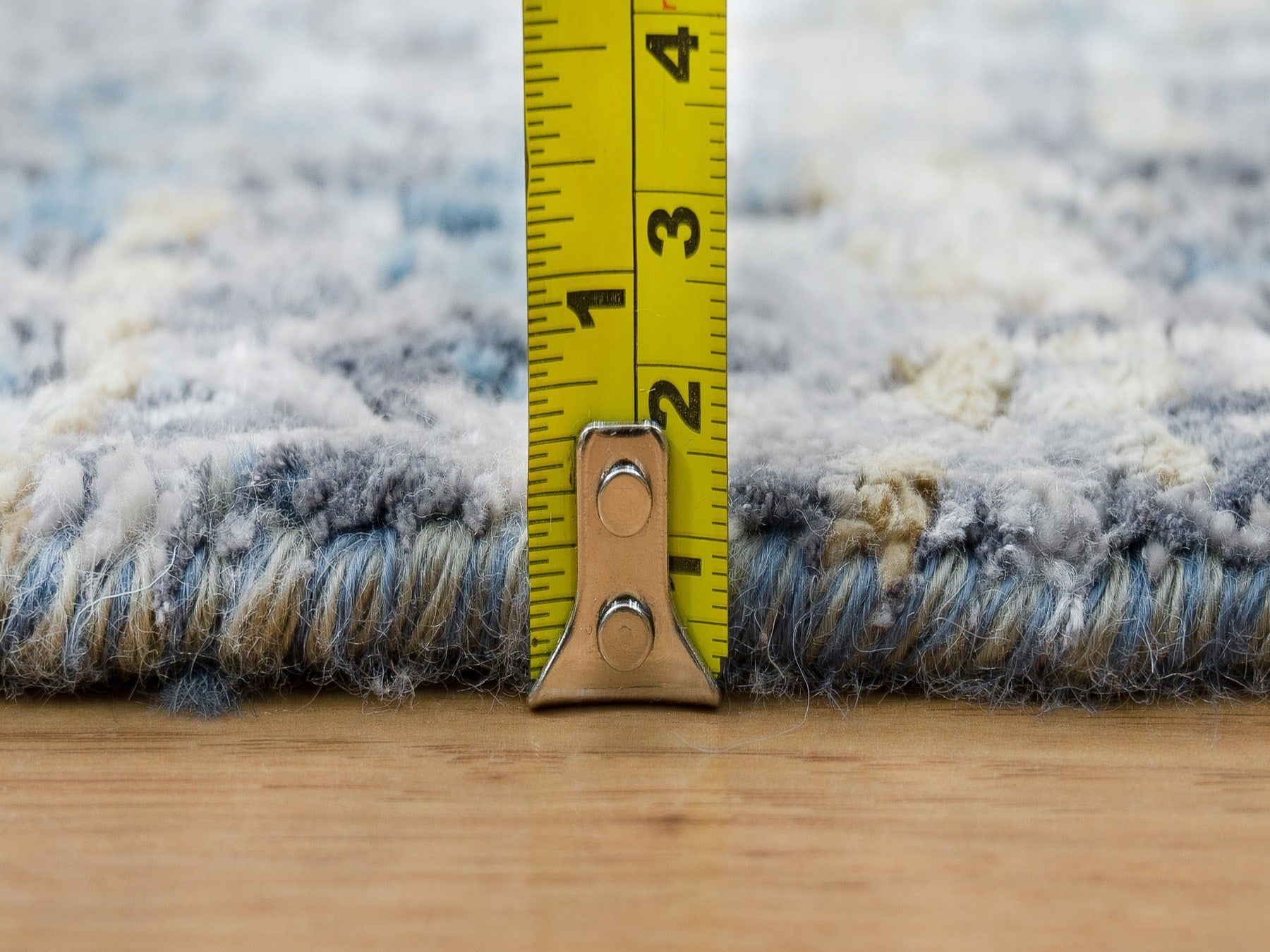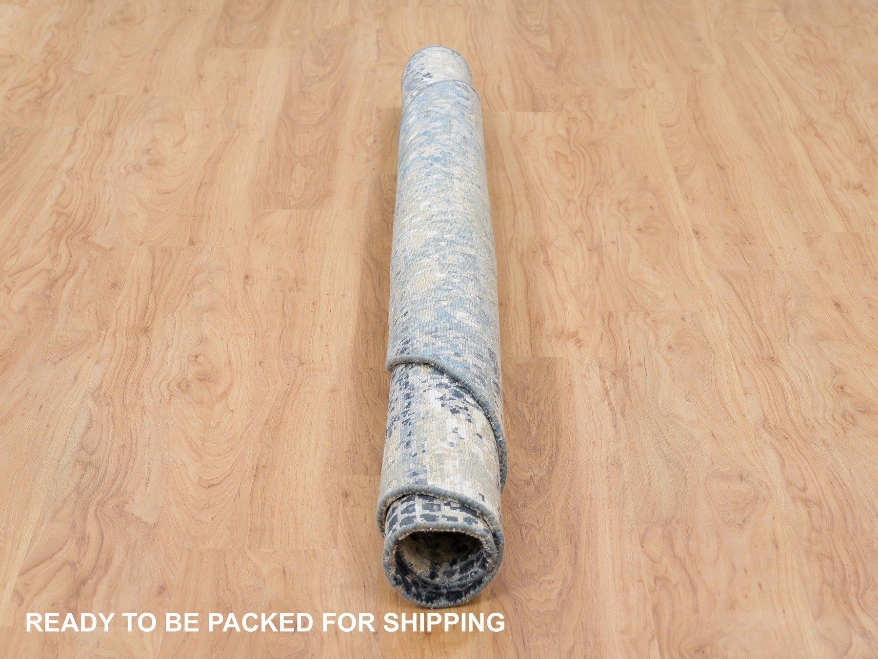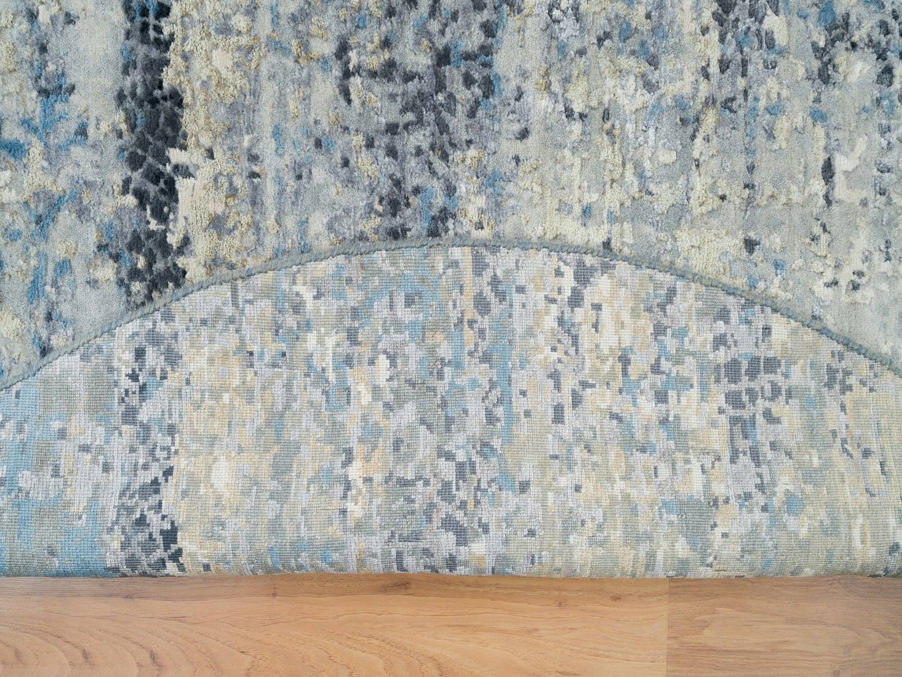 6'11" x 6'11" New Hand Knotted Grey Wool & Silk Round Oriental Rug - MOA10265879