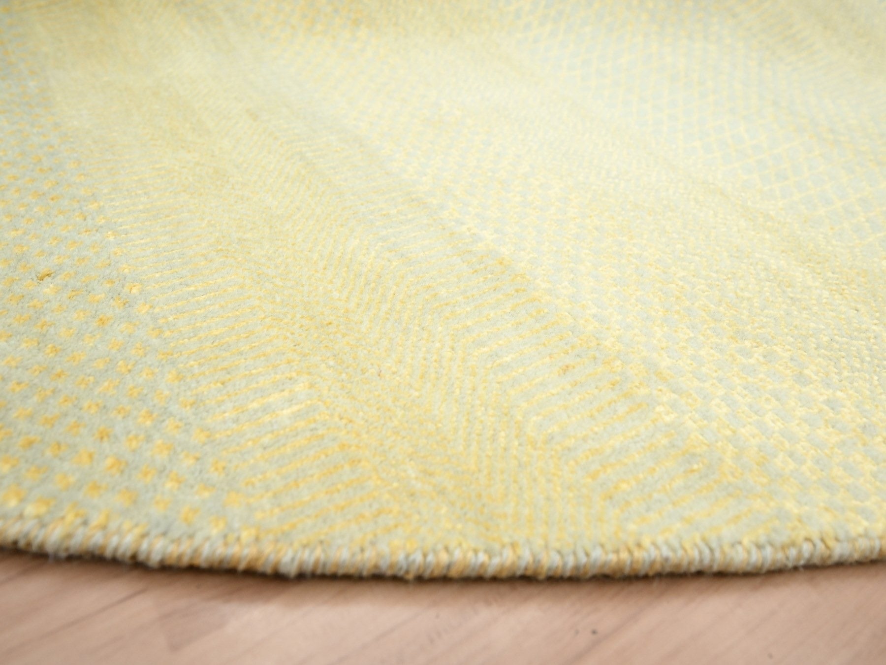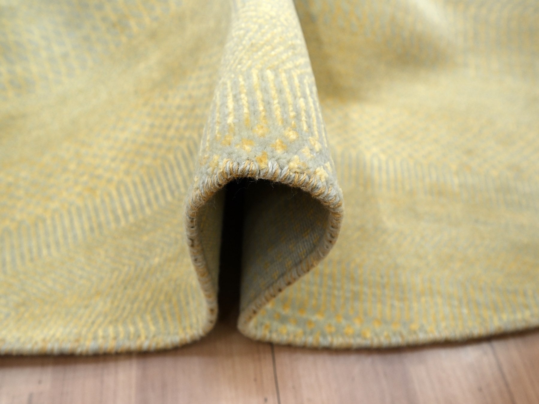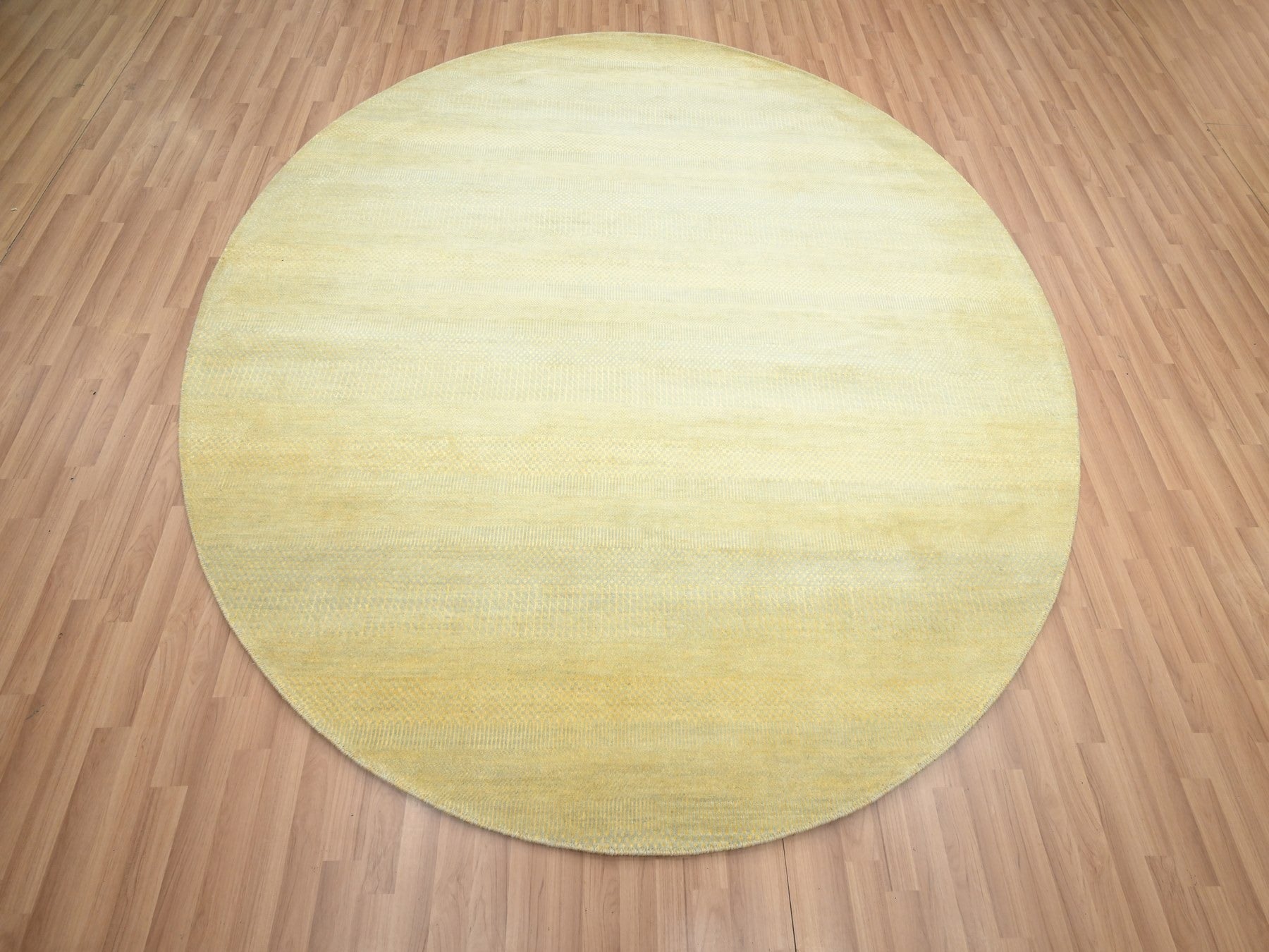 7'10" x 7'10" New Hand Knotted Yellow Wool & Silk Round Oriental Rug - MOA10283212