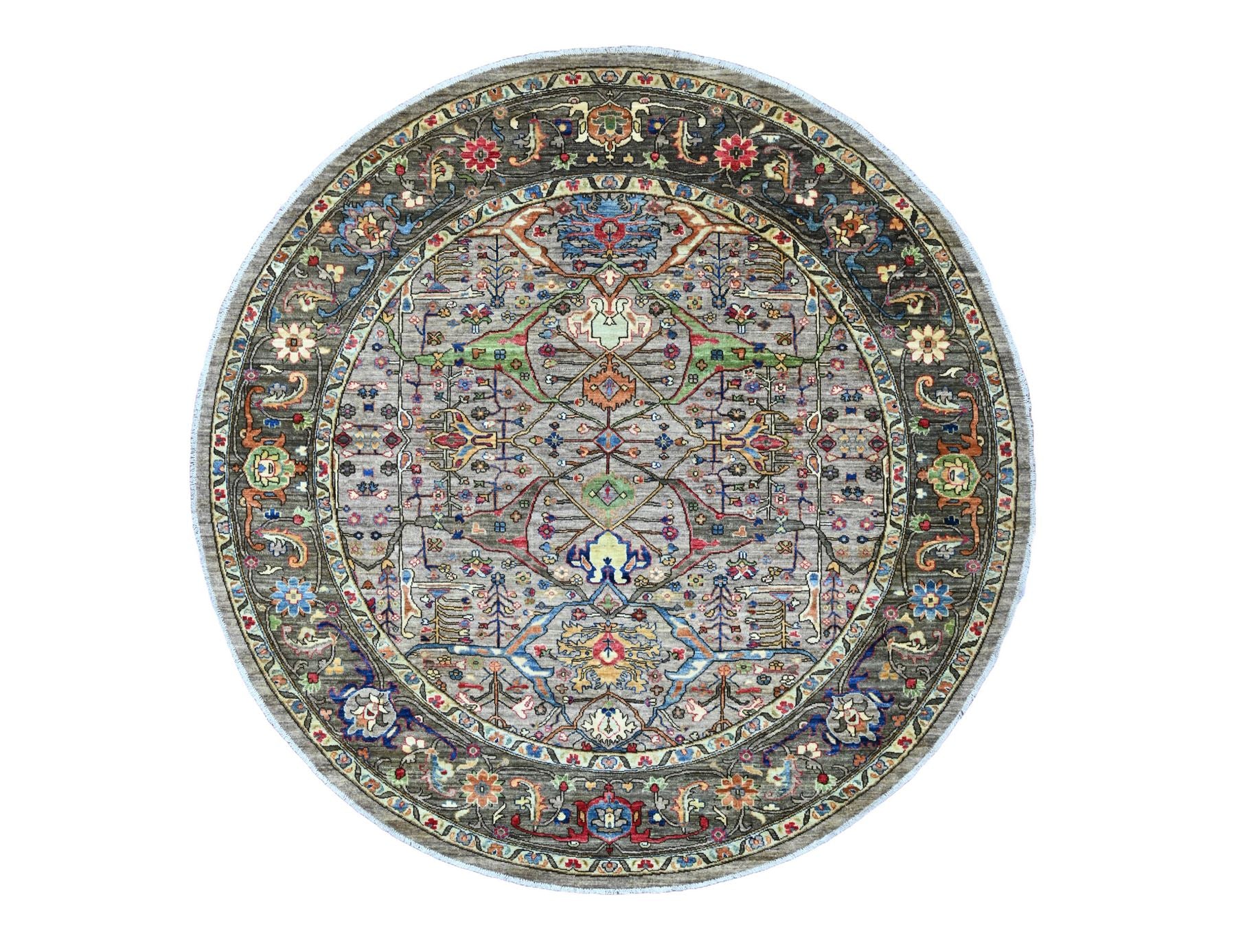 7'11" x 8'0" New Hand Knotted Grey Wool Round Oriental Rug - MOA10289812