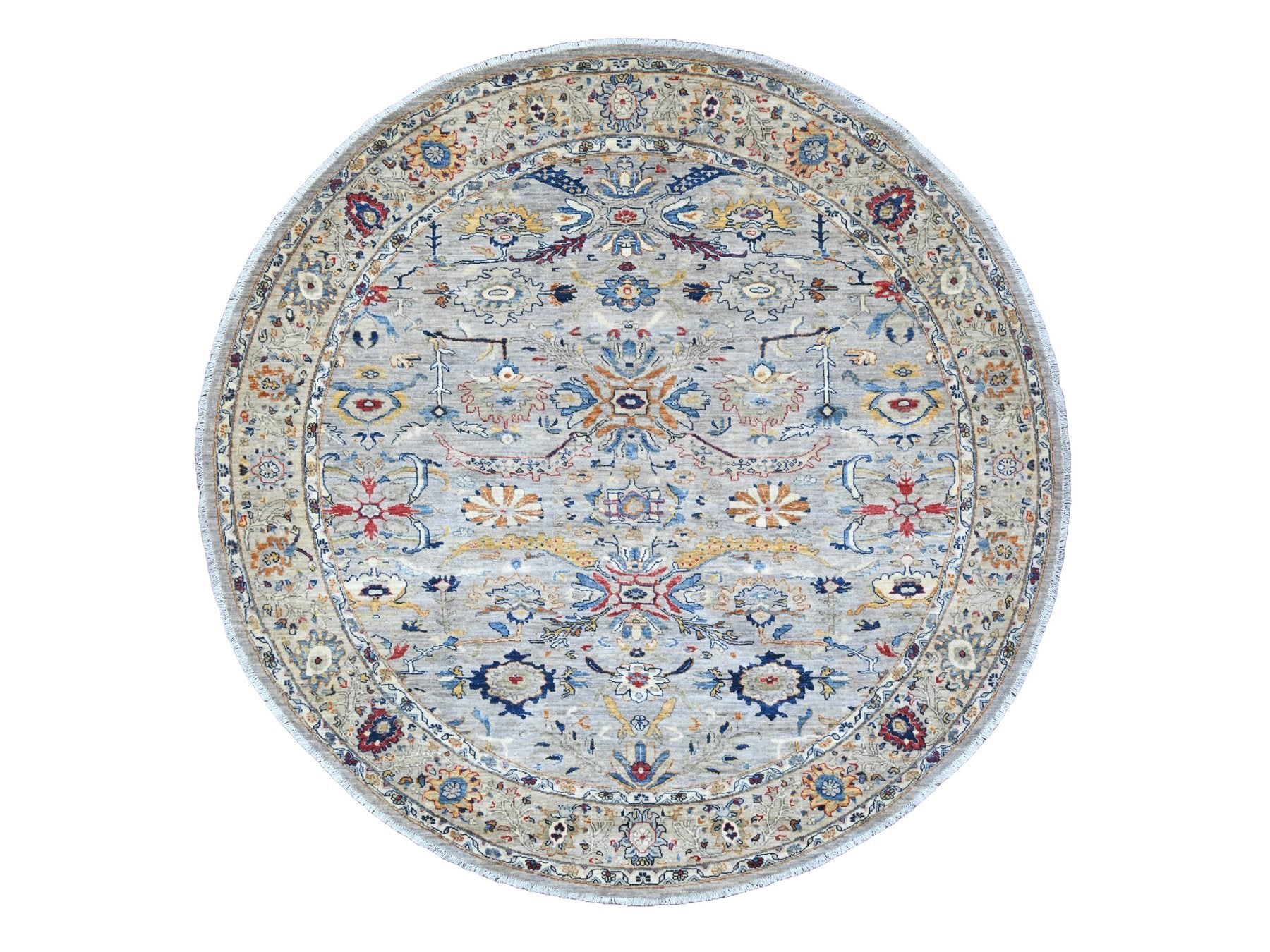 7'7" x 7'7" New Hand Knotted Grey Wool Round Oriental Rug - MOA10289853