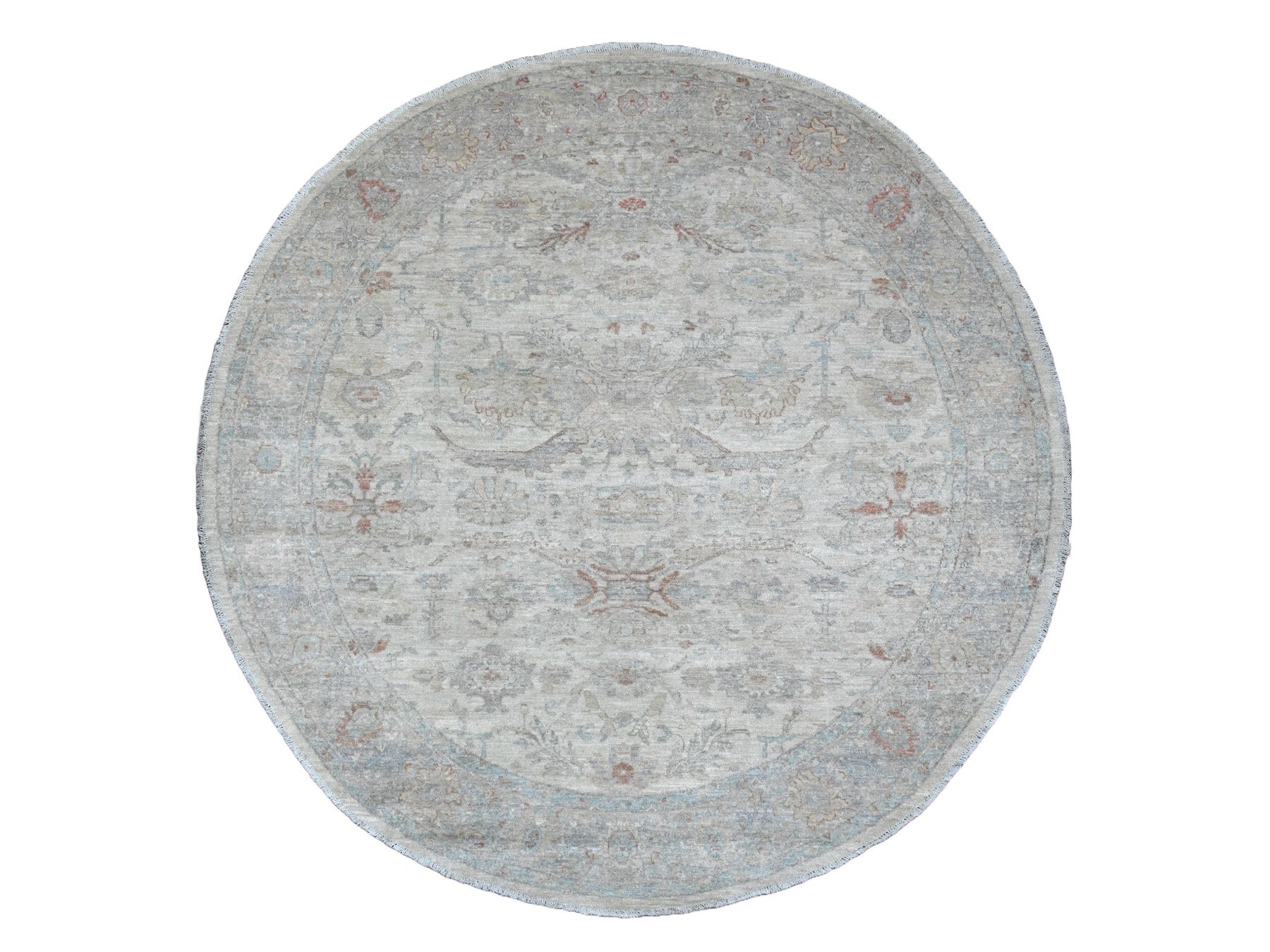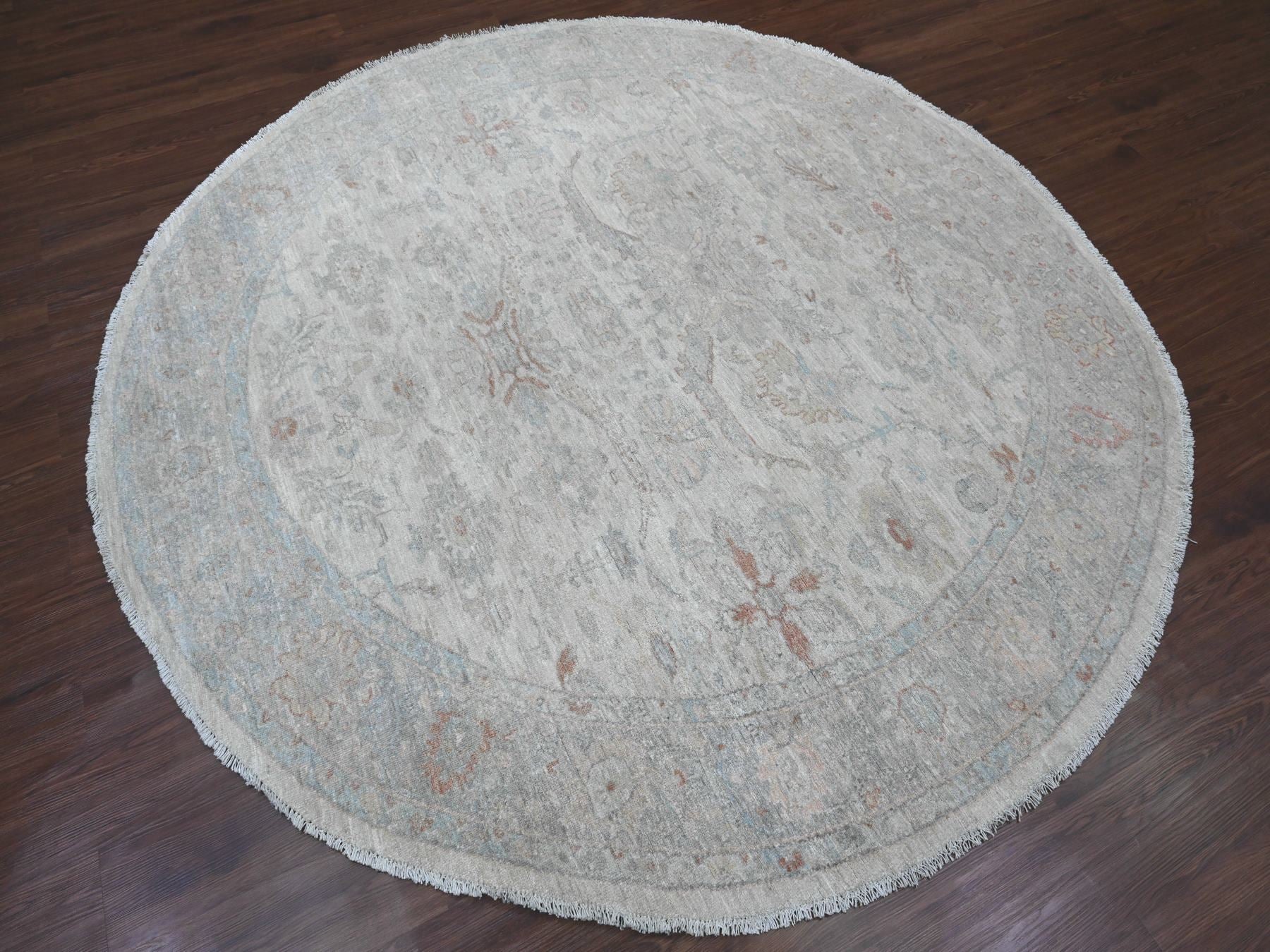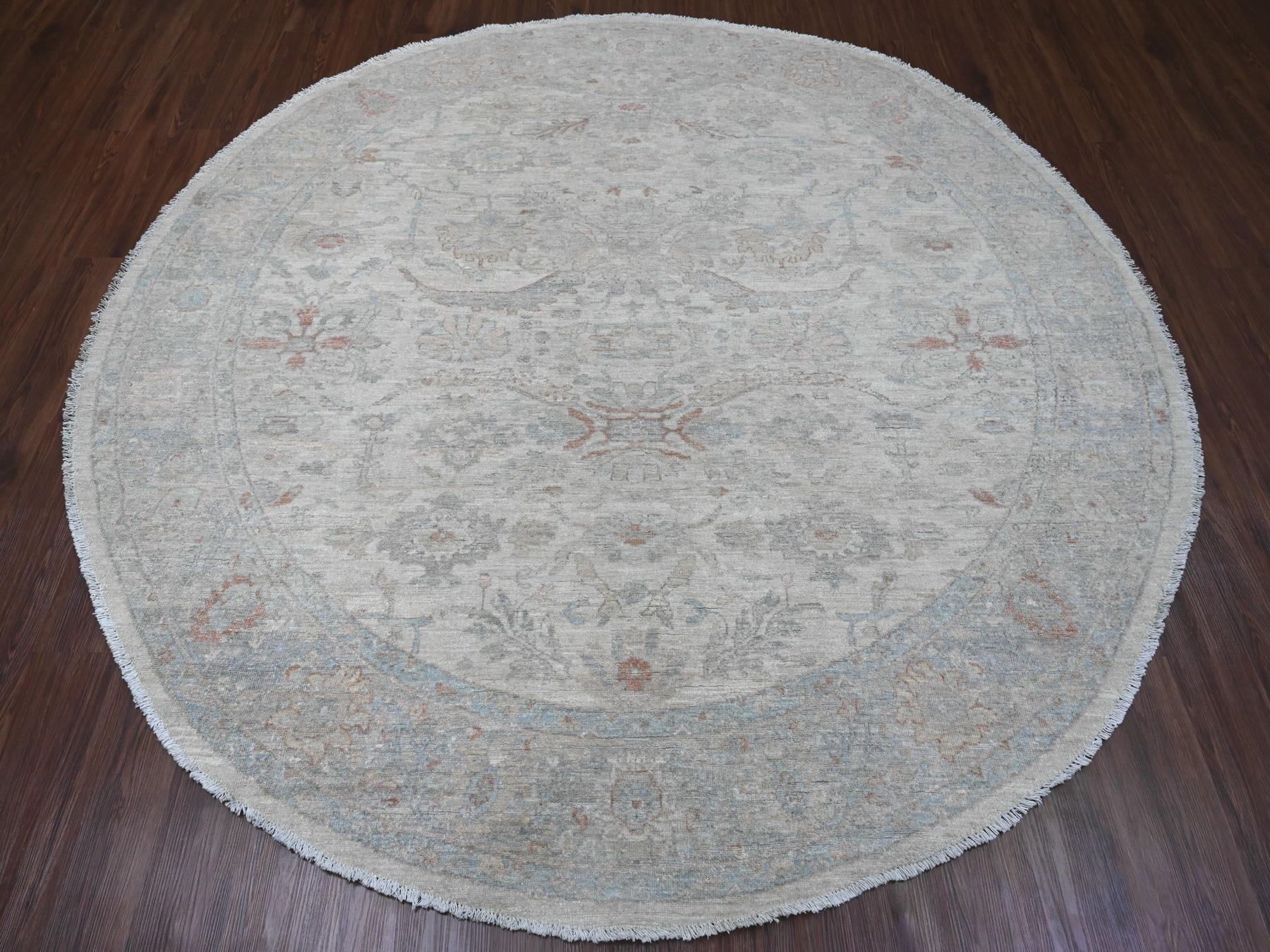 7'7" x 7'9" New Hand Knotted Ivory Wool Round Oriental Rug - MOA10289796