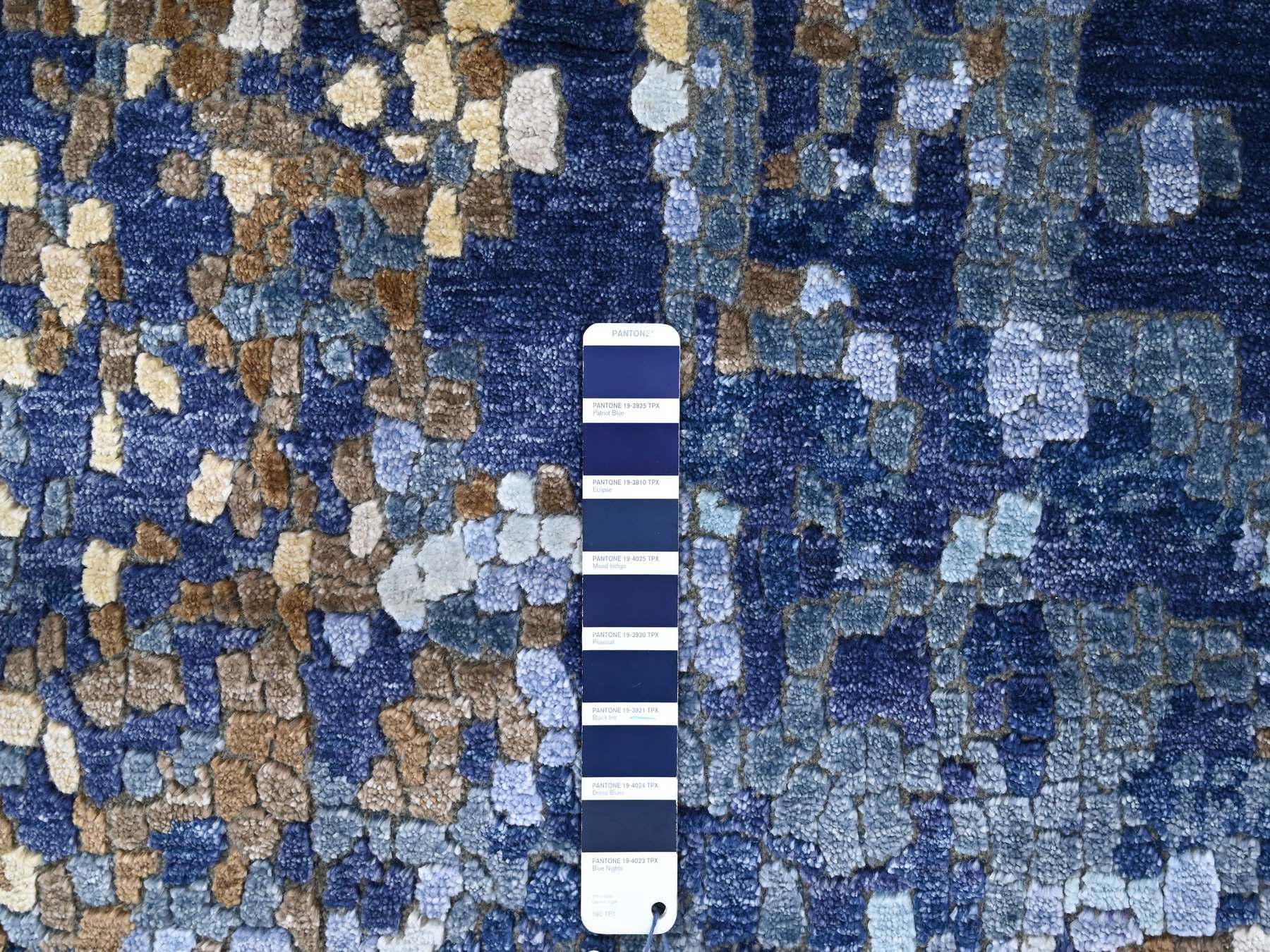 7'9" x 7'9" New Hand Knotted Blue Wool & Silk Round Oriental Rug - MOA10210100