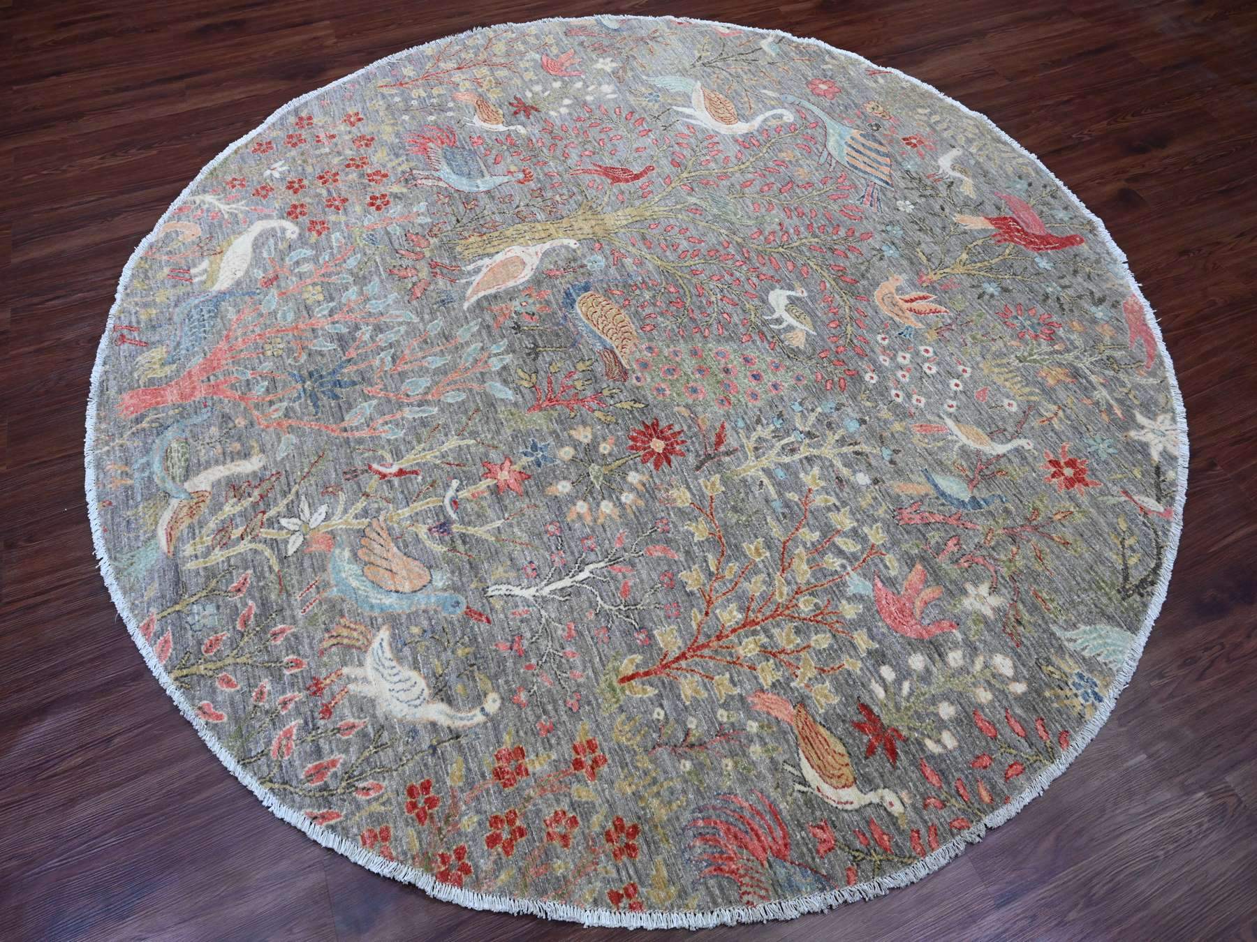 7'9" x 7'9" New Hand Knotted Grey Wool Round Oriental Rug - MOA10220017