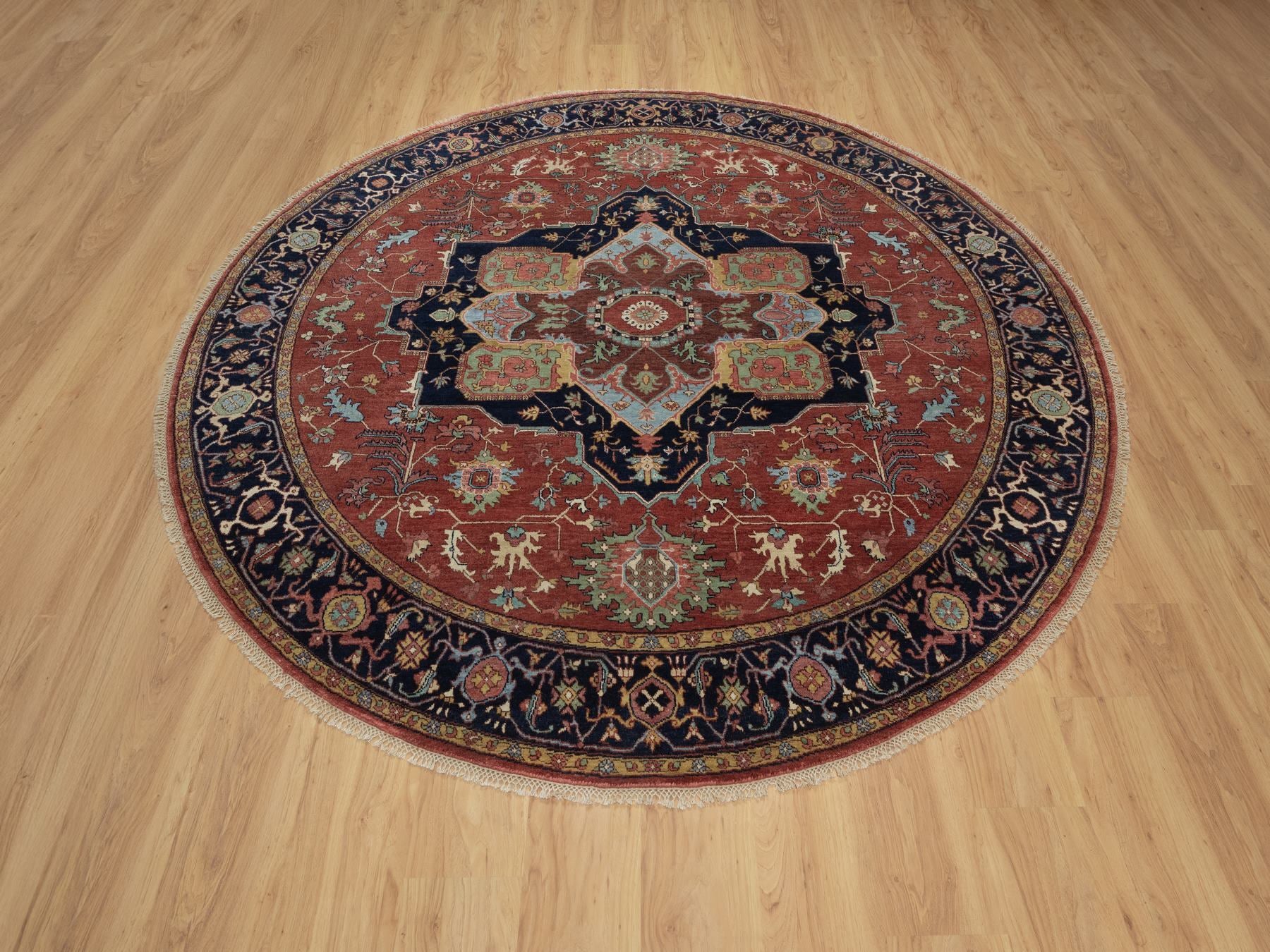 8'0" x 8'0" New Hand Knotted Red Wool Round Oriental Rug - MOA10291405
