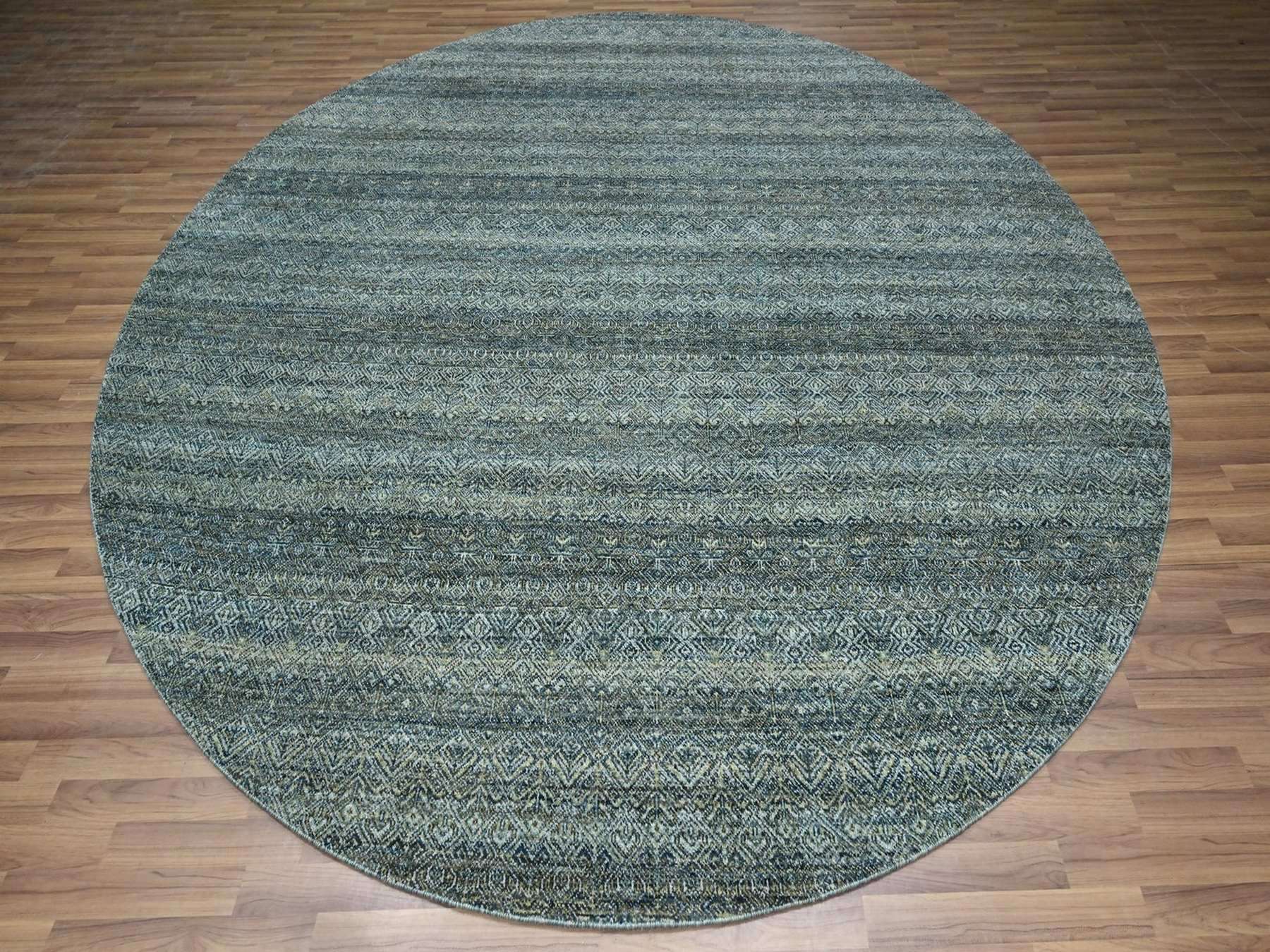 10'0" x 10'0" New Hand Knotted Blue Wool Round Oriental Rug - MOA10276789