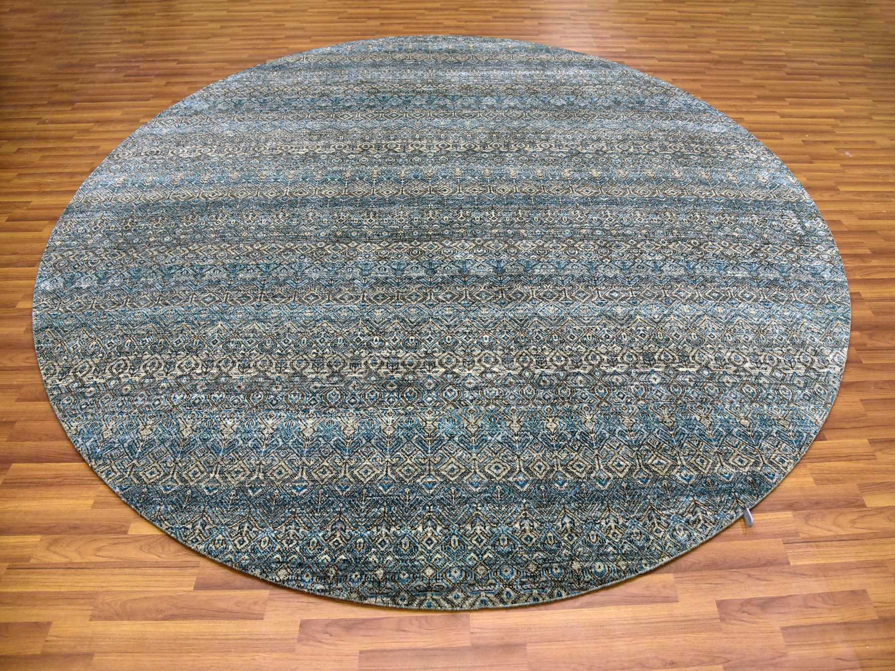 10'0" x 10'0" New Hand Knotted Blue Wool Round Oriental Rug - MOA10279465