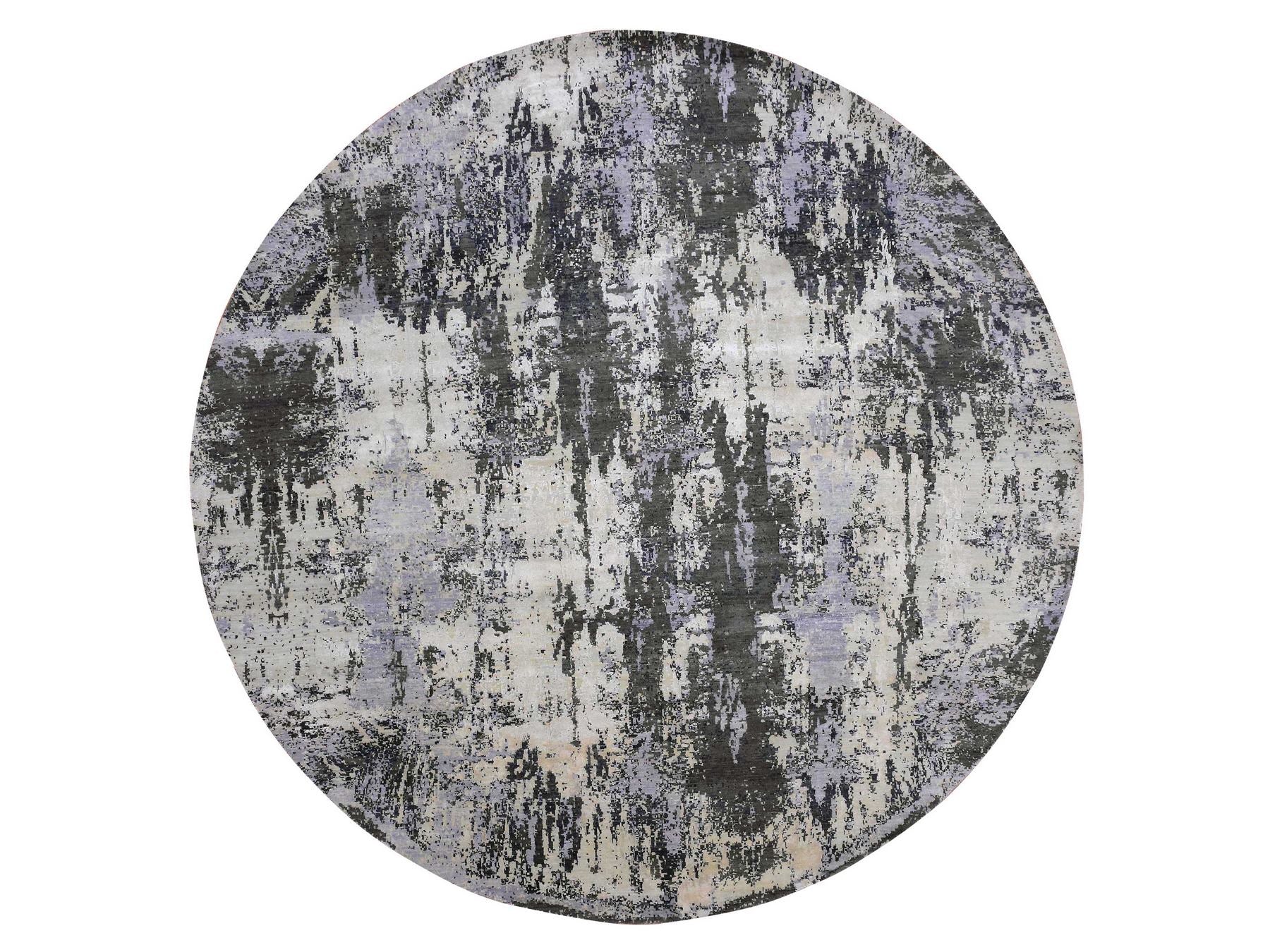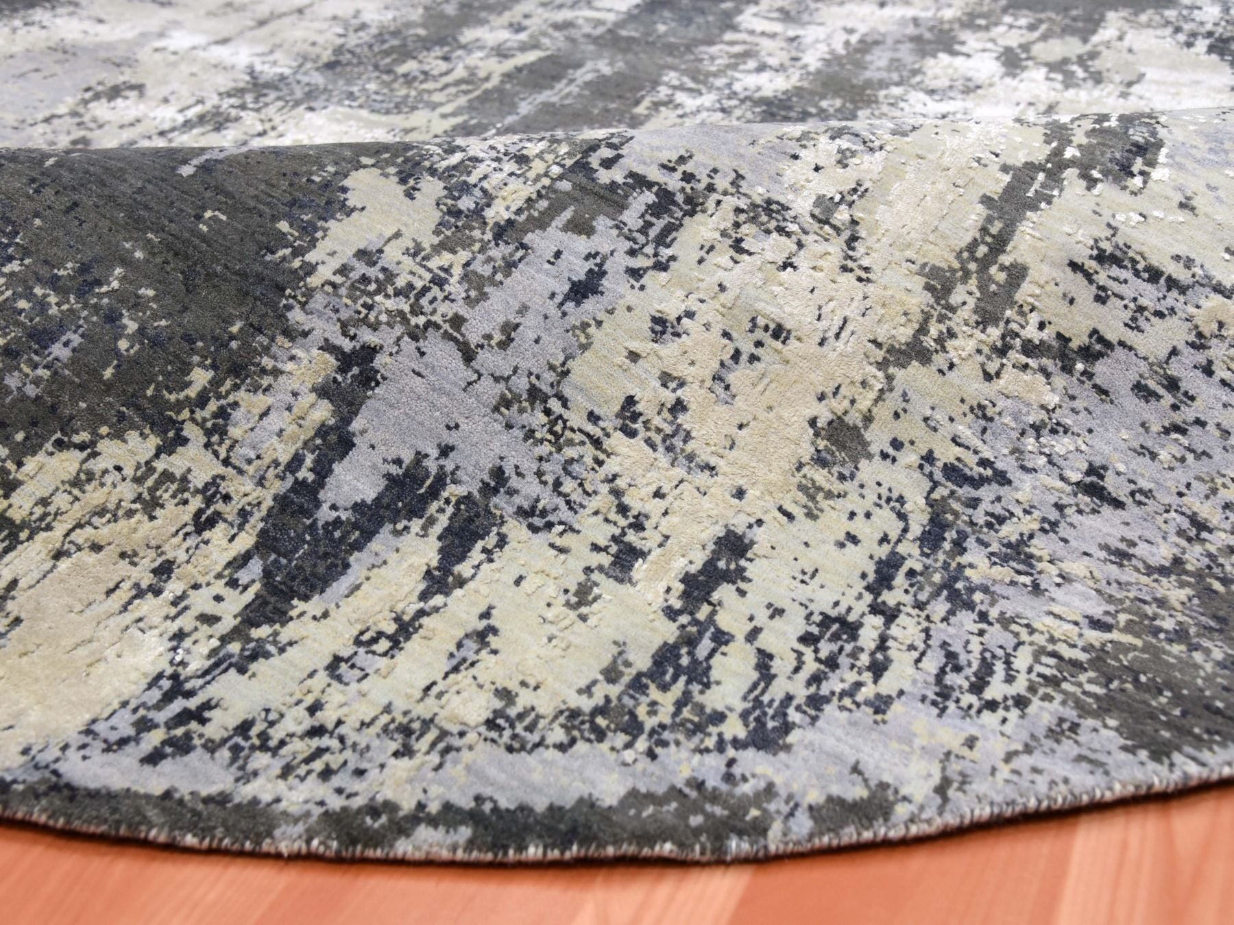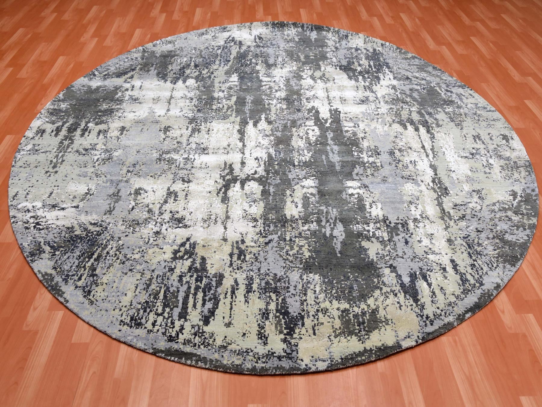10'0" x 10'0" New Hand Knotted Grey Wool & Silk Round Oriental Rug - MOA10275088