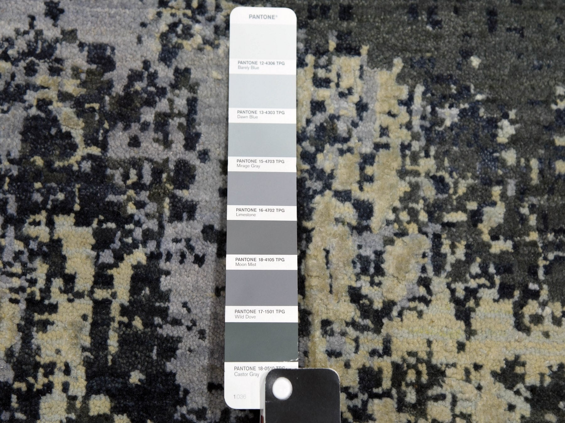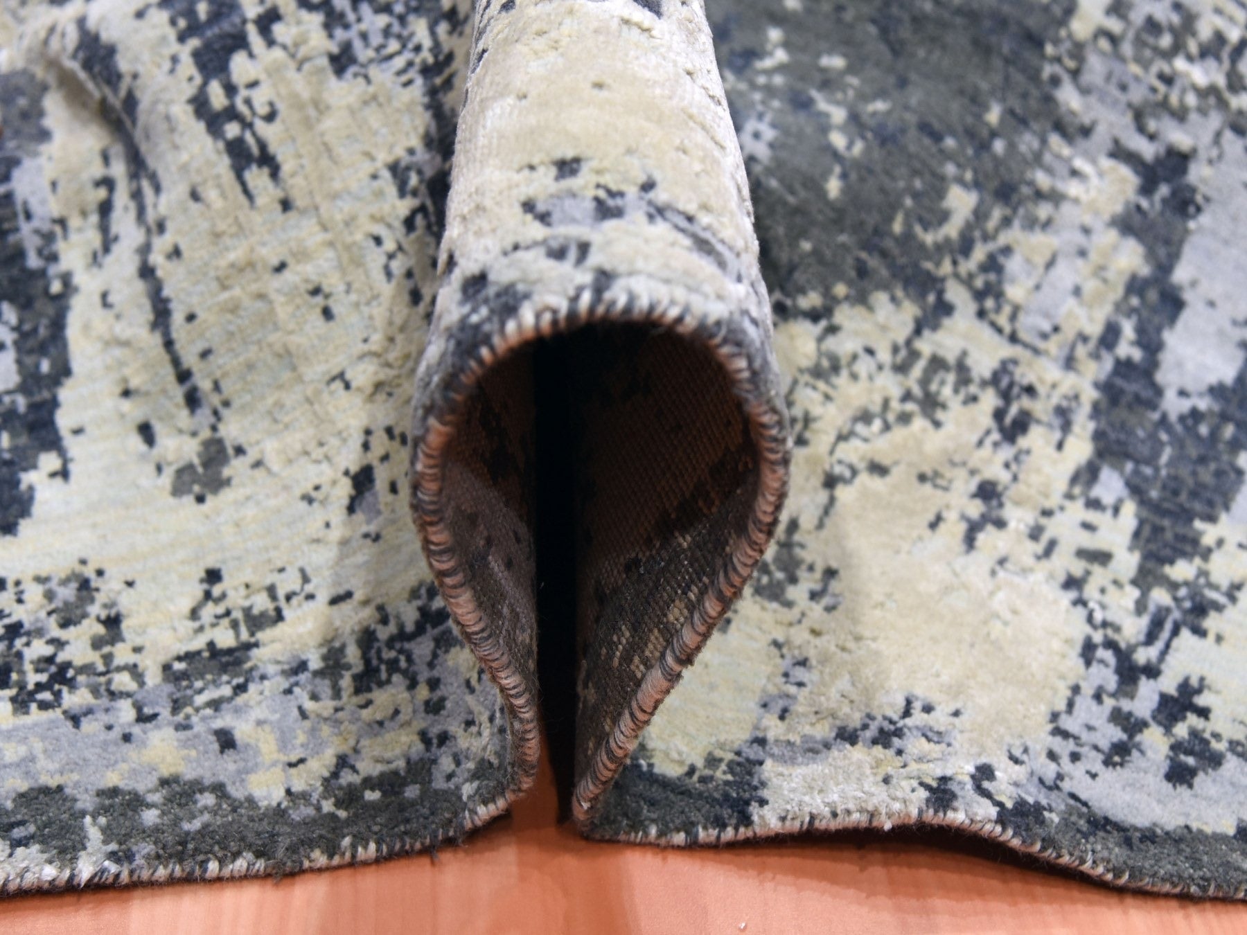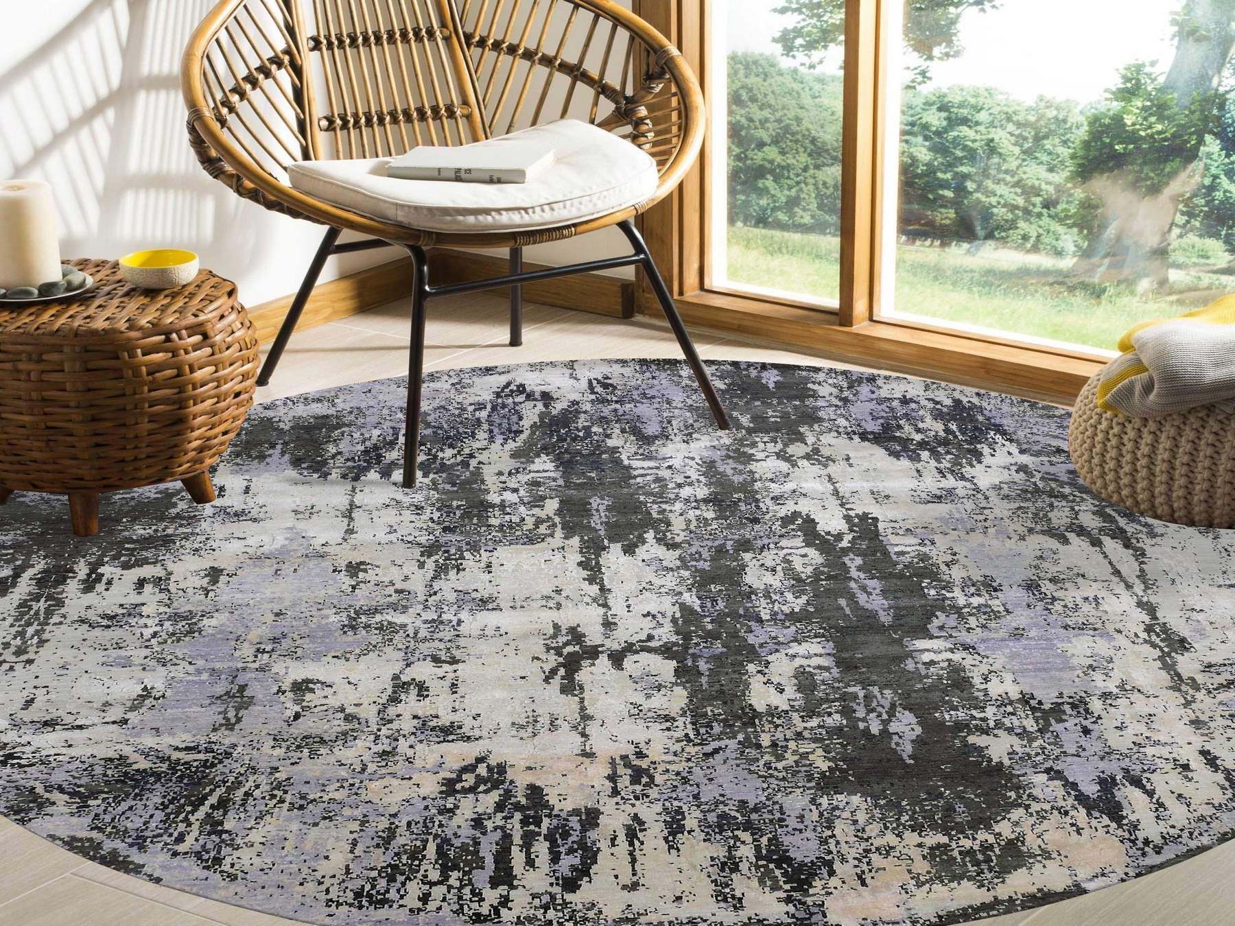 10'0" x 10'0" New Hand Knotted Grey Wool & Silk Round Oriental Rug - MOA10275088