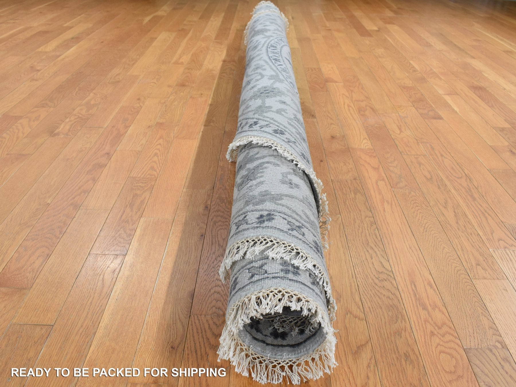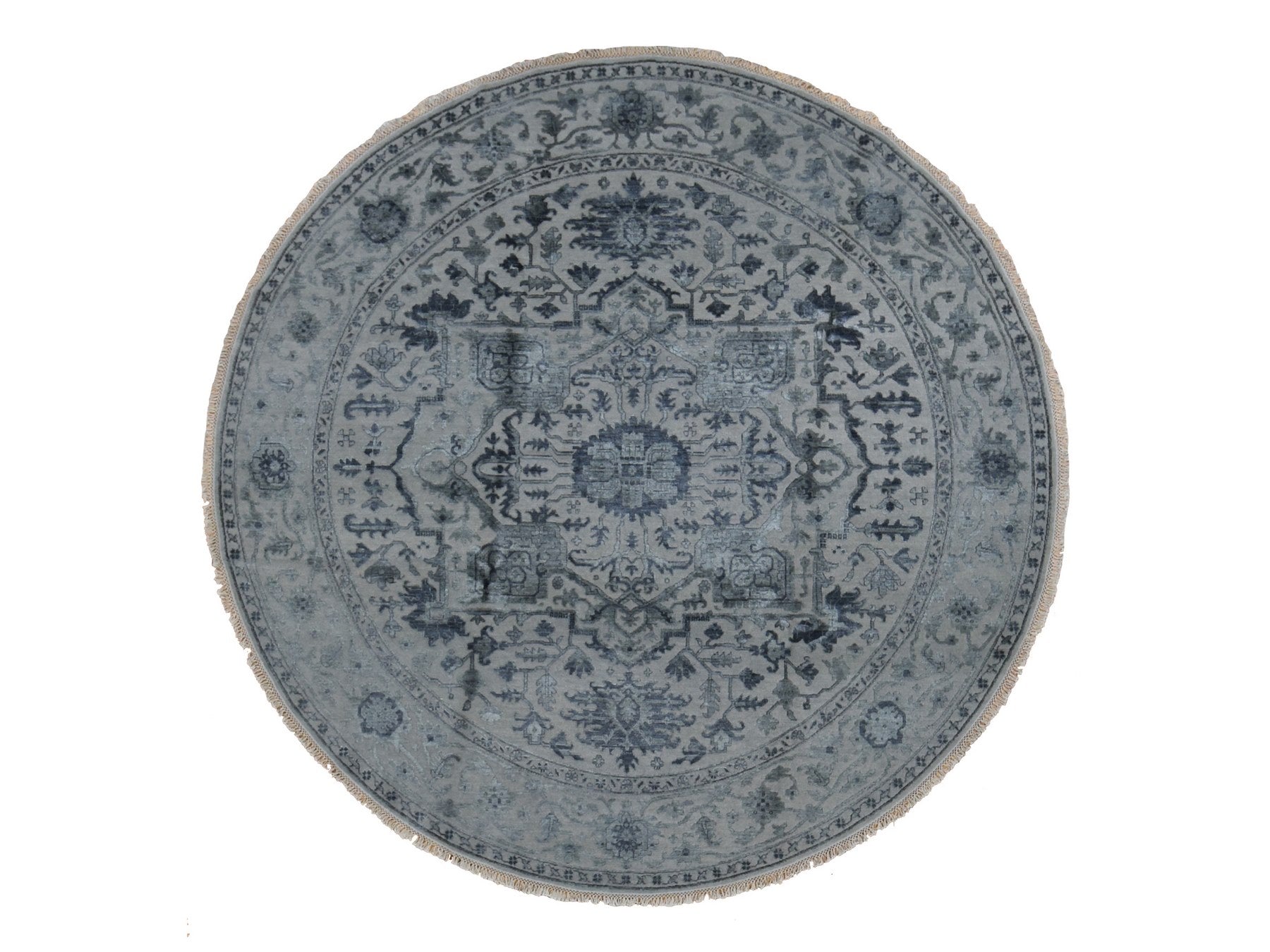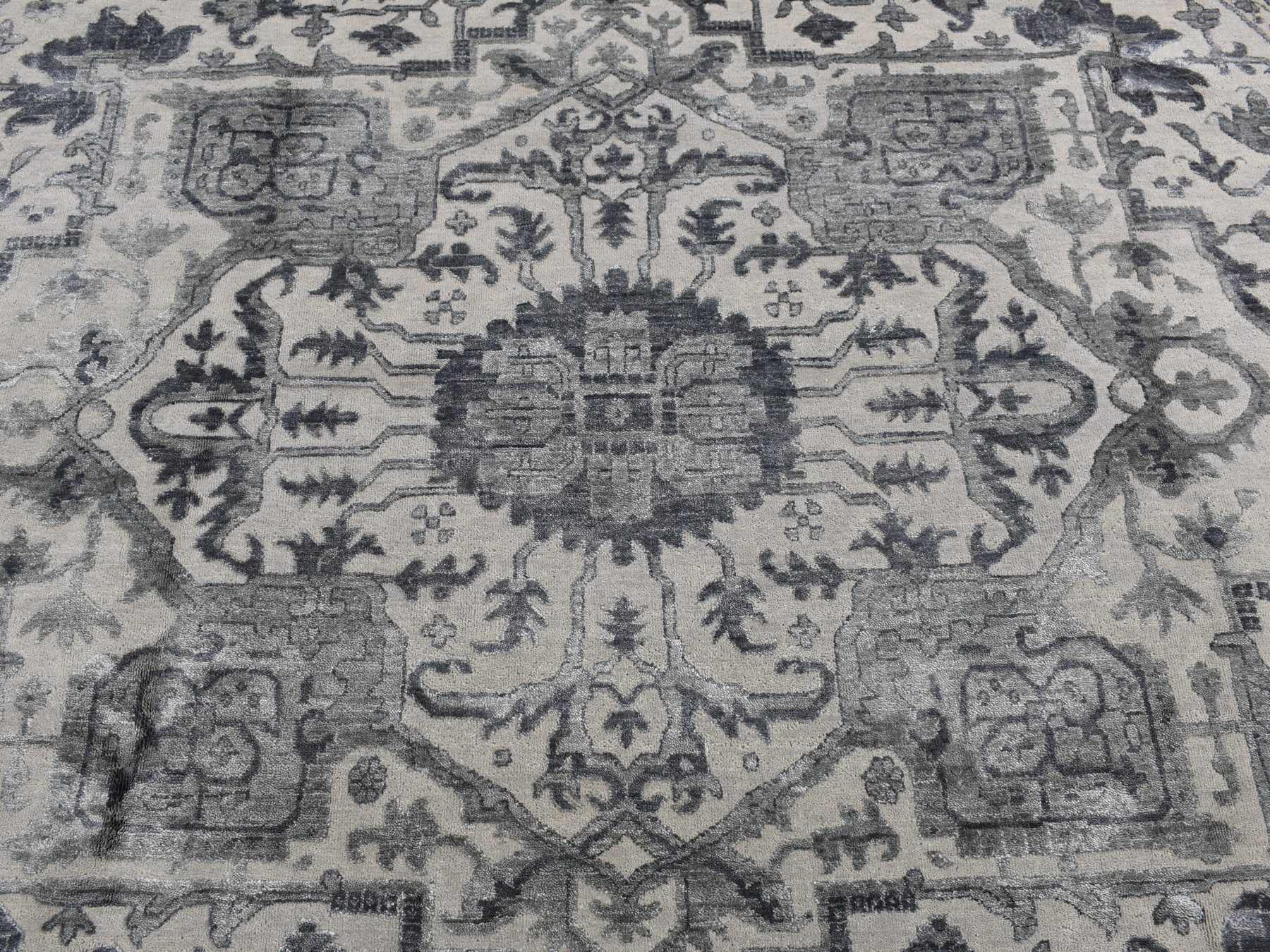 10'0" x 10'0" New Hand Knotted Grey Wool & Silk Round Oriental Rug - MOA10287747