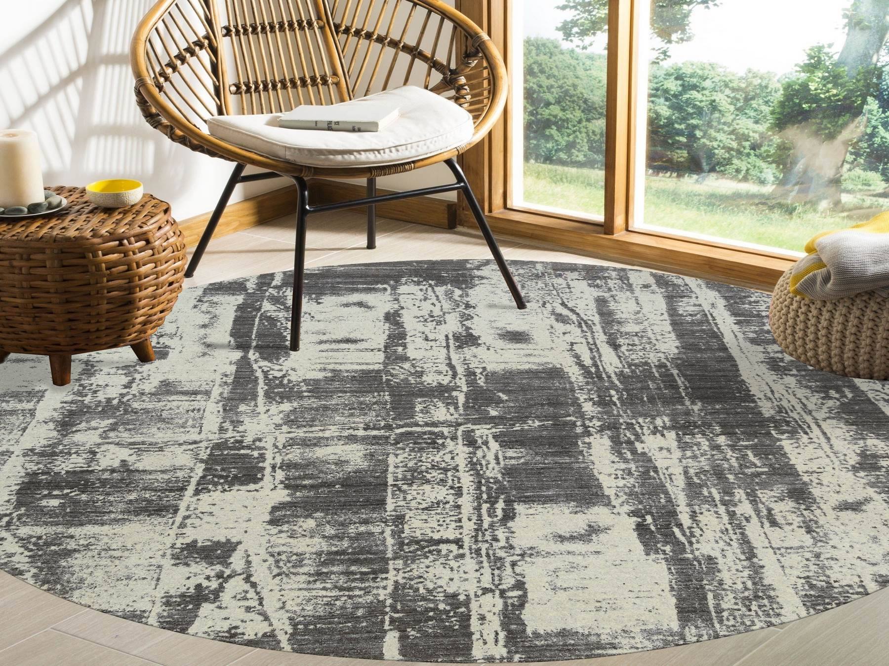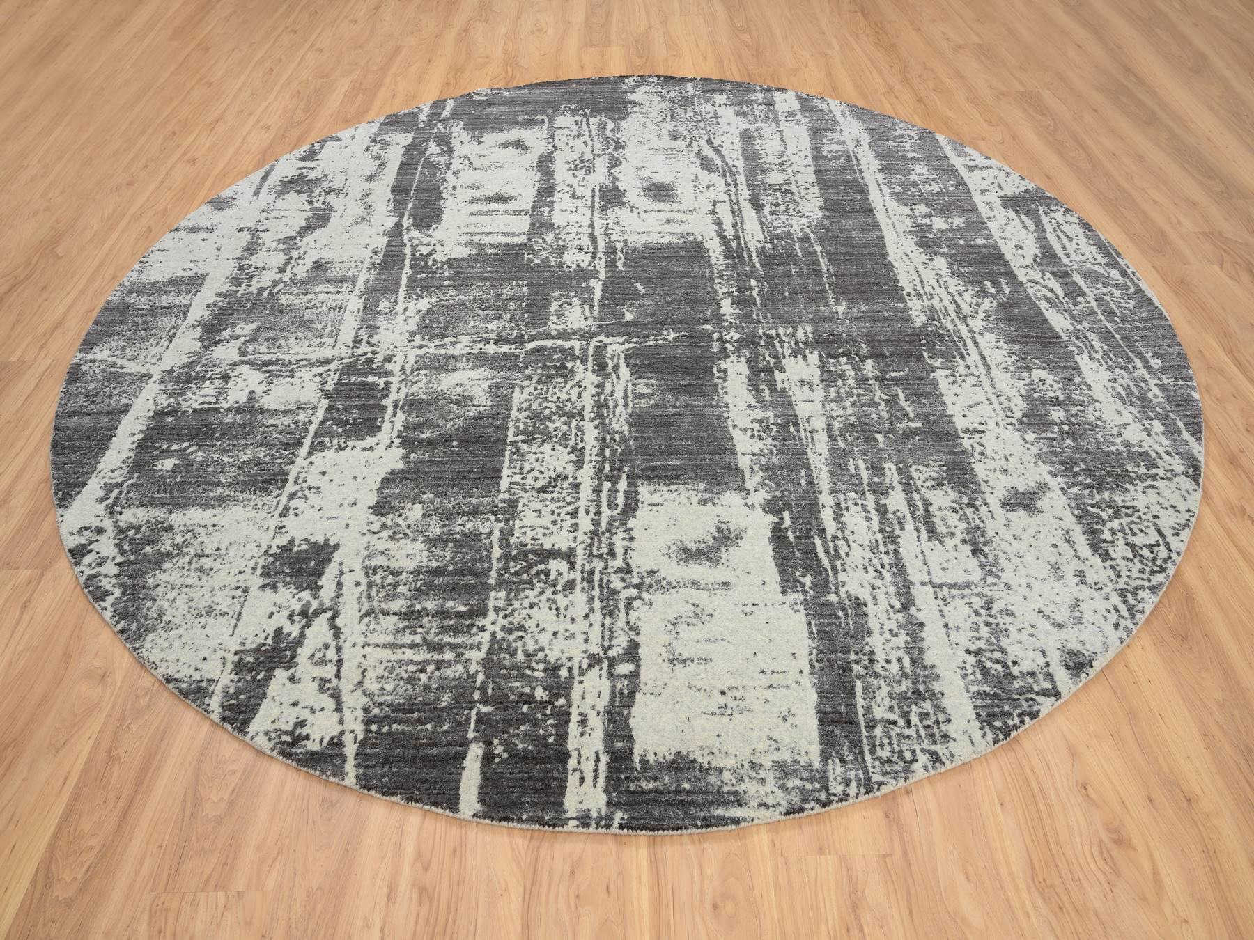 10'0" x 10'0" New Hand Loomed Black Wool & Silk Round Oriental Rug - MOA10263749