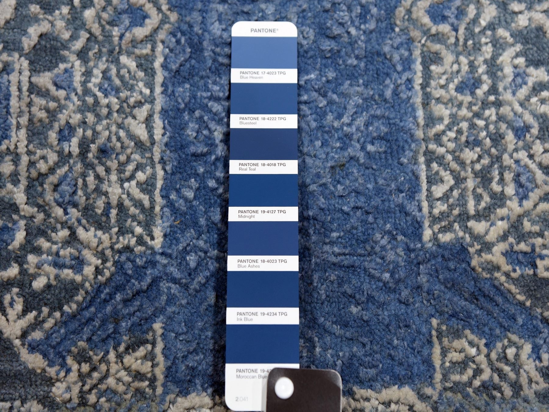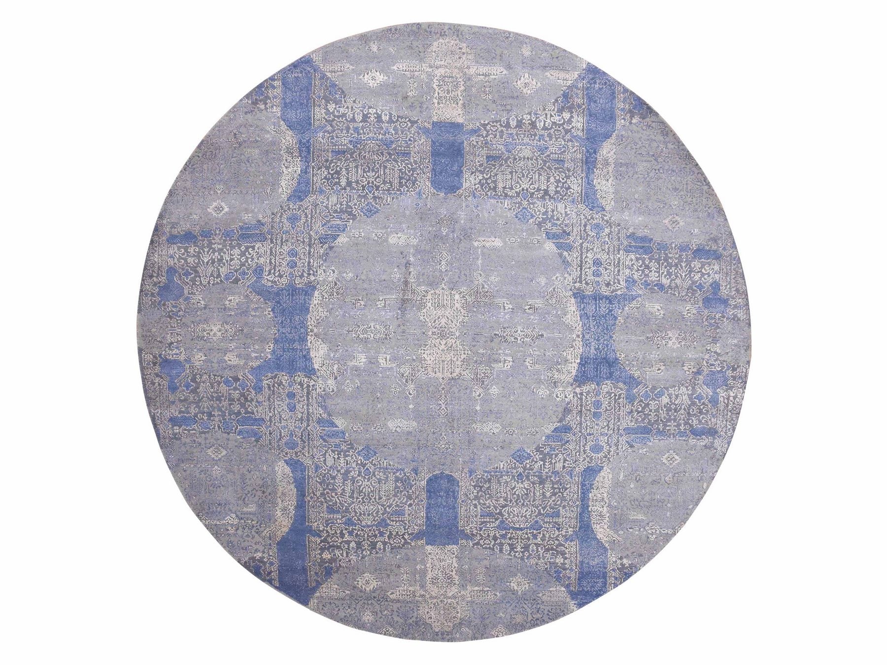 10'0" x 10'1" New Hand Knotted Blue Wool & Pure Silk Round Oriental Rug - MOA10275089