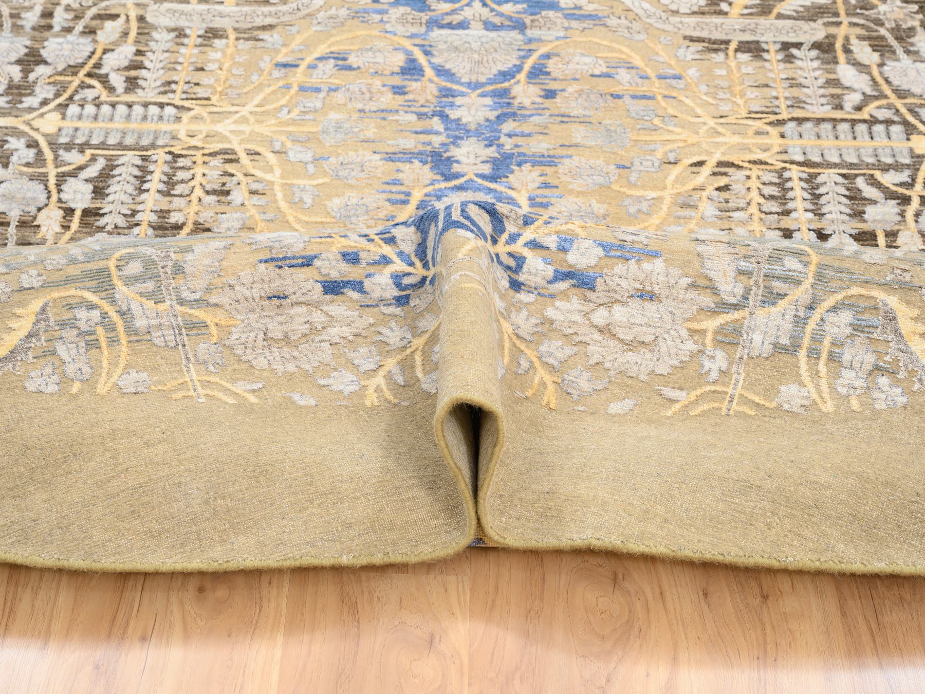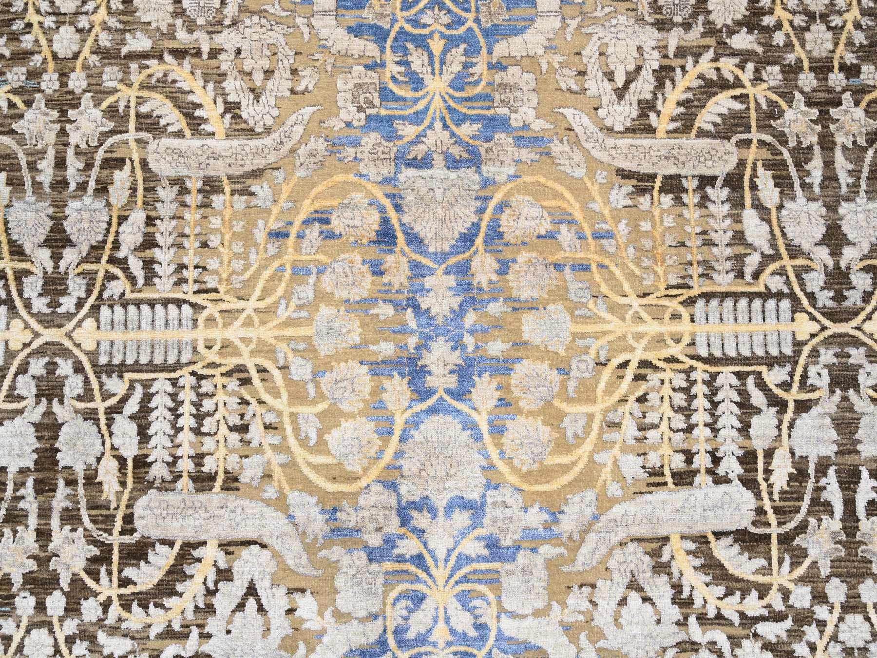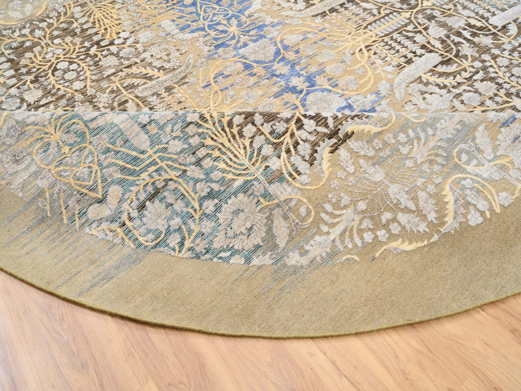 11'10" x 11'10" New Hand Knotted Brown Wool & Silk Round Oriental Rug - MOA10264438