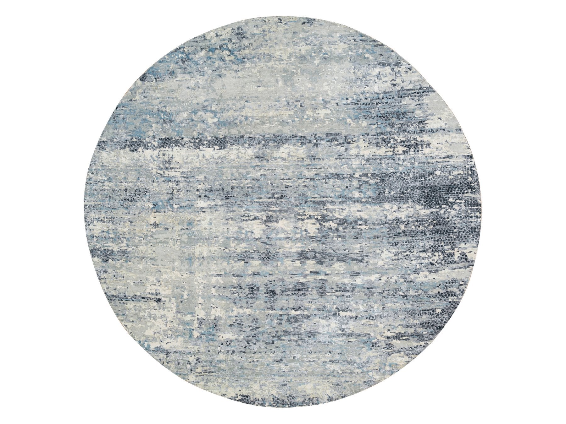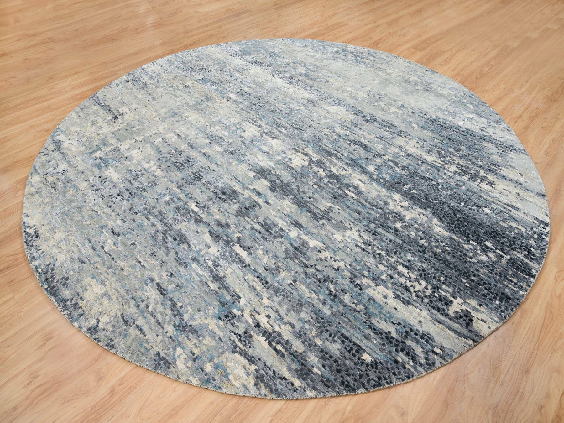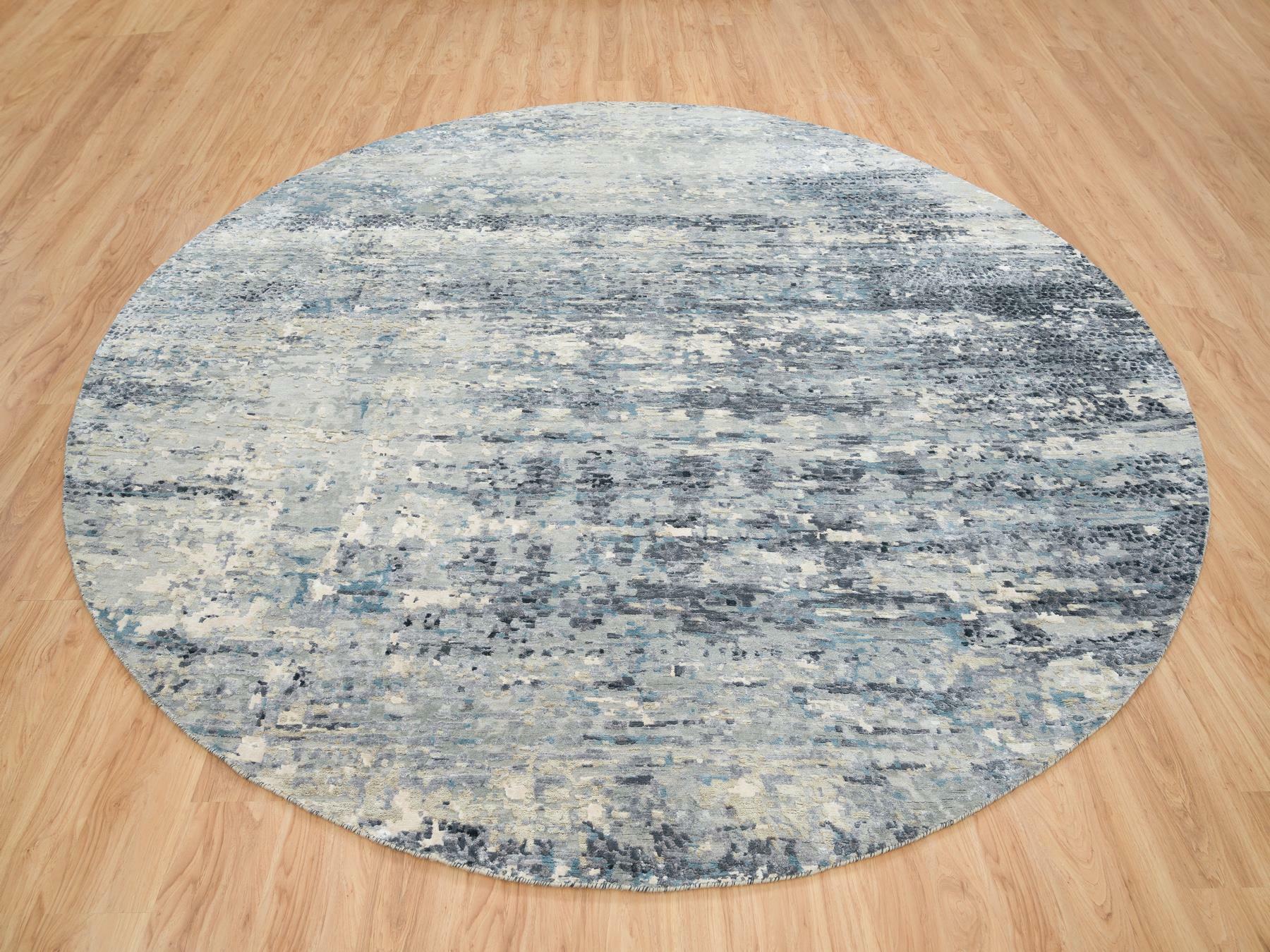 11'6" x 11'6" New Hand Knotted Blue Wool & Silk Round Oriental Rug - MOA10265635