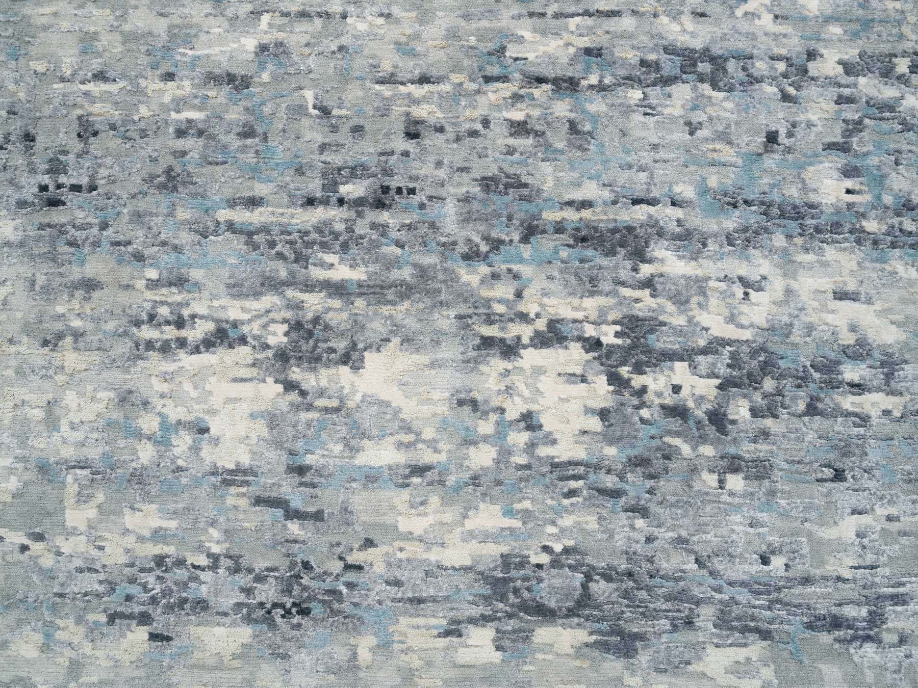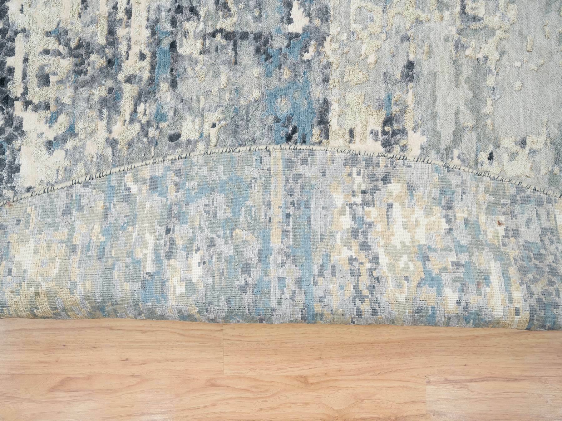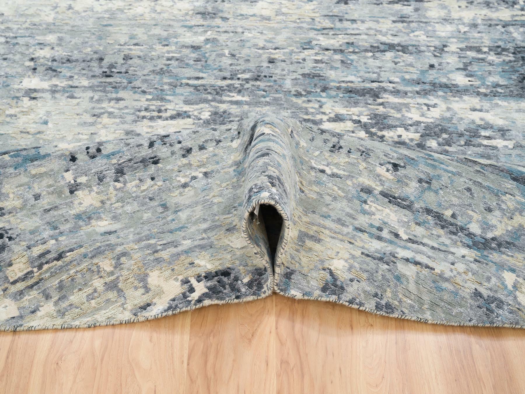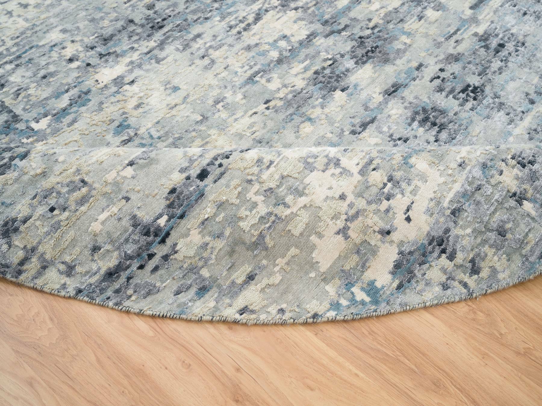 11'6" x 11'6" New Hand Knotted Blue Wool & Silk Round Oriental Rug - MOA10265635