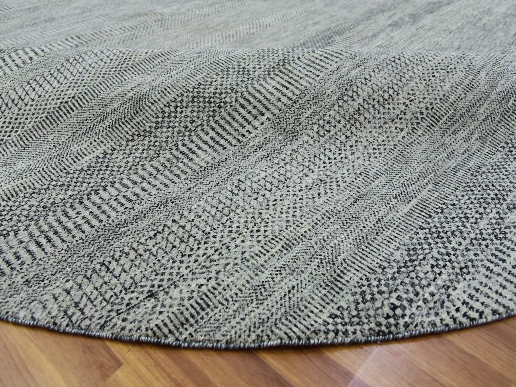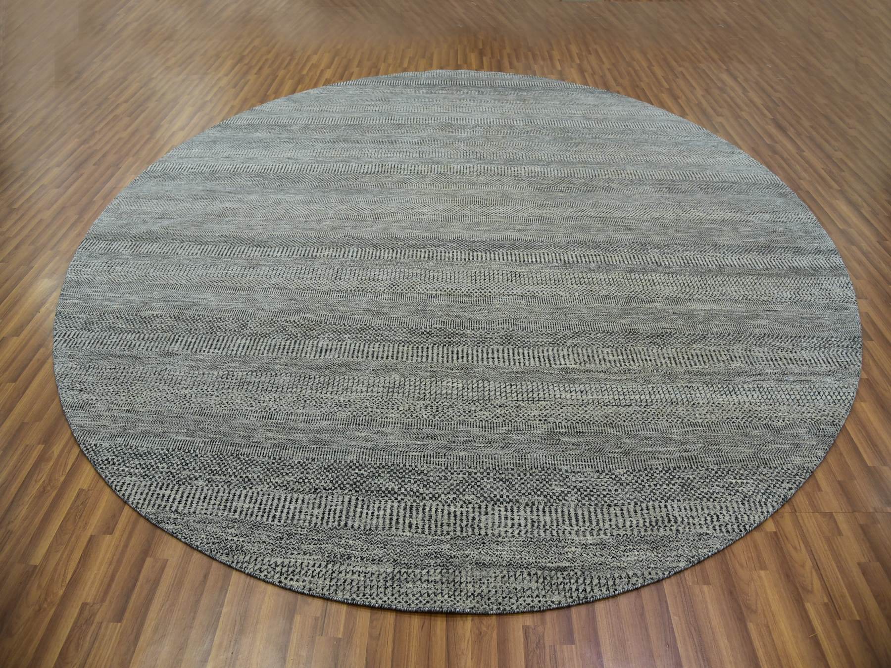 12'1" x 12'1" New Hand Knotted Grey Wool Round Oriental Rug - MOA10279761