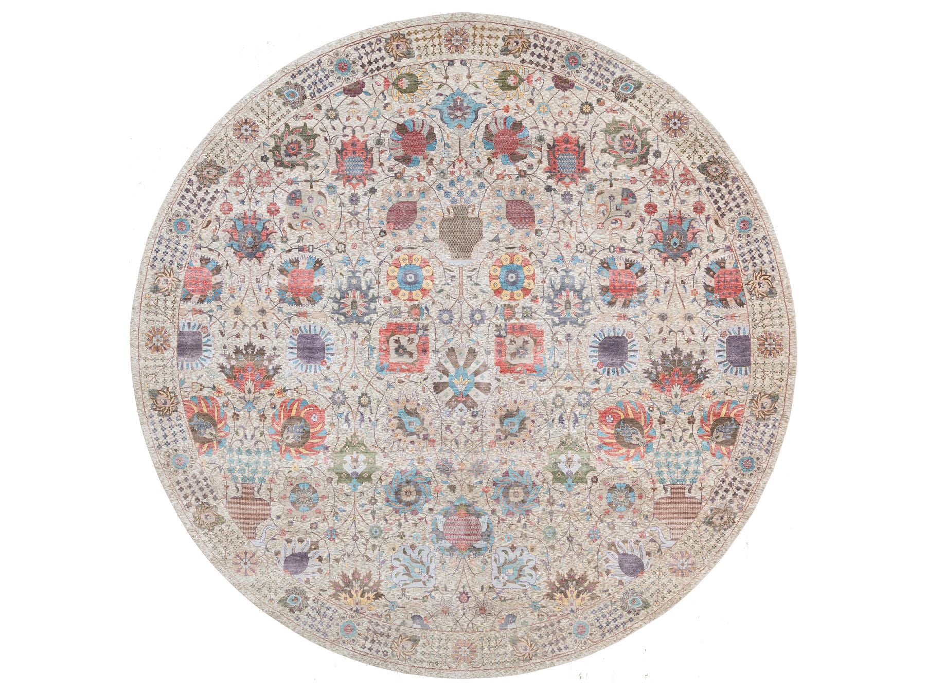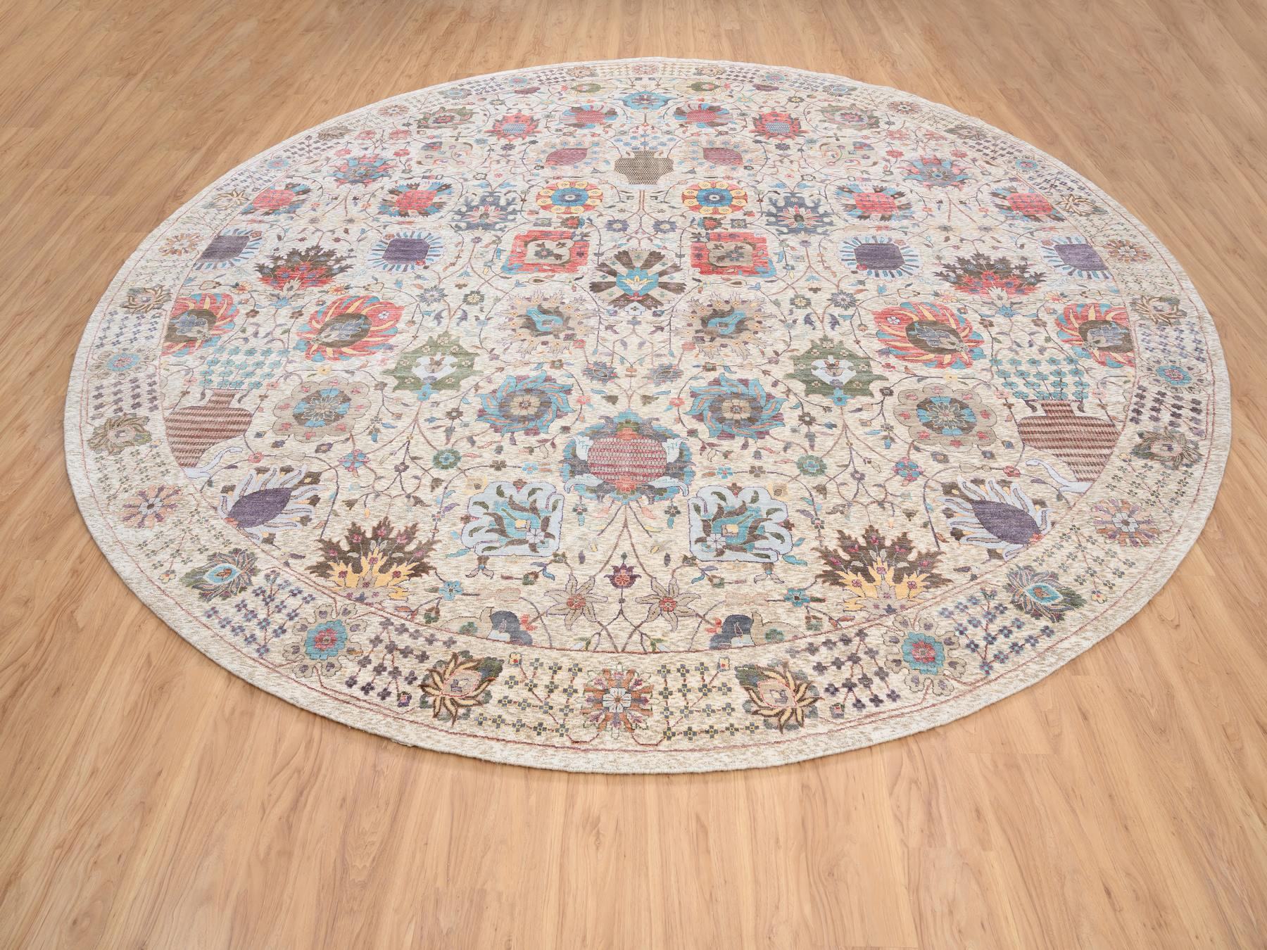 14'1" x 14'1" New Hand Knotted Multicolored Wool & Silk Round Oriental Rug - MOA10264443