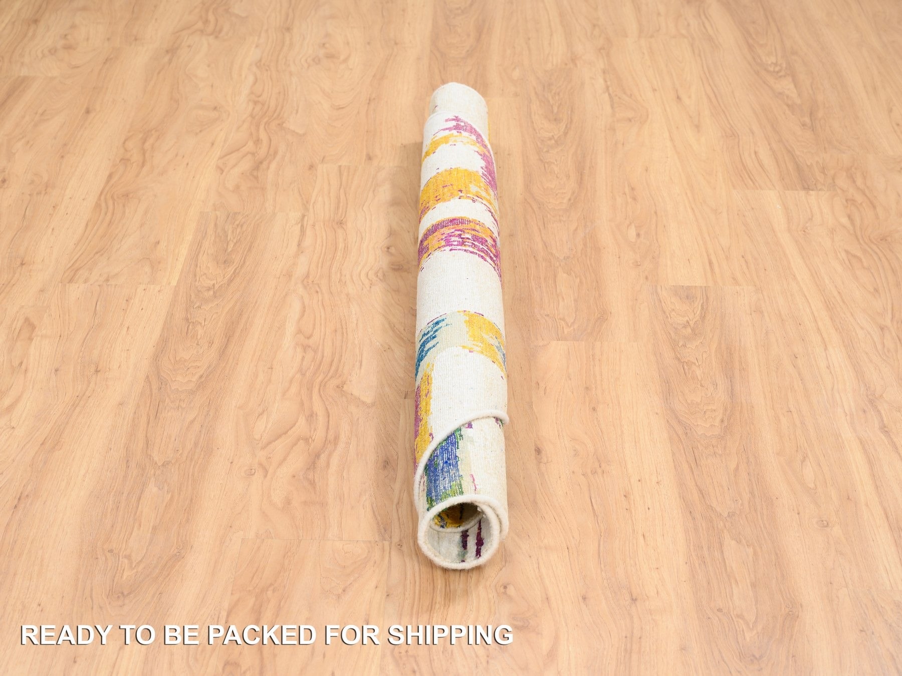 5'0" x 5'0" New Hand Knotted Multicolored Wool & Sari Silk Round Oriental Rug - MOA10264906