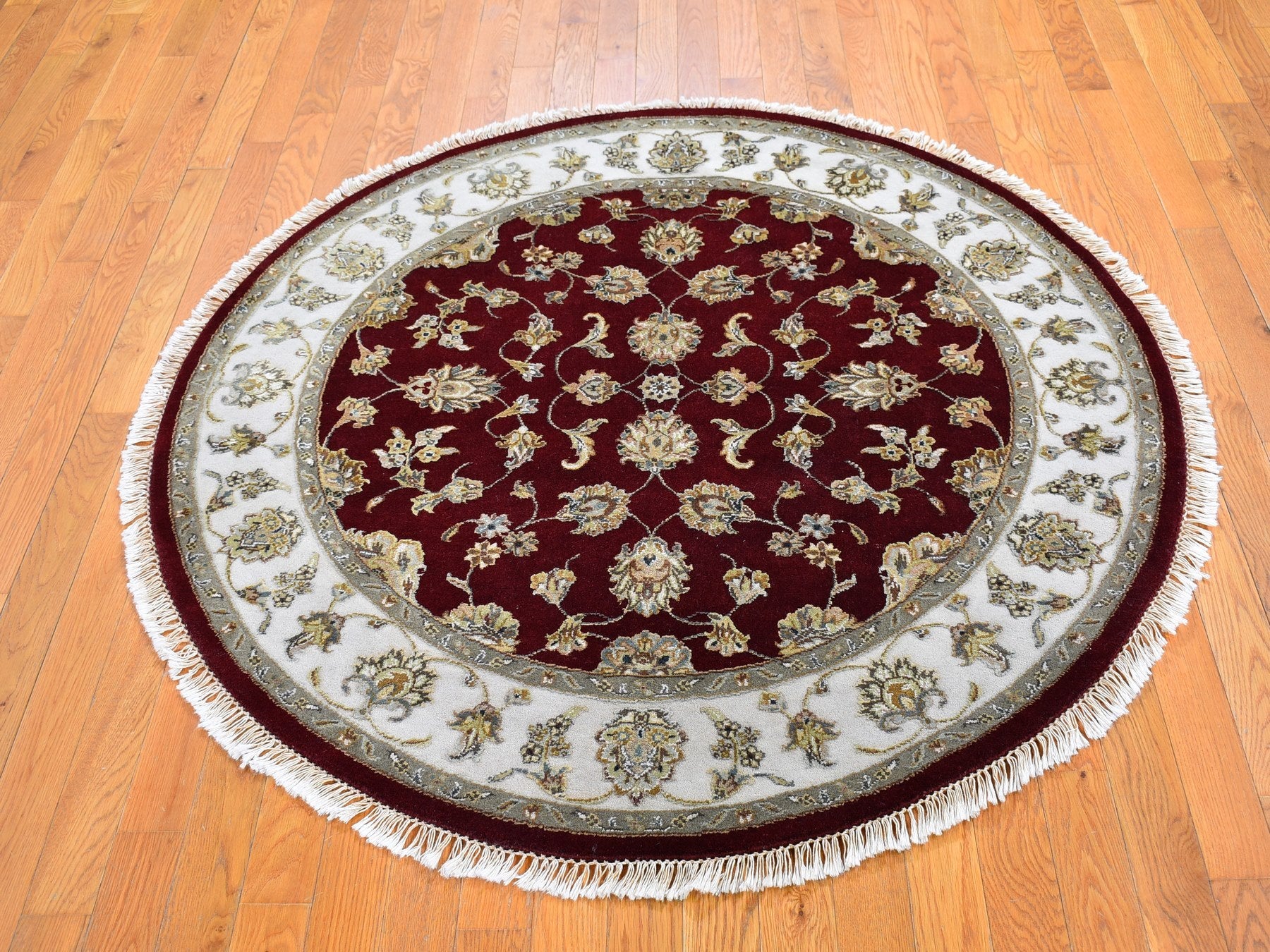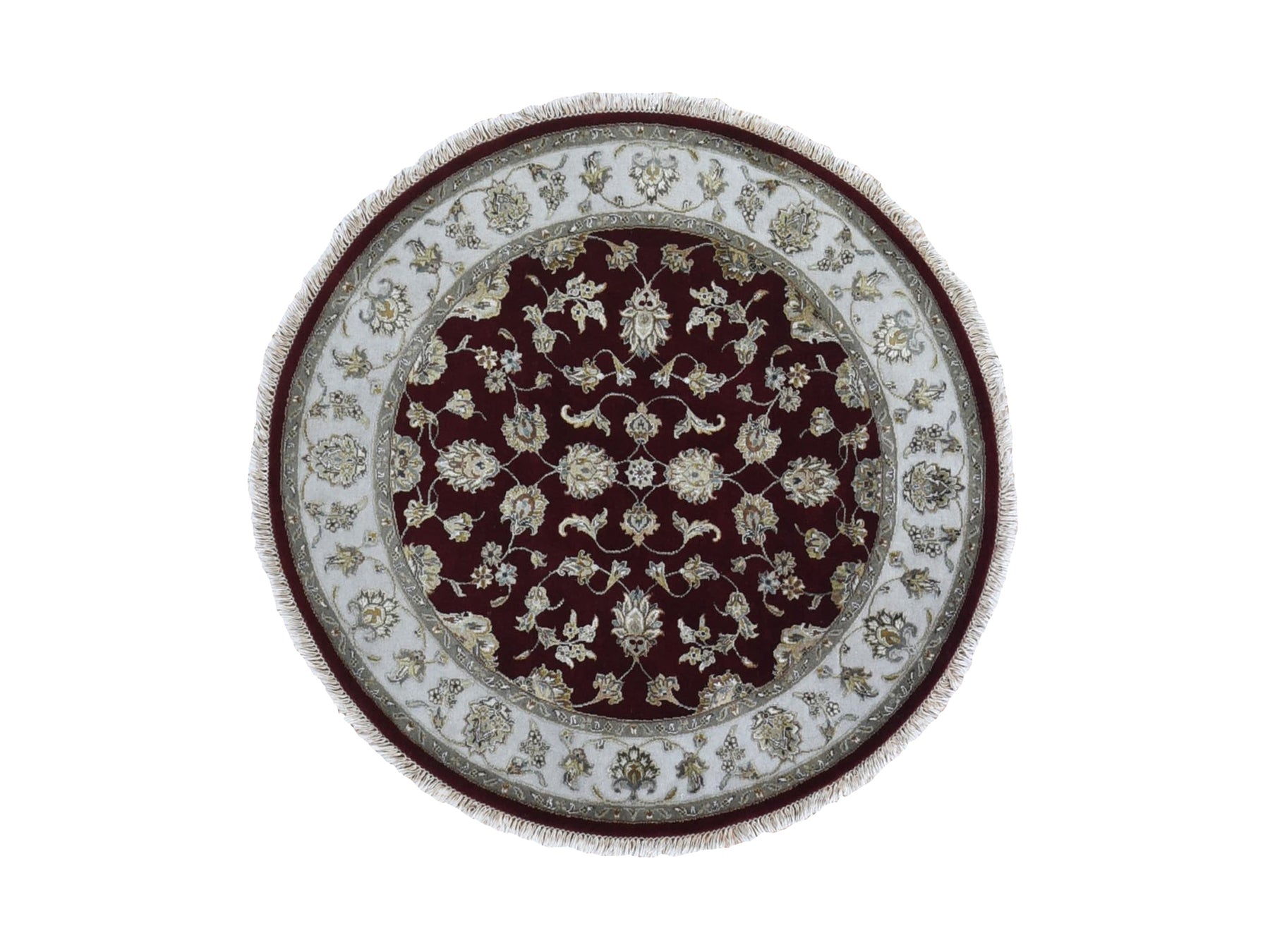 5'0" x 5'0" New Hand Knotted Red Wool & Silk Round Oriental Rug - MOA10259951