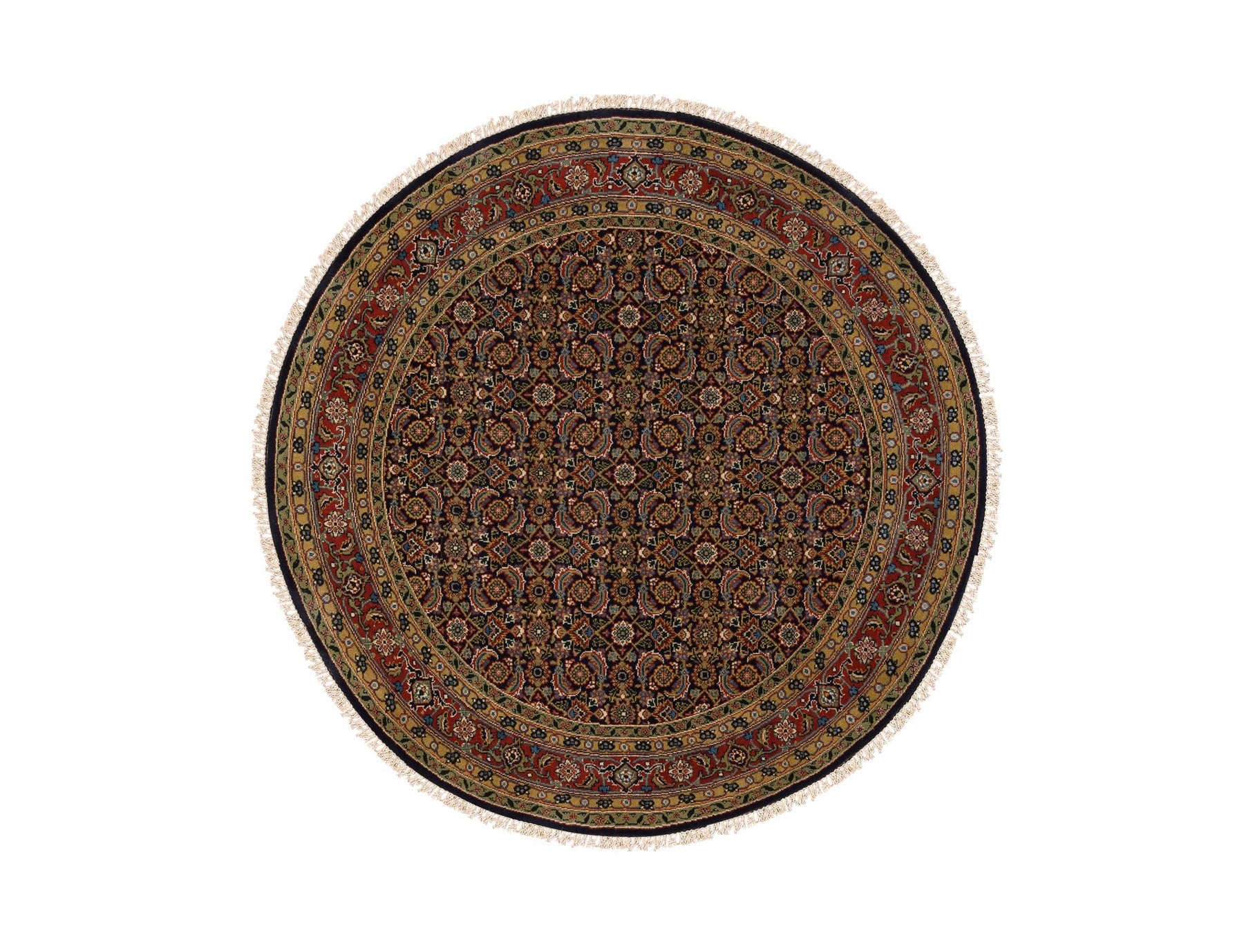 5'9" x 5'10" New Hand Knotted Black Wool & Silk Round Oriental Rug - MOA10262351
