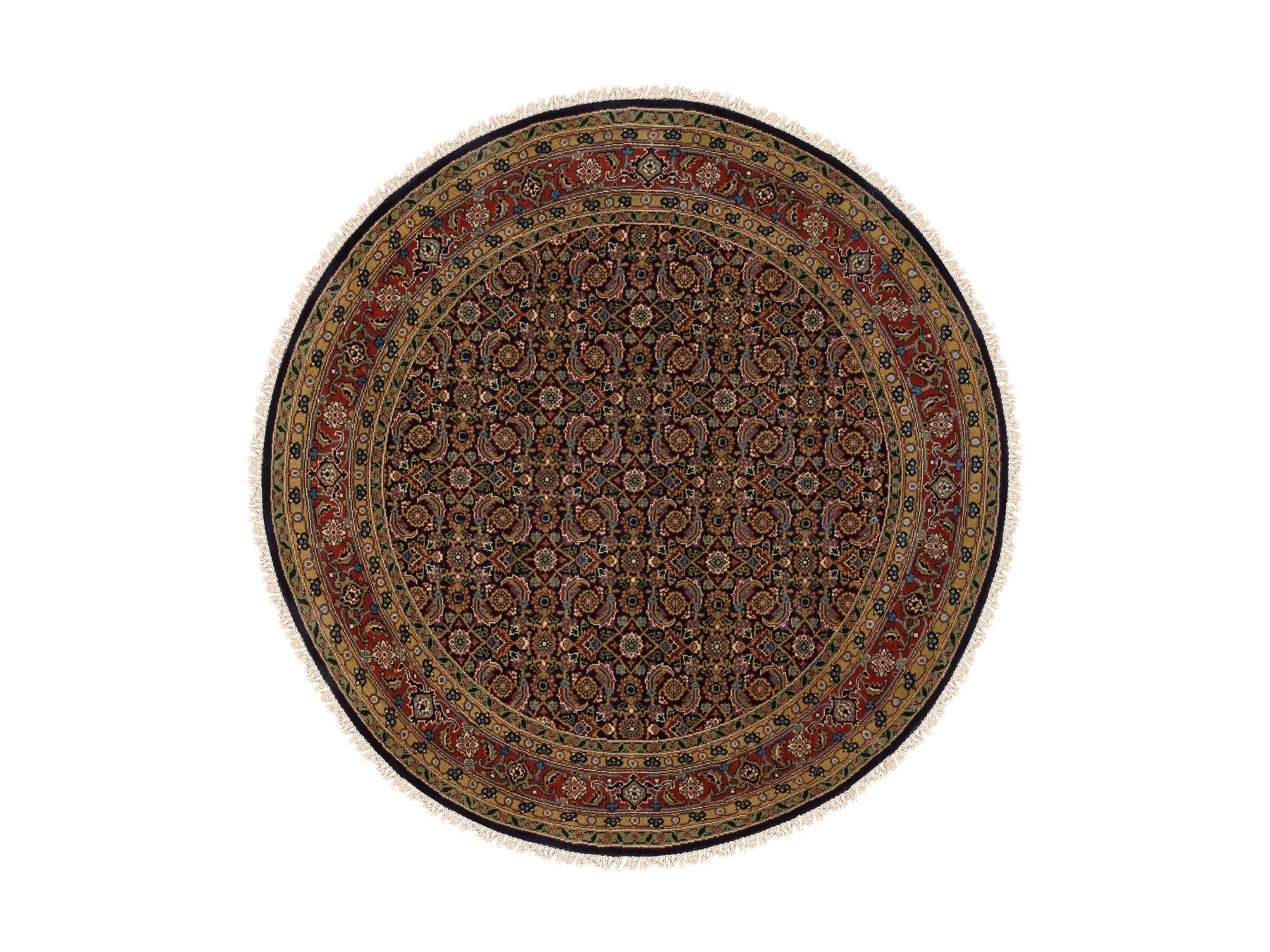 5'9" x 5'9" New Hand Knotted Black Wool & Silk Round Oriental Rug - MOA10262349