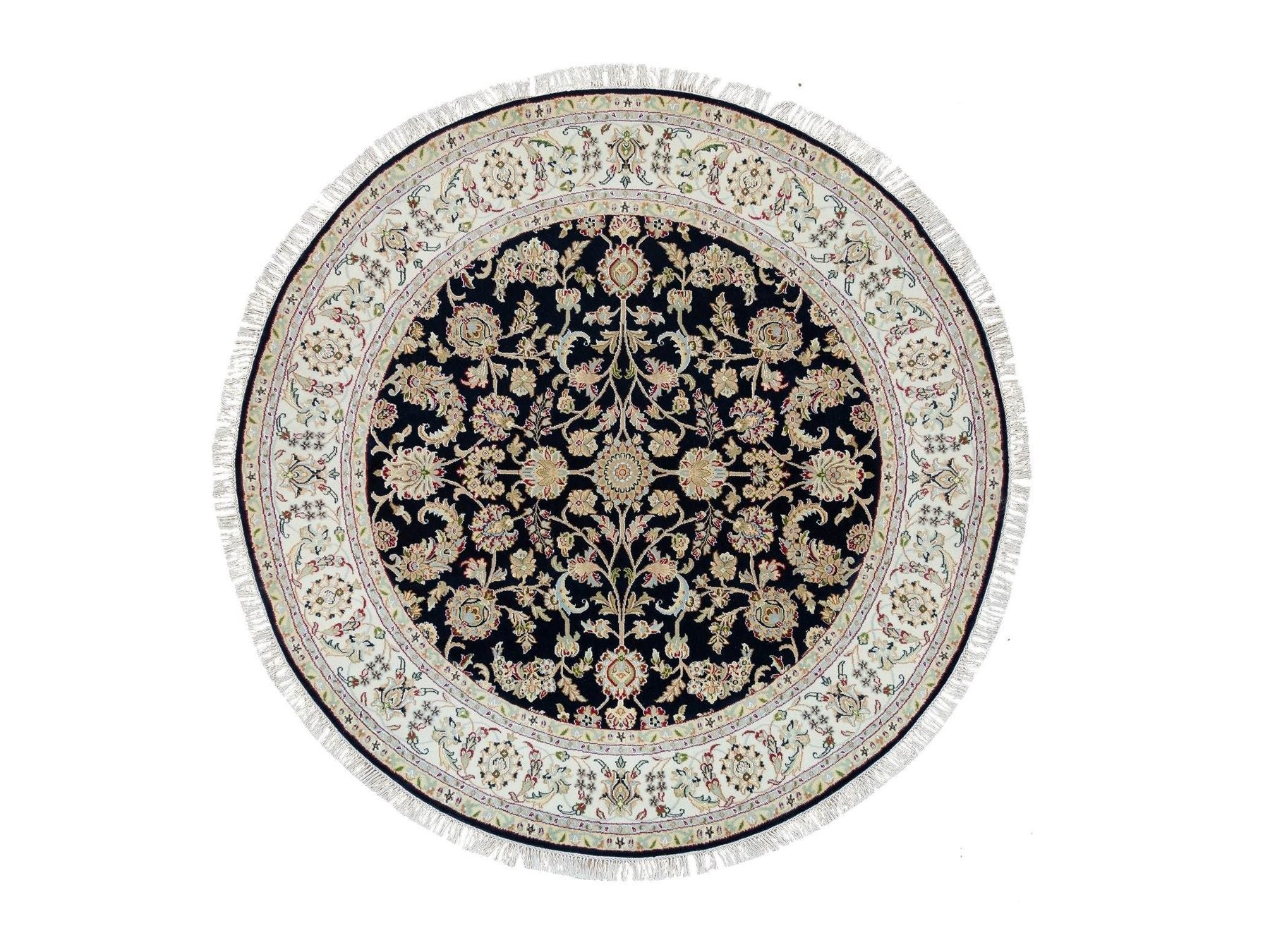 6'0" x 6'0" New Hand Knotted Blue Wool Round Oriental Rug - MOA10265996
